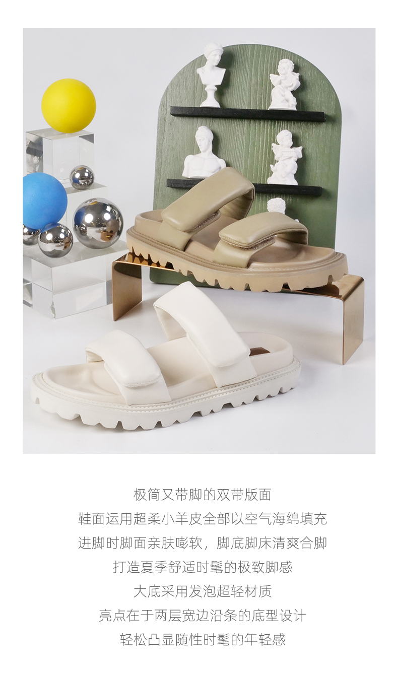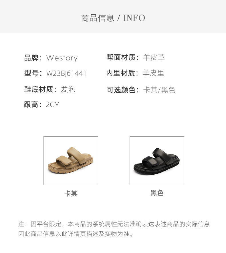 westory夏季新款羊皮平底休闲百搭一脚蹬舒适外穿凉拖61441