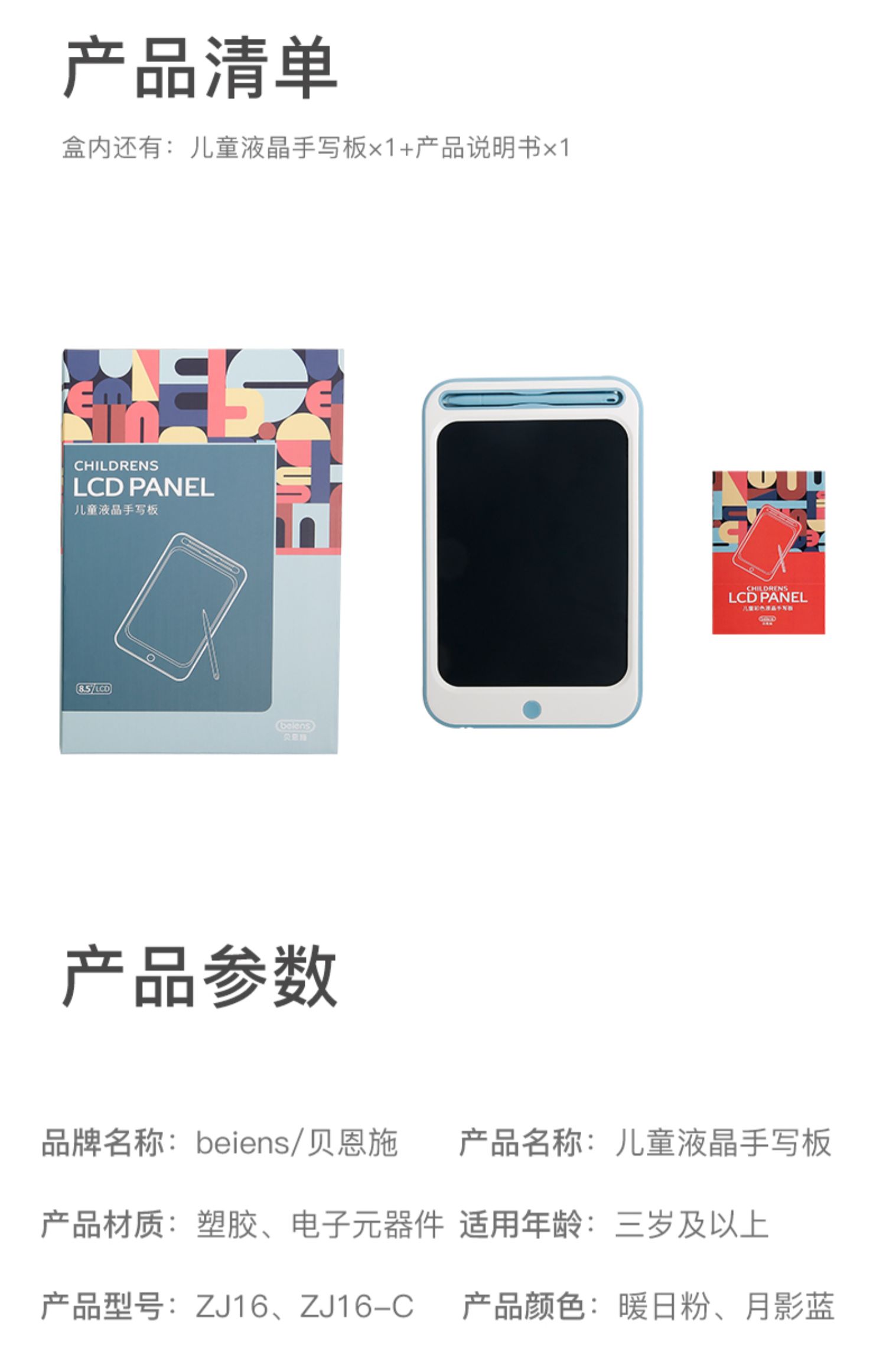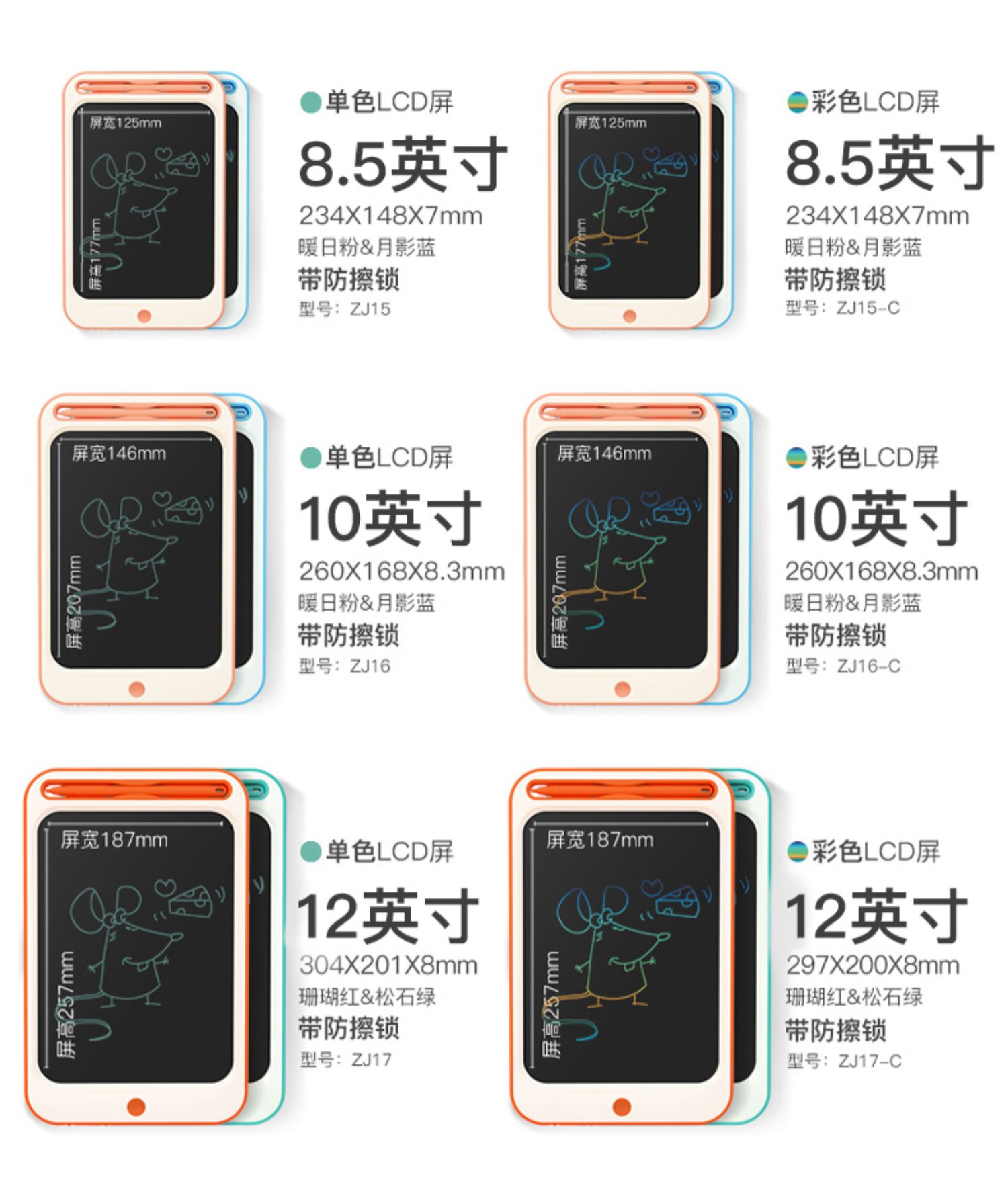 贝恩施儿童液晶画板手写板家用电子玩具女孩宝宝涂鸦写字板画画板