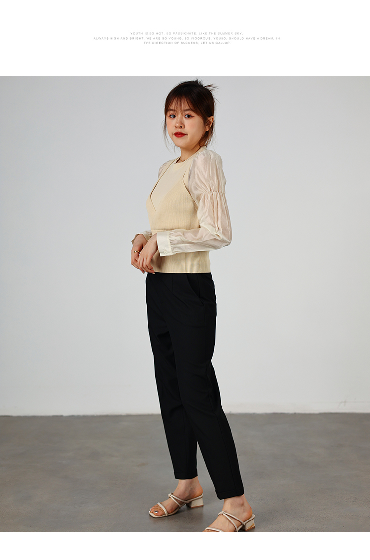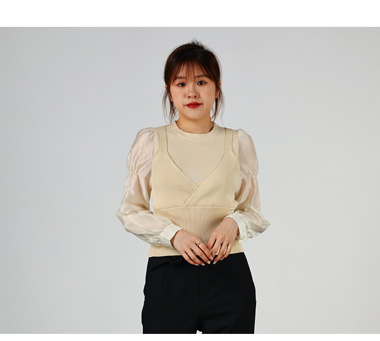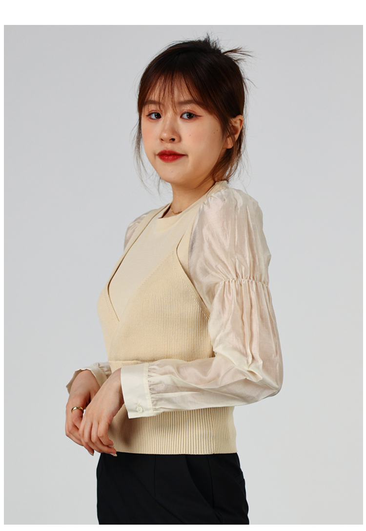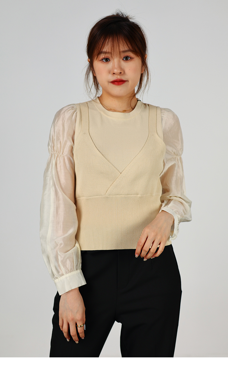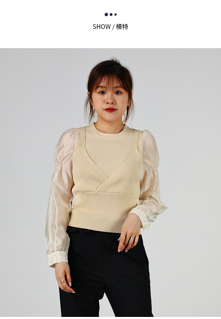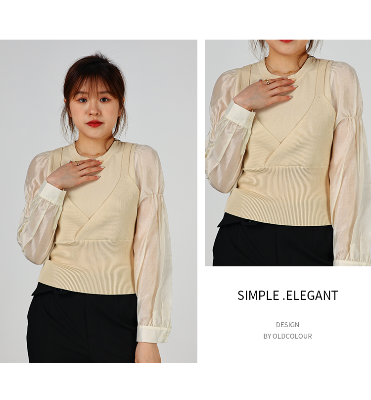 oldcolour2022秋季商场同款气质时尚泡泡袖针织衫假两件O32052220