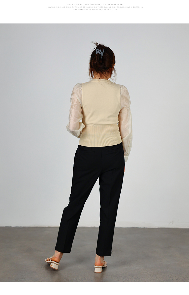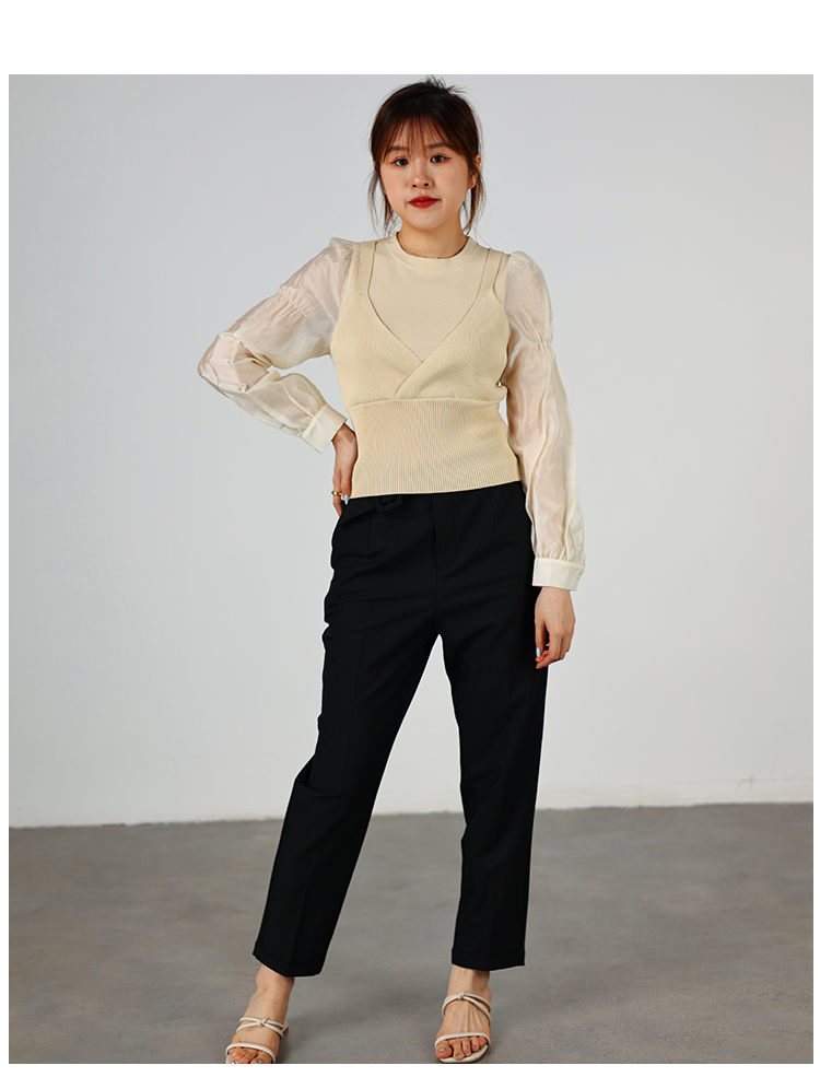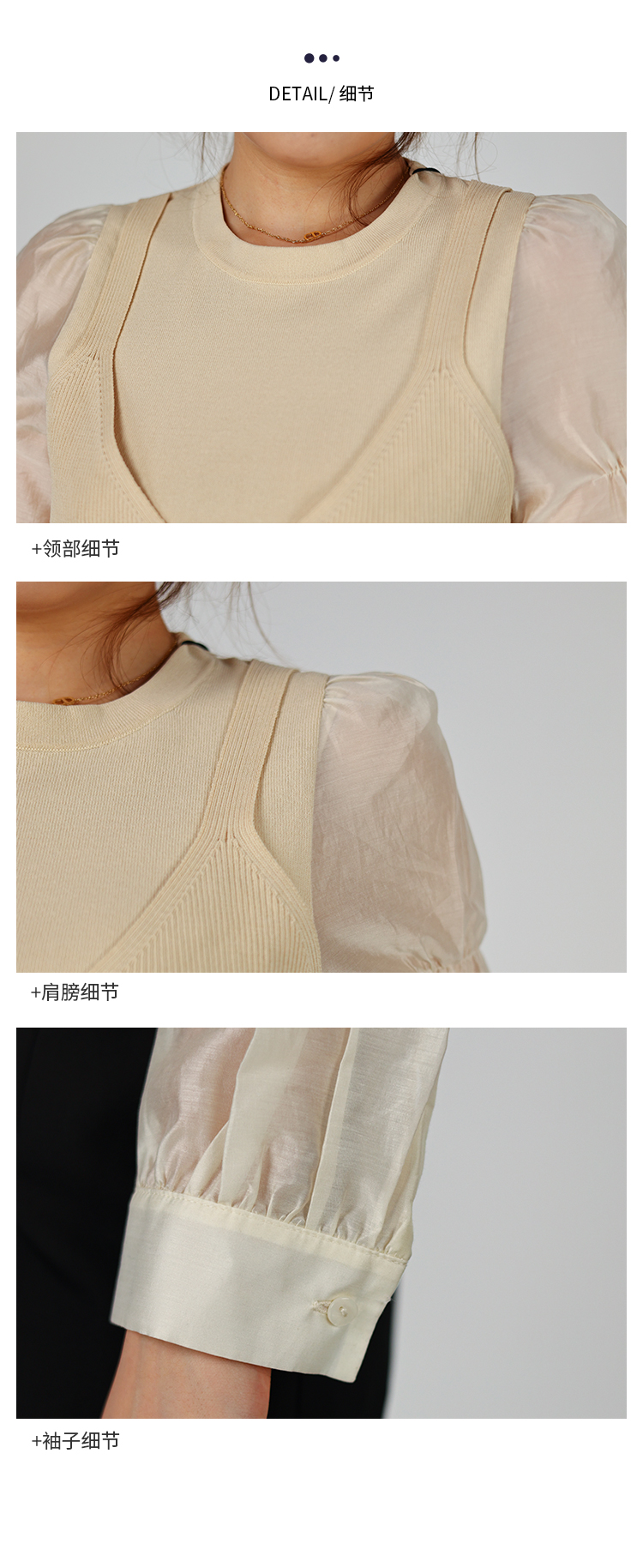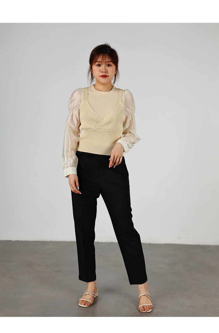 oldcolour2022秋季商场同款气质时尚泡泡袖针织衫假两件O32052220