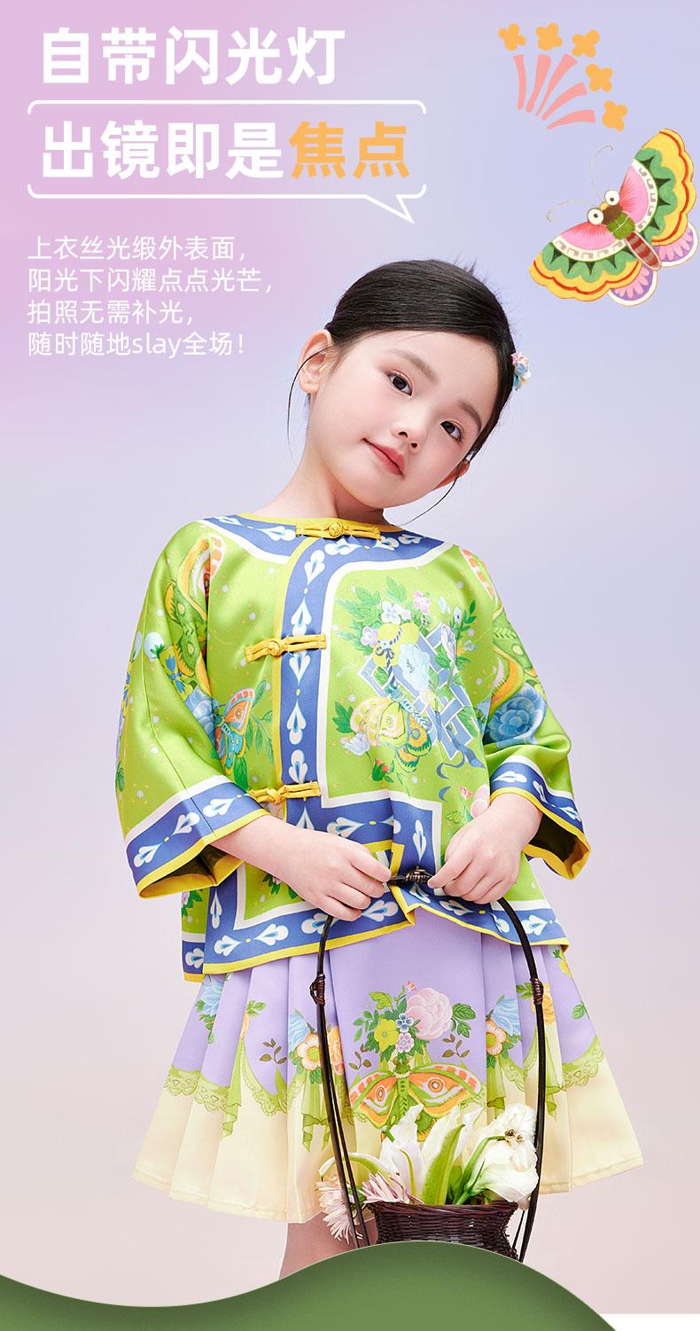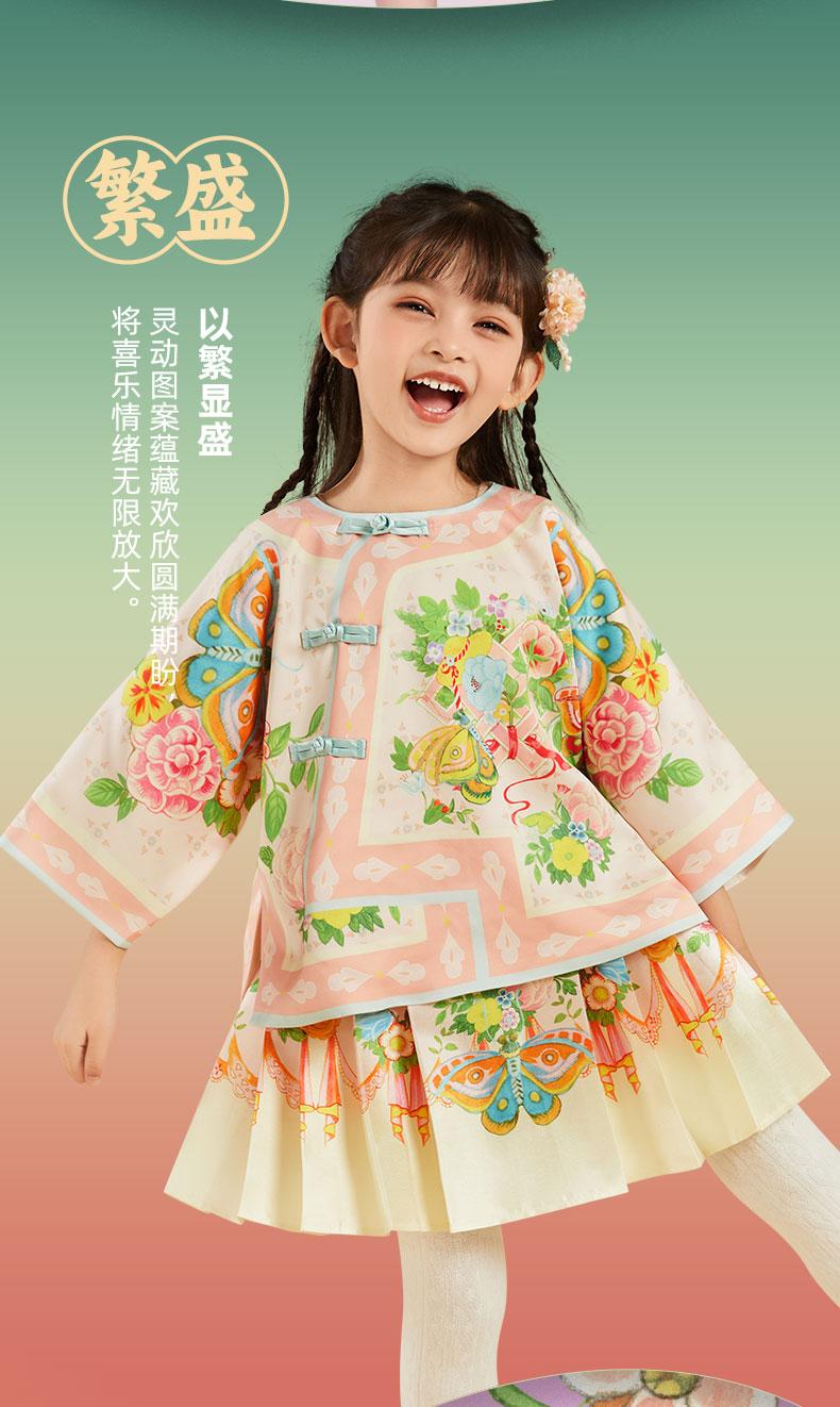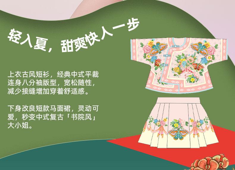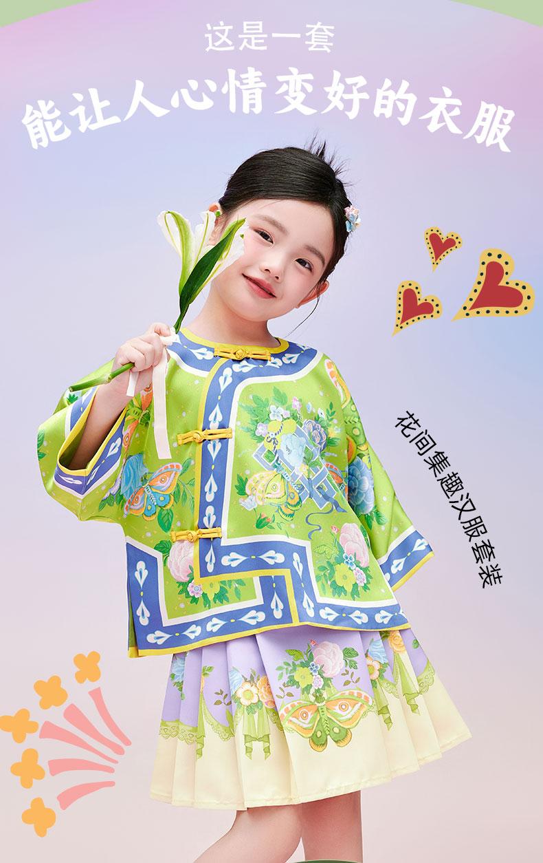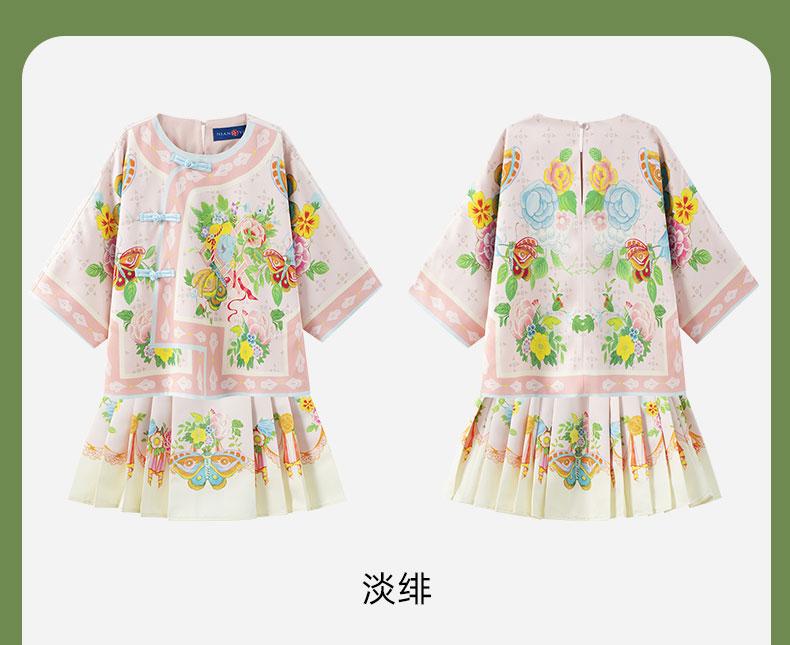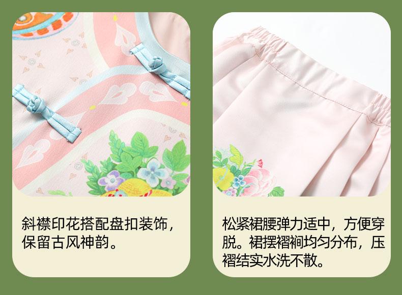 【花间集趣汉服套装】女童夏季新款汉服套装印花女孩中国风短裙 XHR