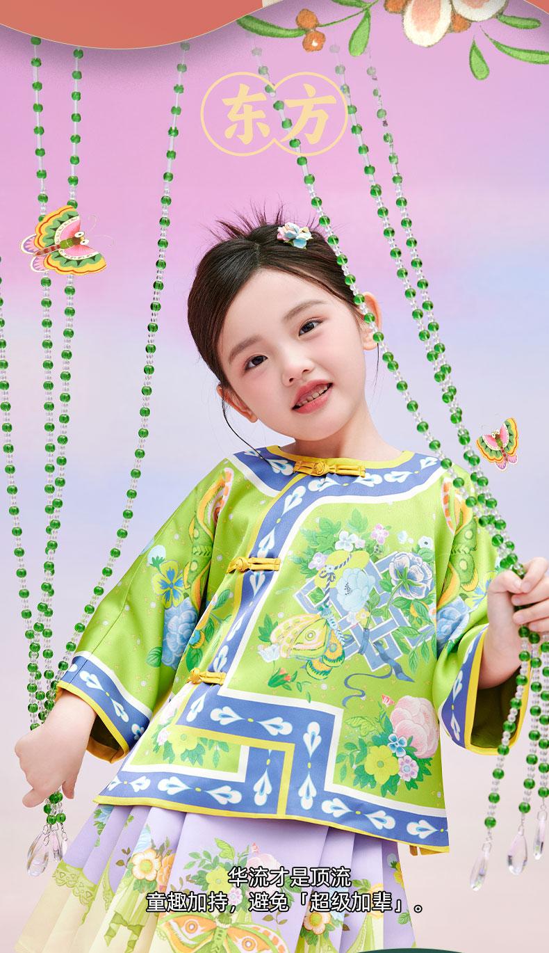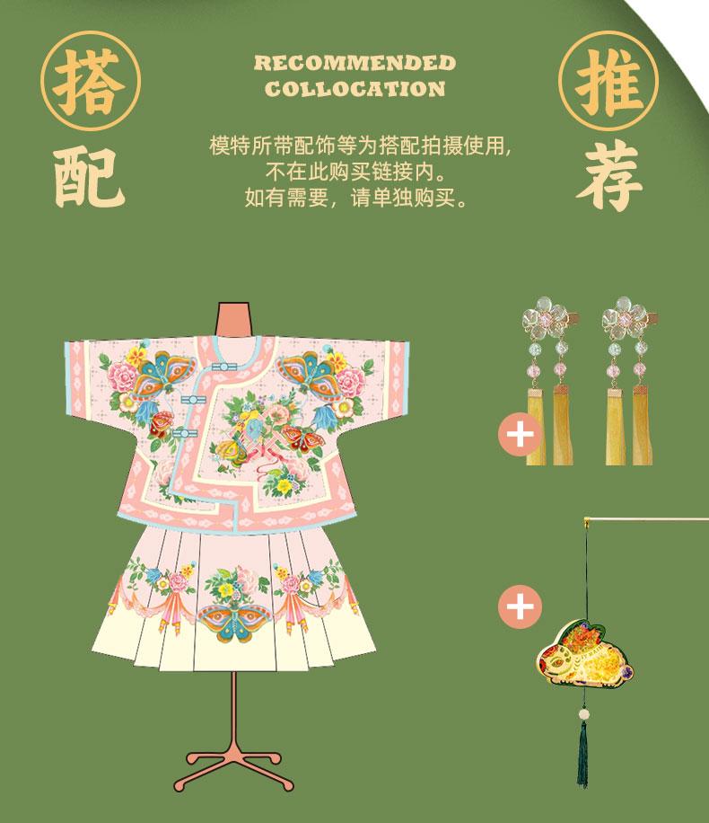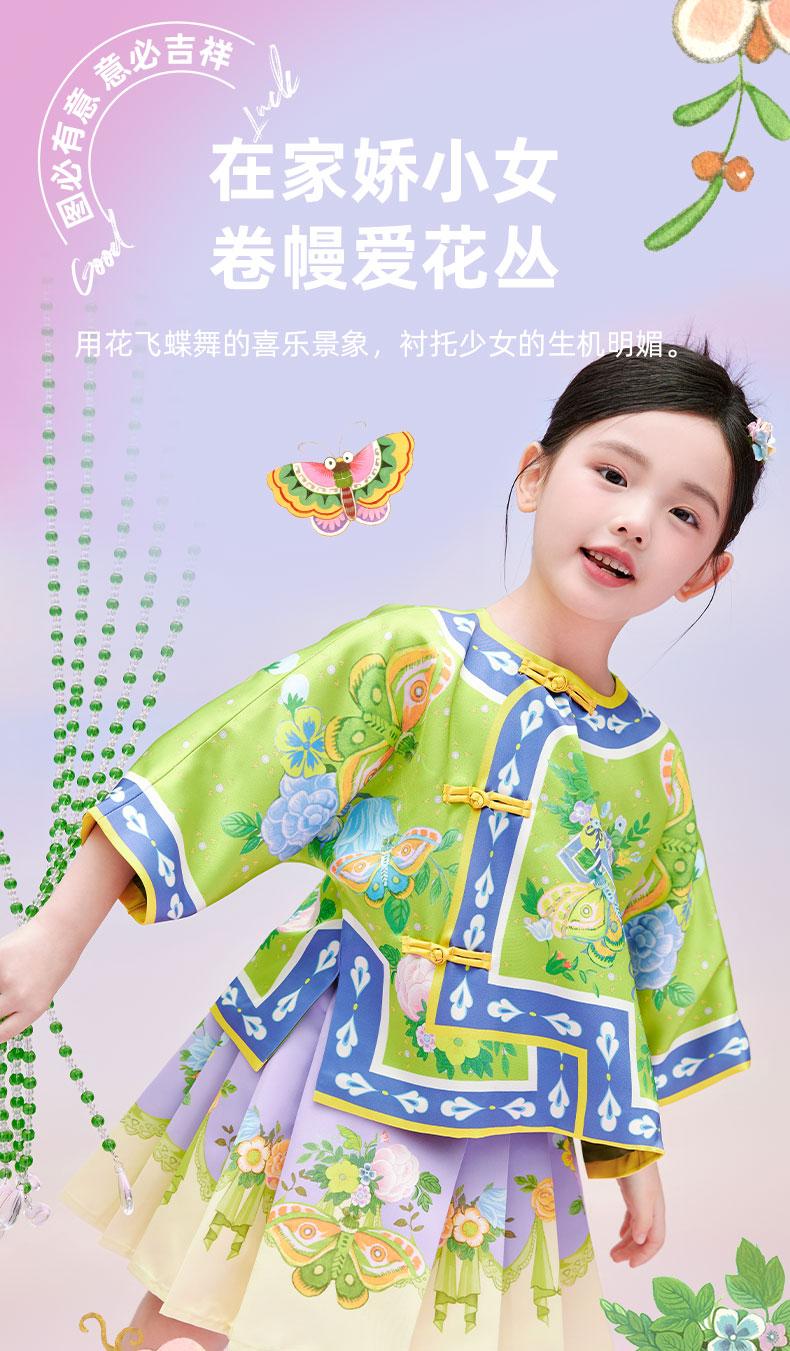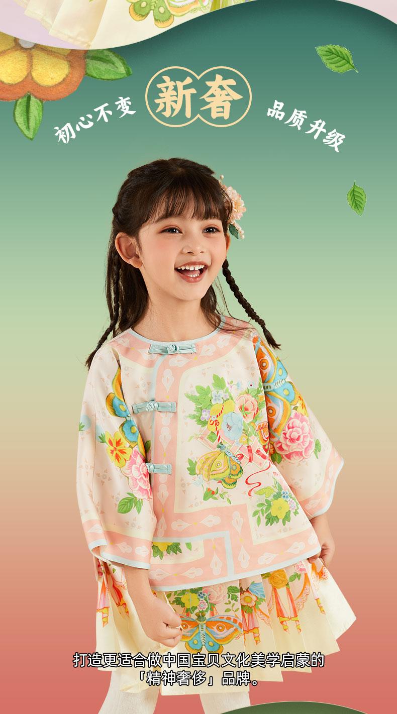 【花间集趣汉服套装】女童夏季新款汉服套装印花女孩中国风短裙 XHR