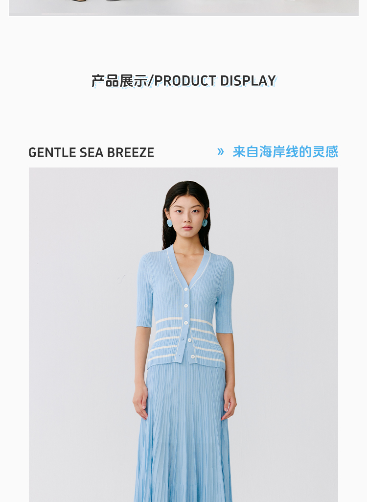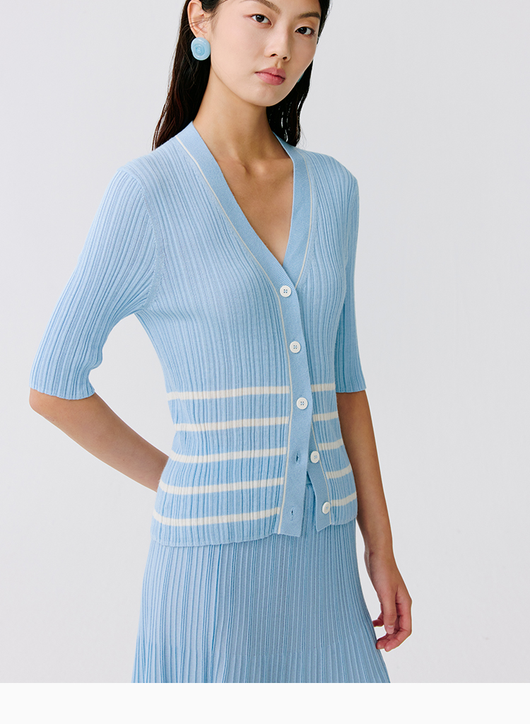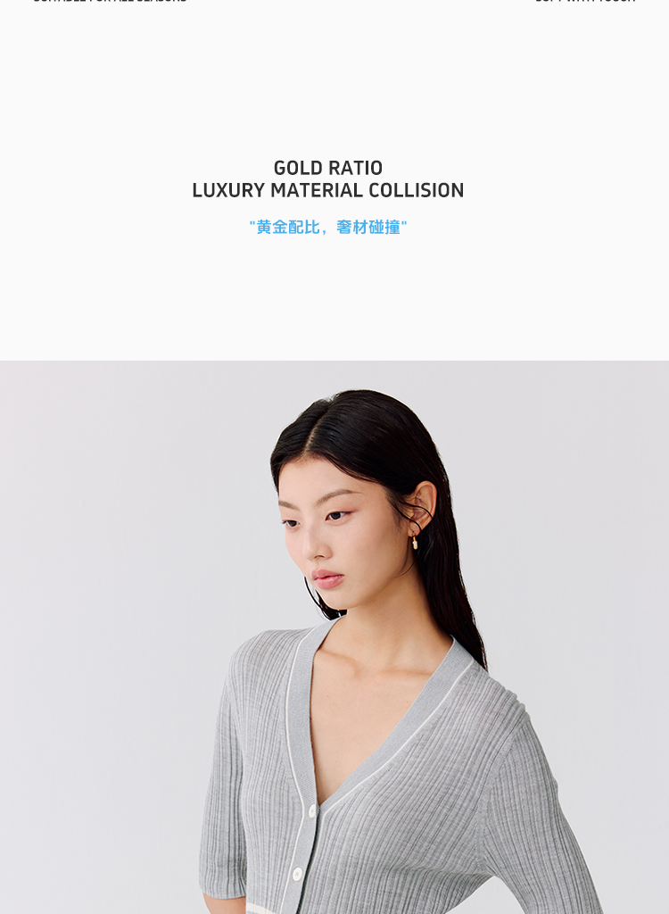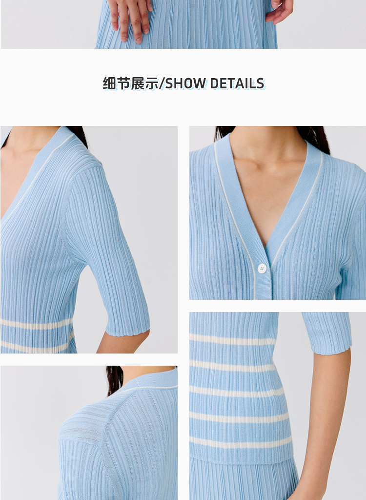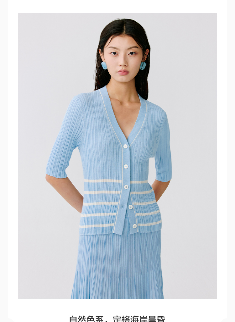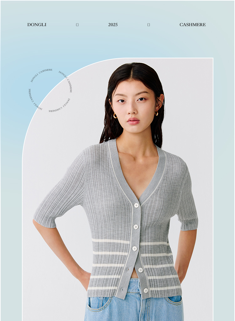 东黎 • 温柔的海风 第五航线 桑蚕丝山羊绒女士V领短袖 5201