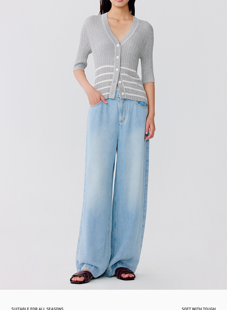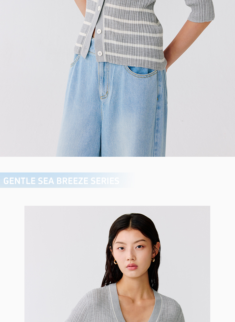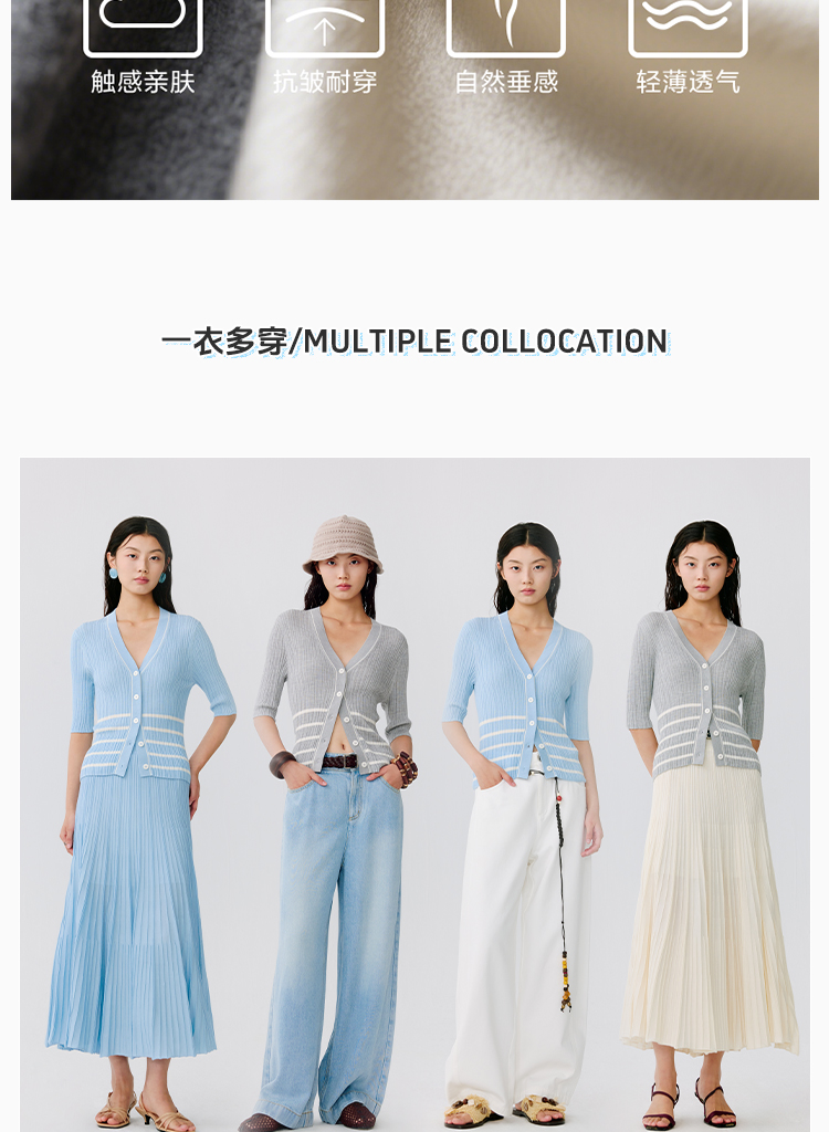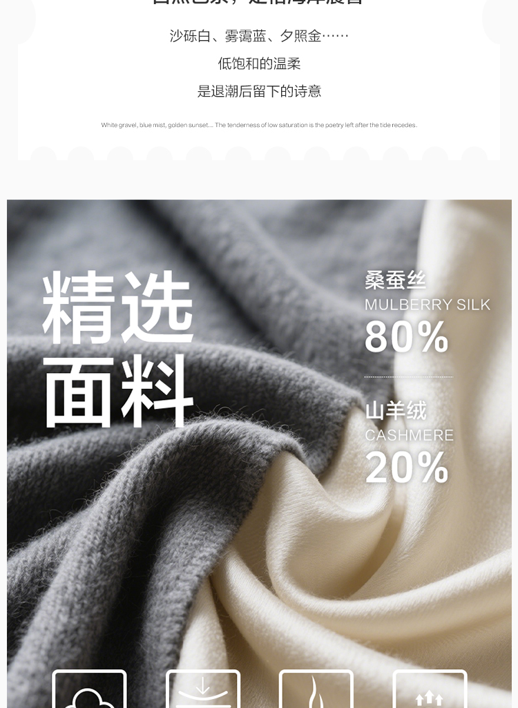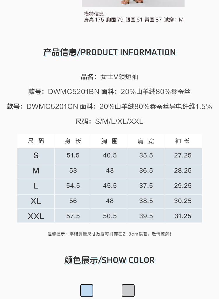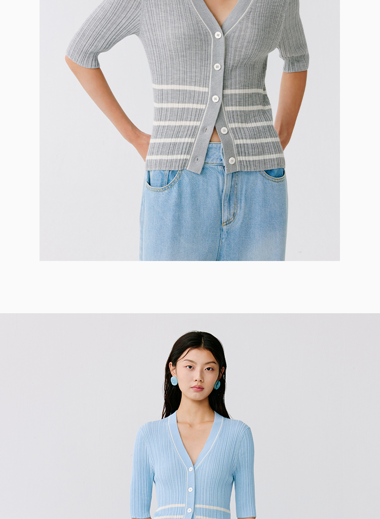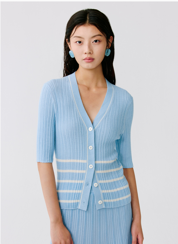 东黎 • 温柔的海风 第五航线 桑蚕丝山羊绒女士V领短袖 5201
