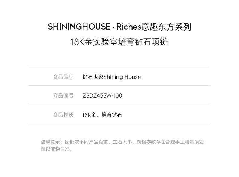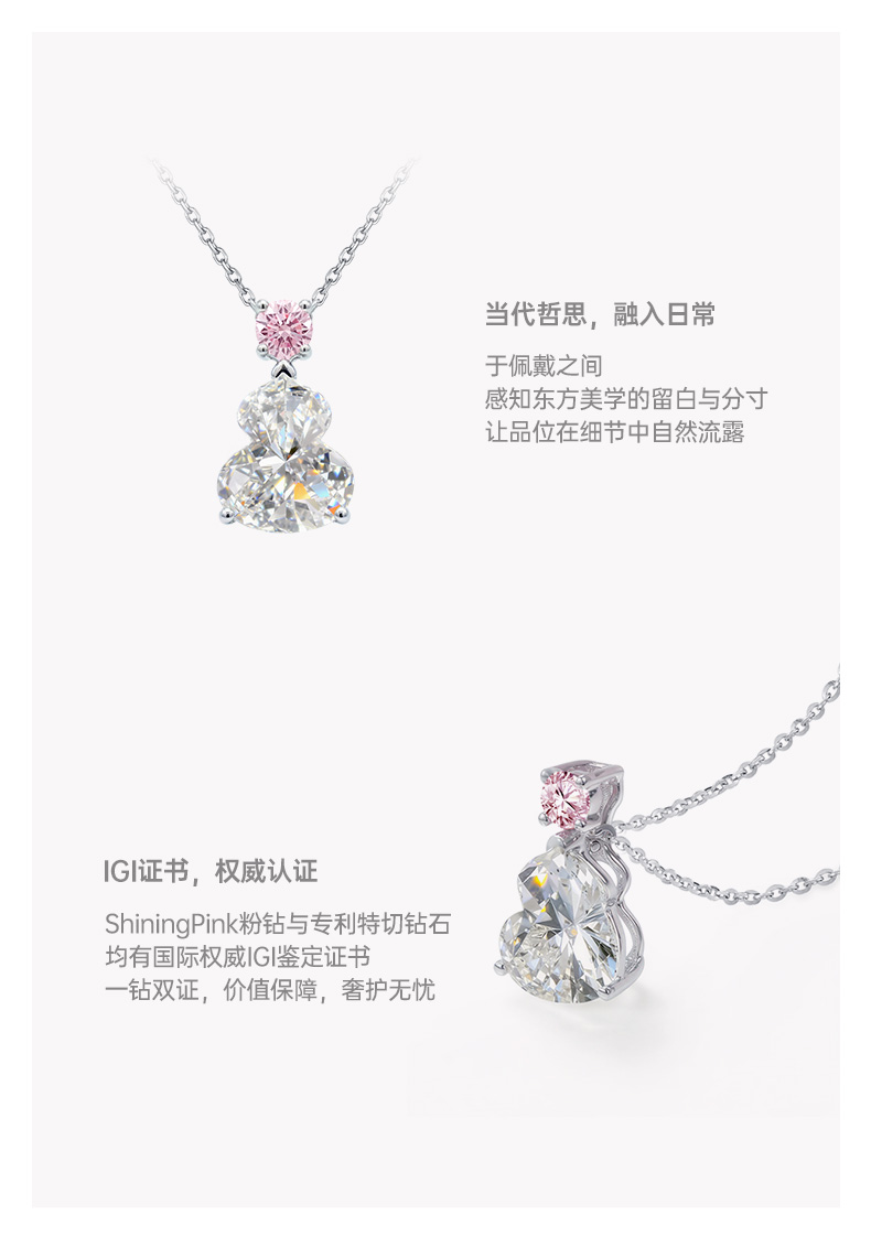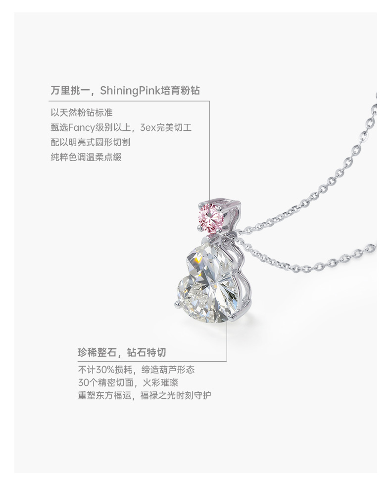 Riches·意趣东方系列 ShiningHouse[培育] 18K金钻石项链 葫芦形1克拉钻人工真钻人造钻石K金项链时尚钻石项链【此商品不支持7天无理由退货退款】约3个工作日发货