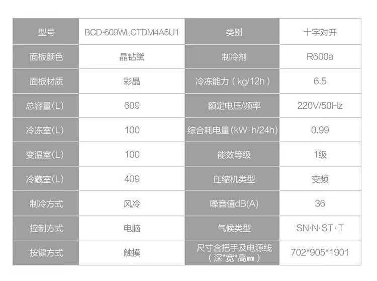 卡萨帝法式冰箱BCD-609WLCTDM4A5U1