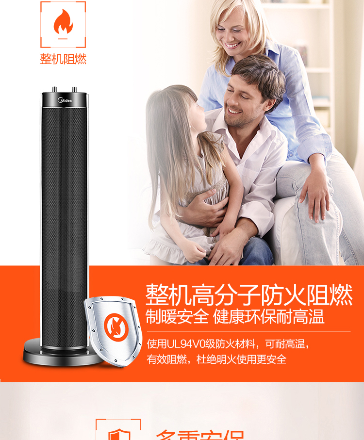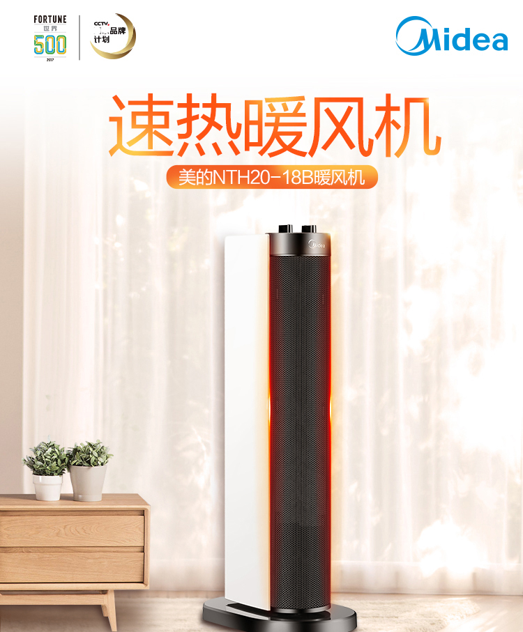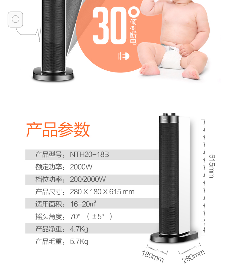 美的 NTH20-18B 立式取暖器陶瓷发热防火材料跌倒断电防尘双外壳(创)
