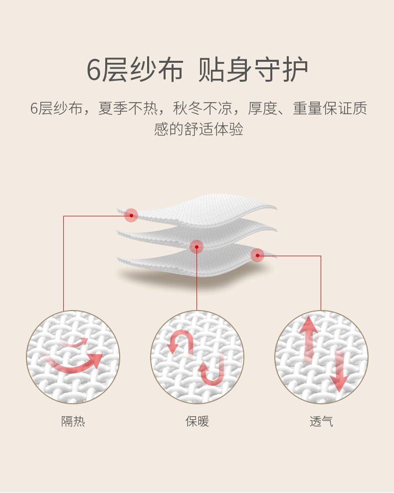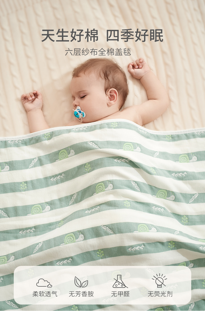 babygreat六层全棉纱布毛巾被盖毯120*120cm