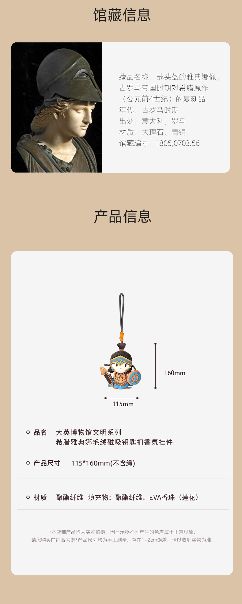 大英博物馆 文明系列 希腊雅典娜毛绒磁吸钥匙扣 香氛挂件