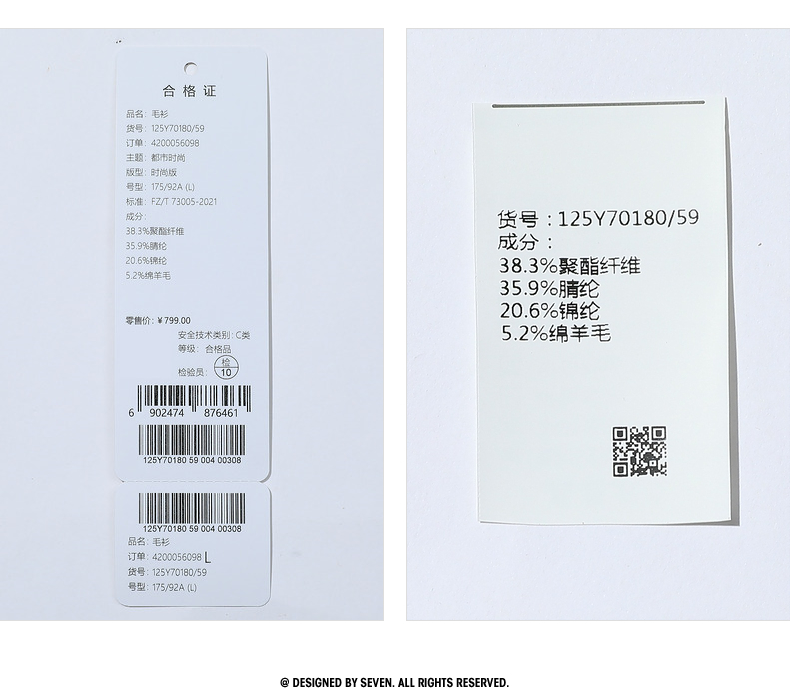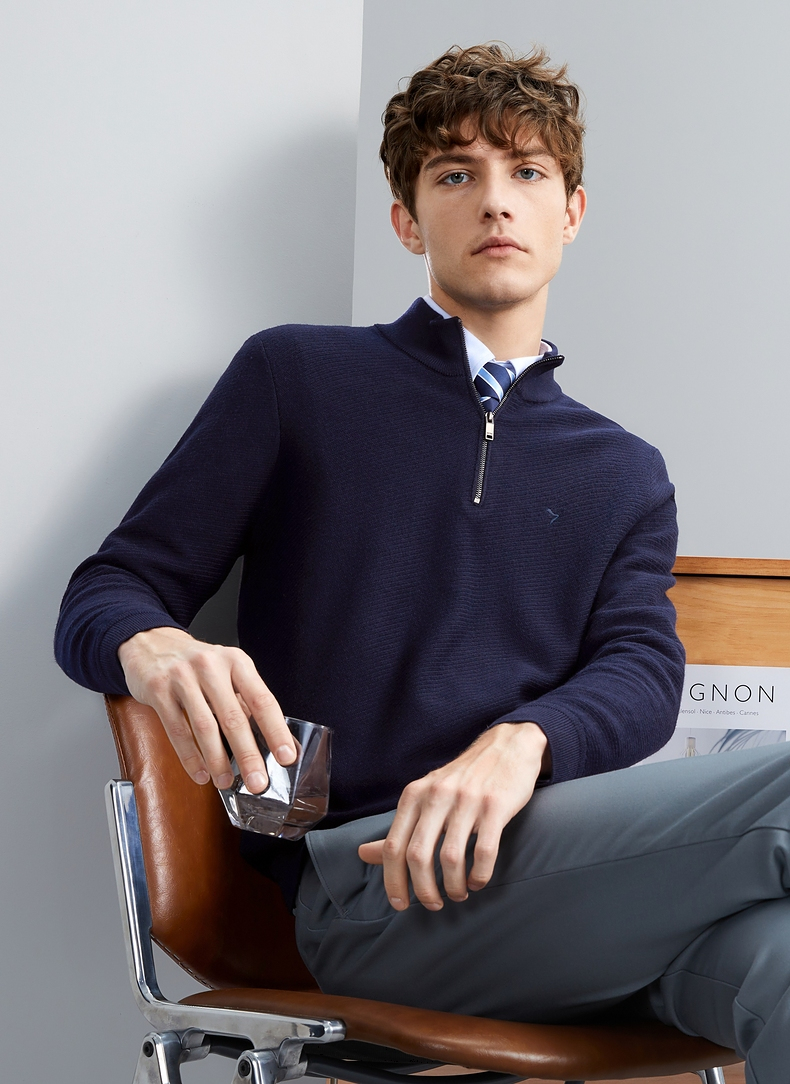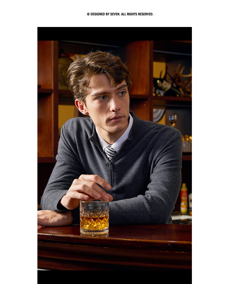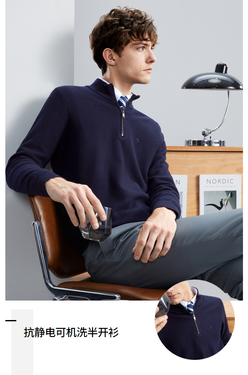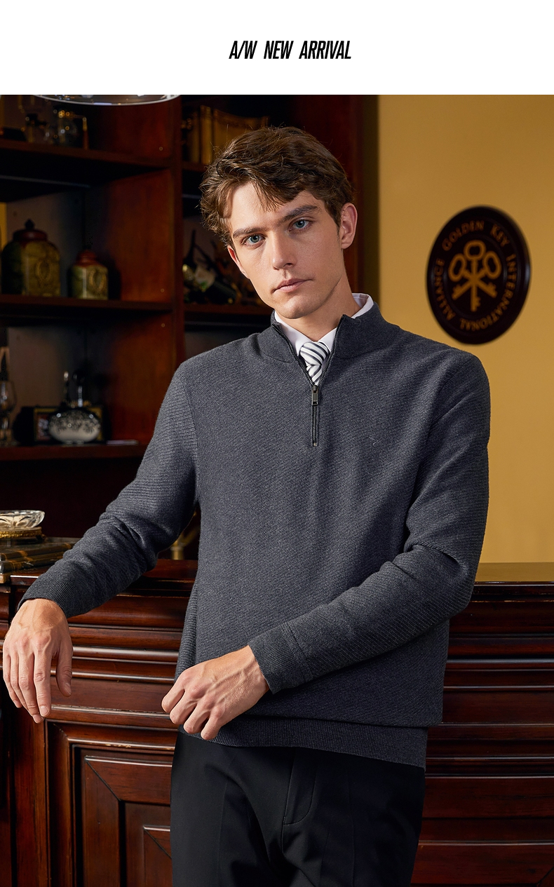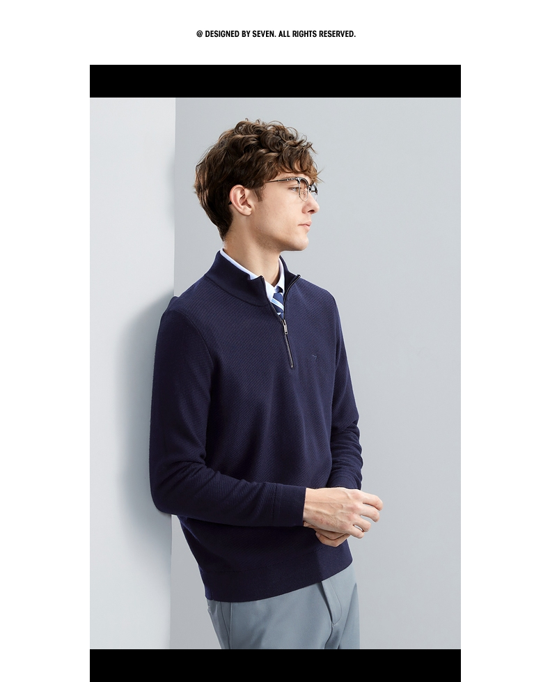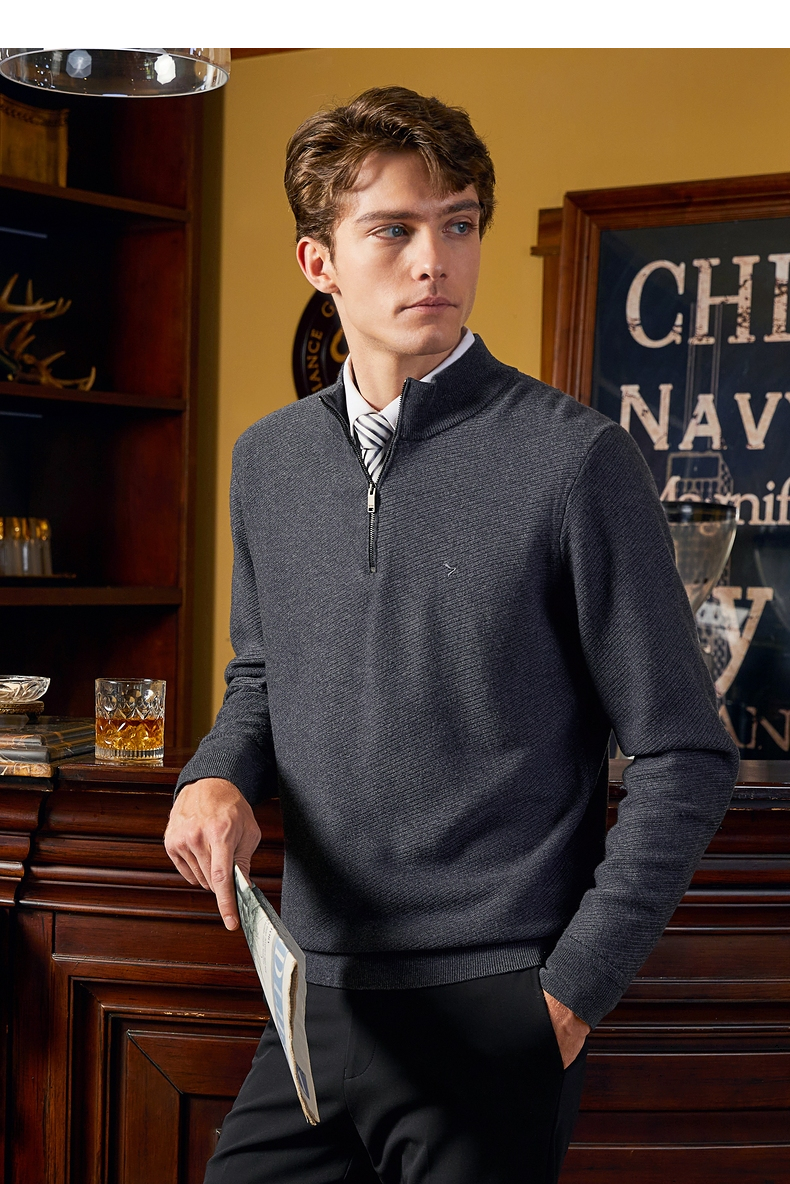 【可机洗】柒牌男士拉链半高领毛衣秋冬新款抗静电含羊毛保暖毛衫 125Y70180