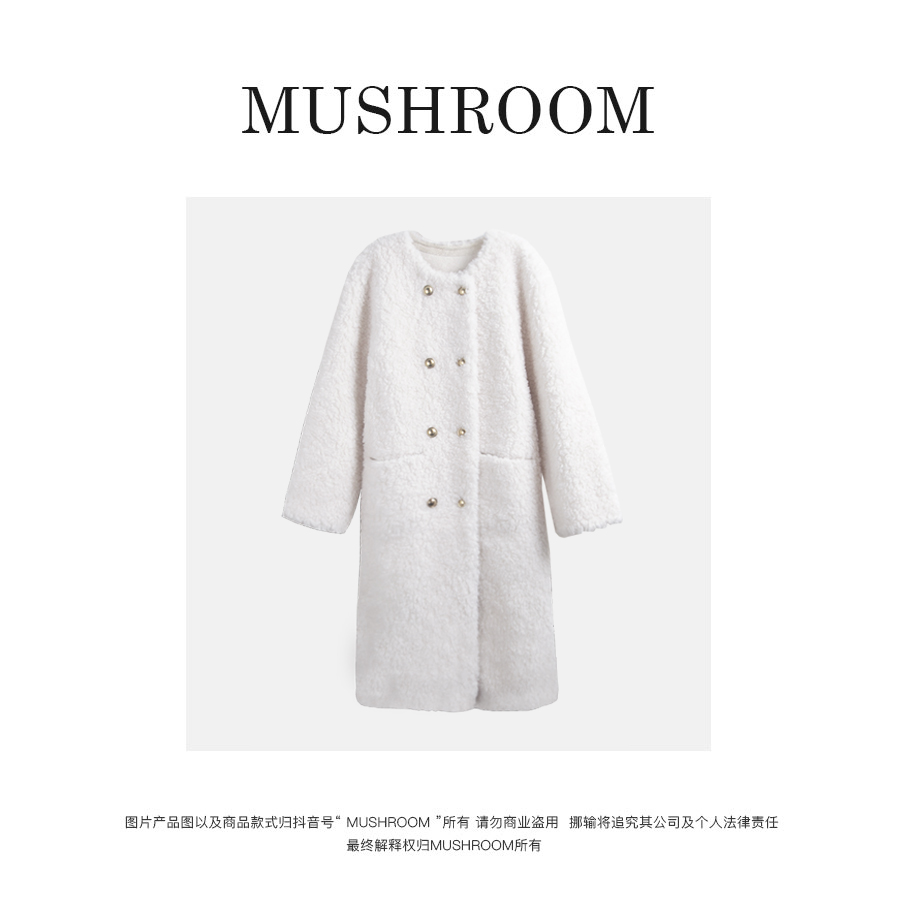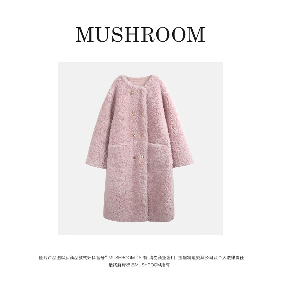 金蘑菇菇【甜心奶羊】高定初剪羊毛长款保暖真毛气质宽松麂皮外套