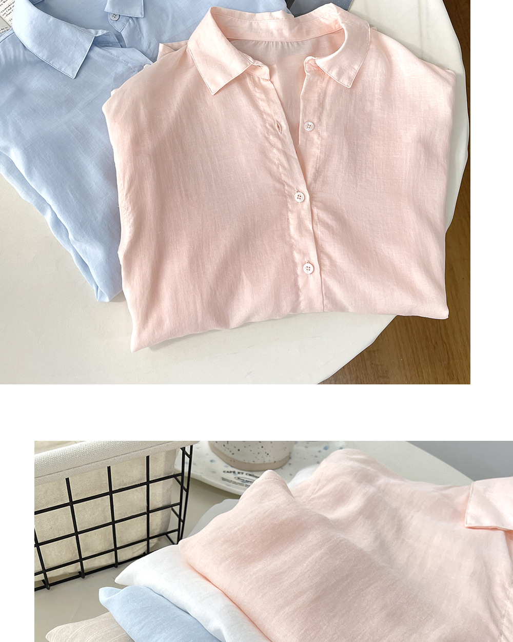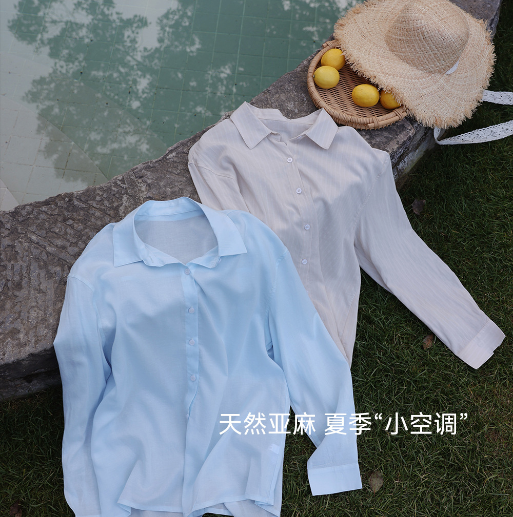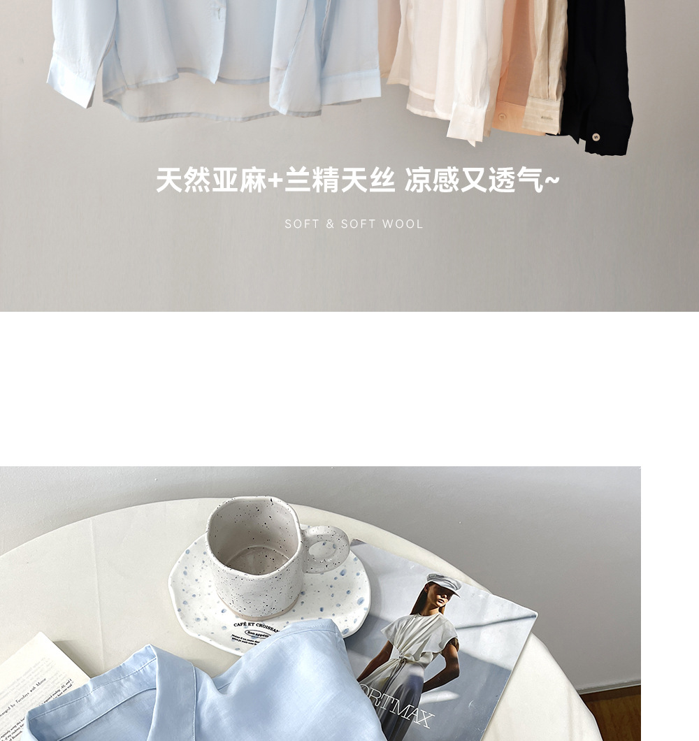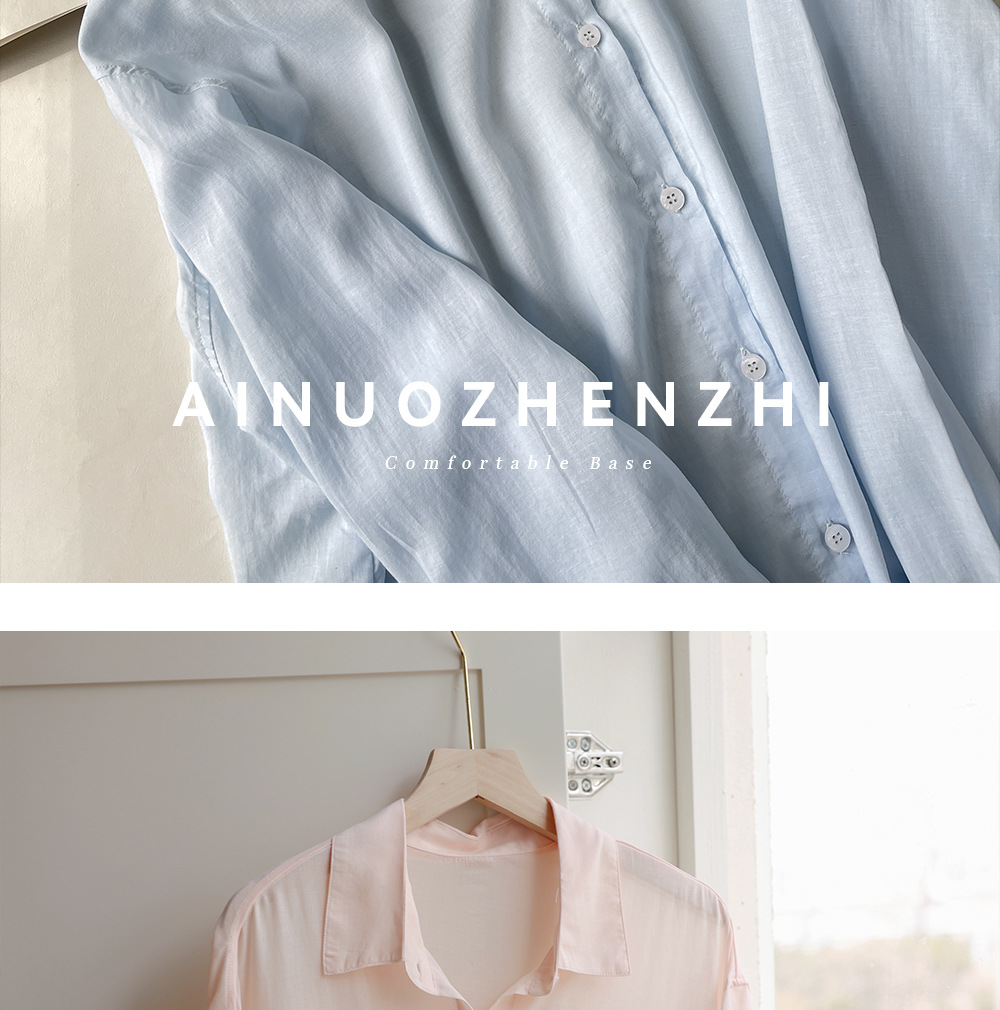 【7天内发出】兰精天丝亚麻衬衫 法式轻薄莱赛尔衬衣 春夏新款防晒开衫上衣