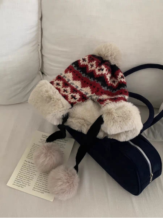 🌈报告!我先5G过圣诞啦🎄全方位保暖的时髦冬天,保暖护耳毛绒💪【HOPENONO费尔岛提花针织帽】🔥方圆脸天菜!秋冬氛围感的神!