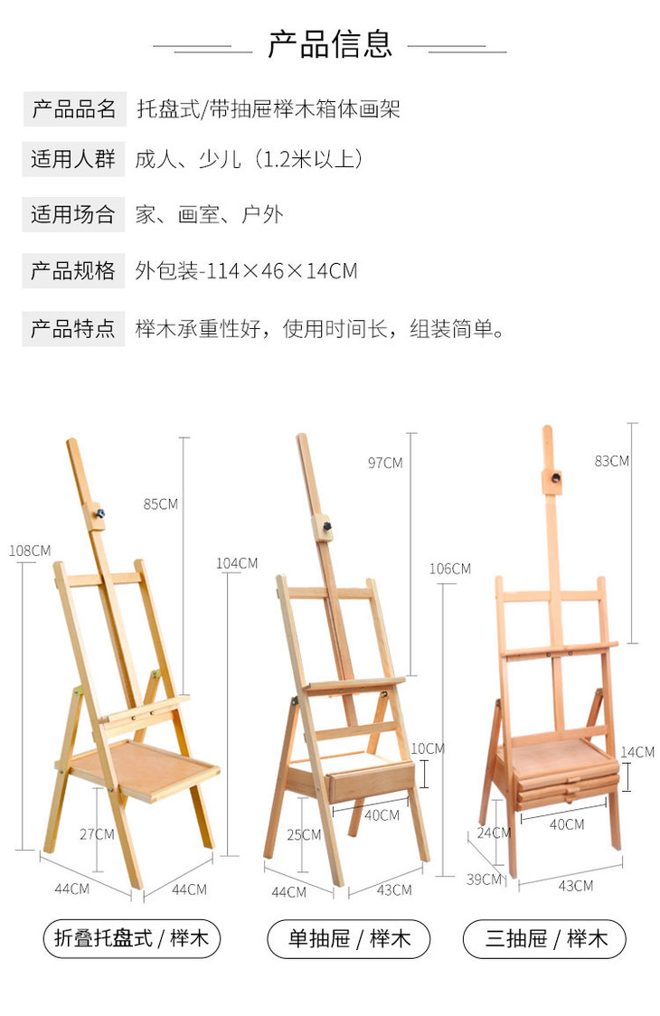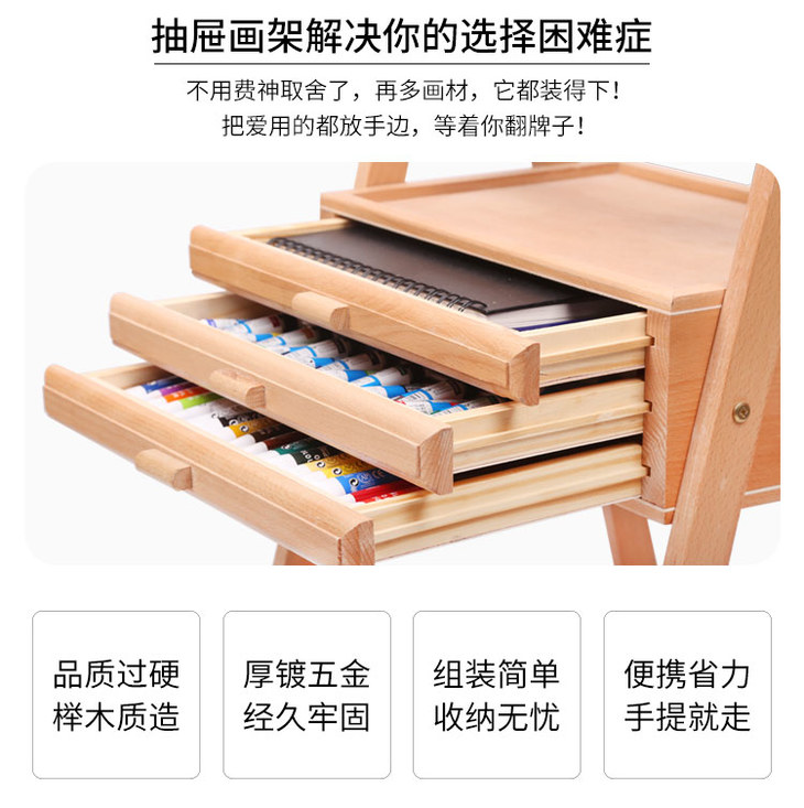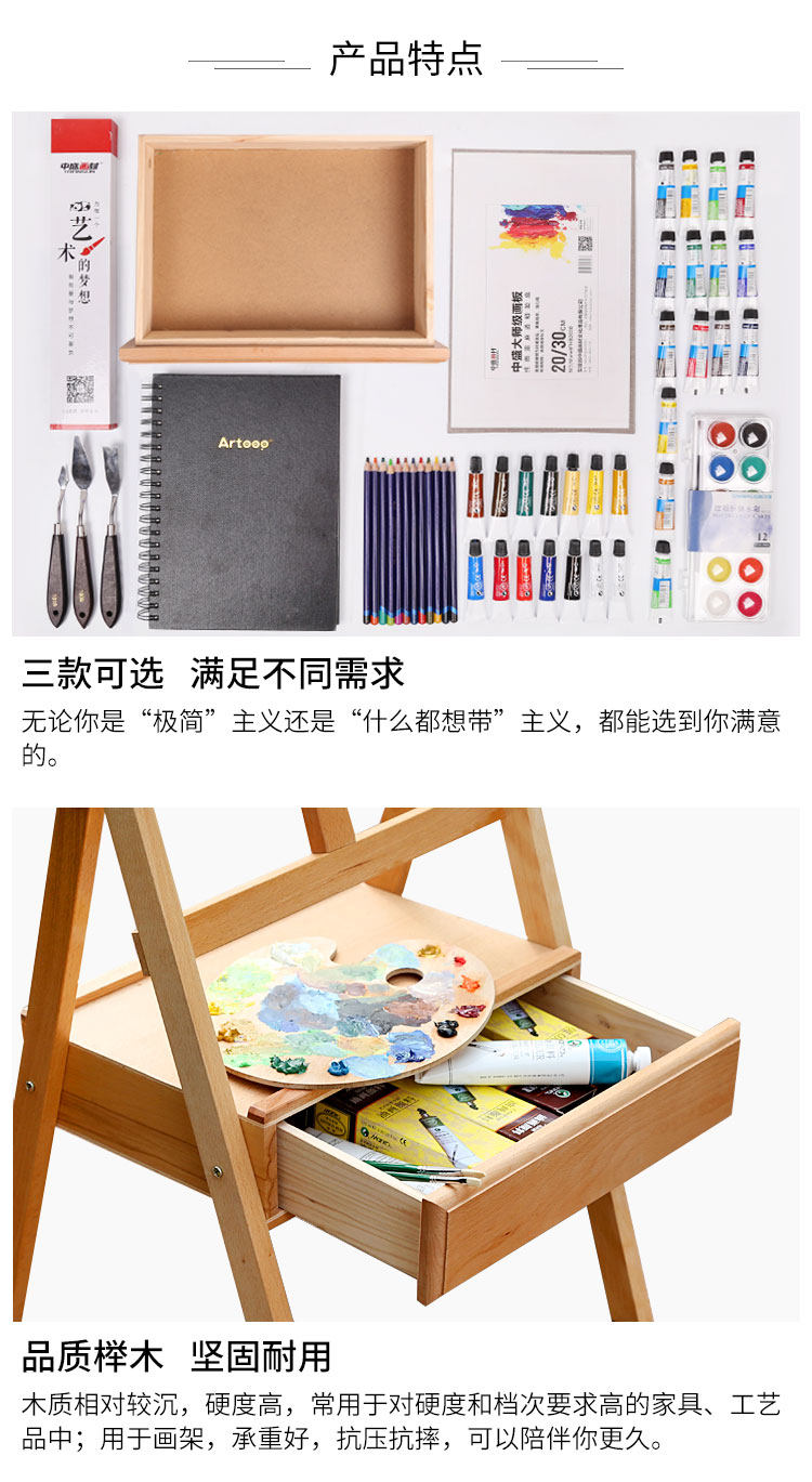 中盛画材 抽屉木质画板画架素描写生套装成人儿童油画架支架式