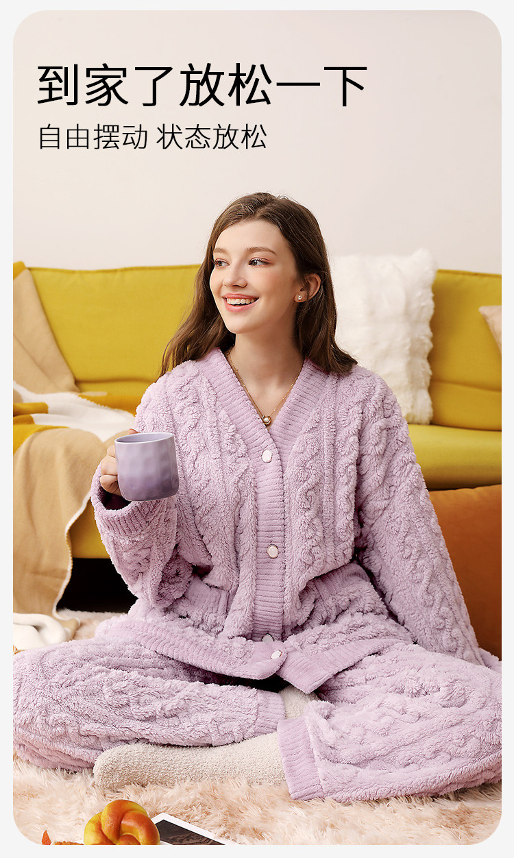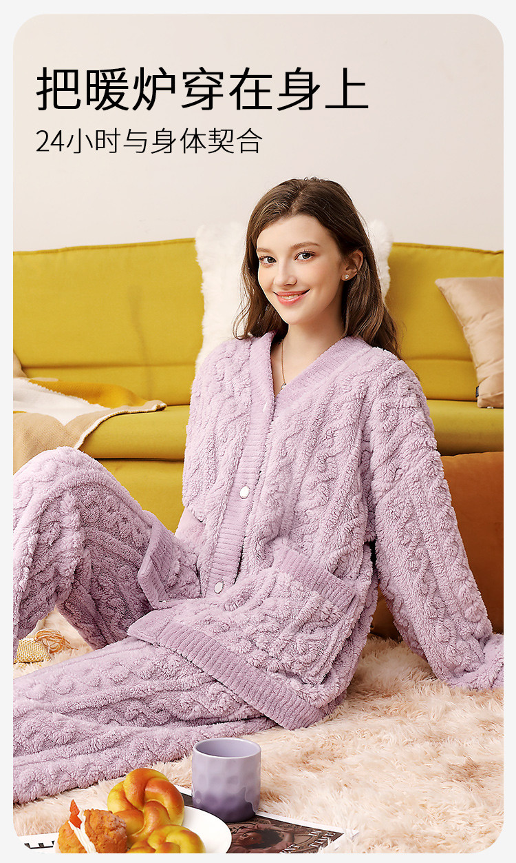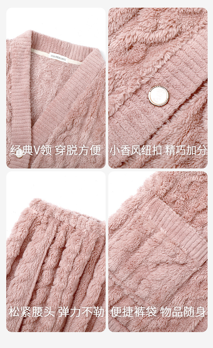 温婉大气 家居服(VIP)秋冬季加绒加厚V领法兰绒舒适保暖家居服套装女