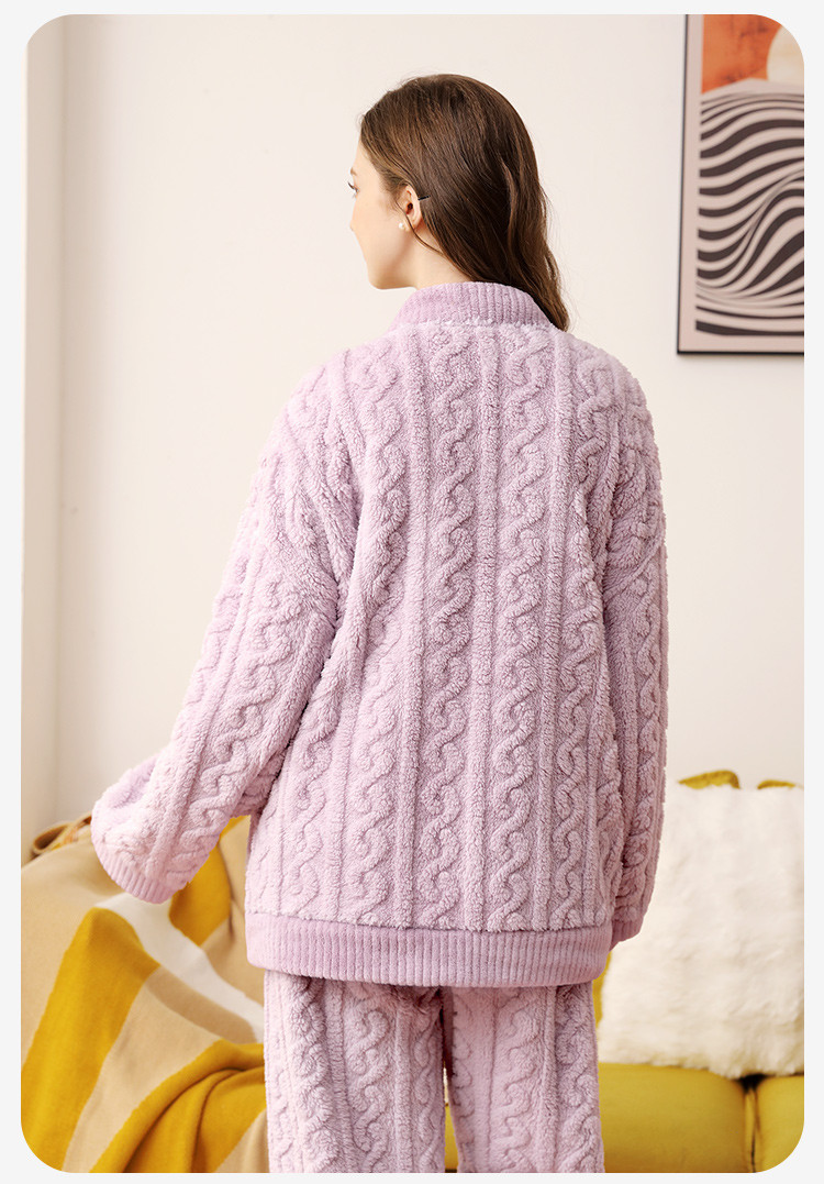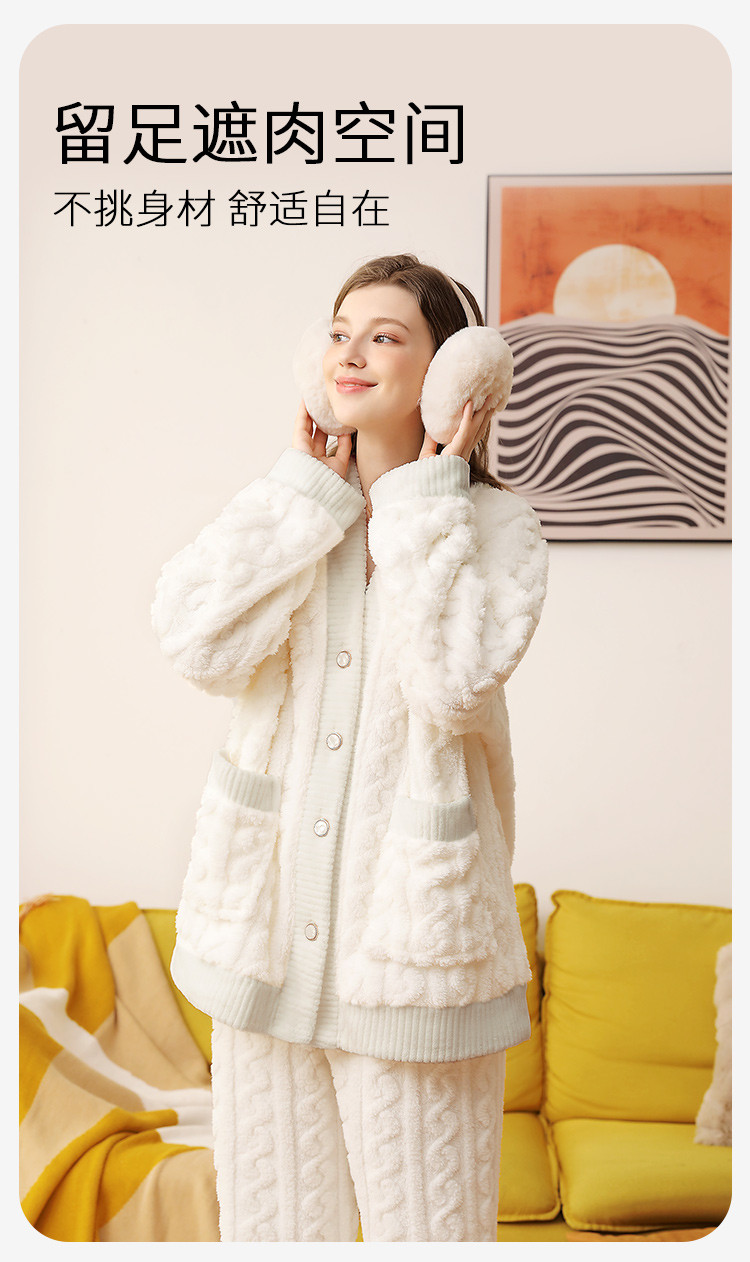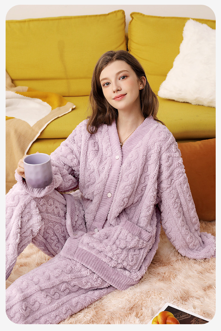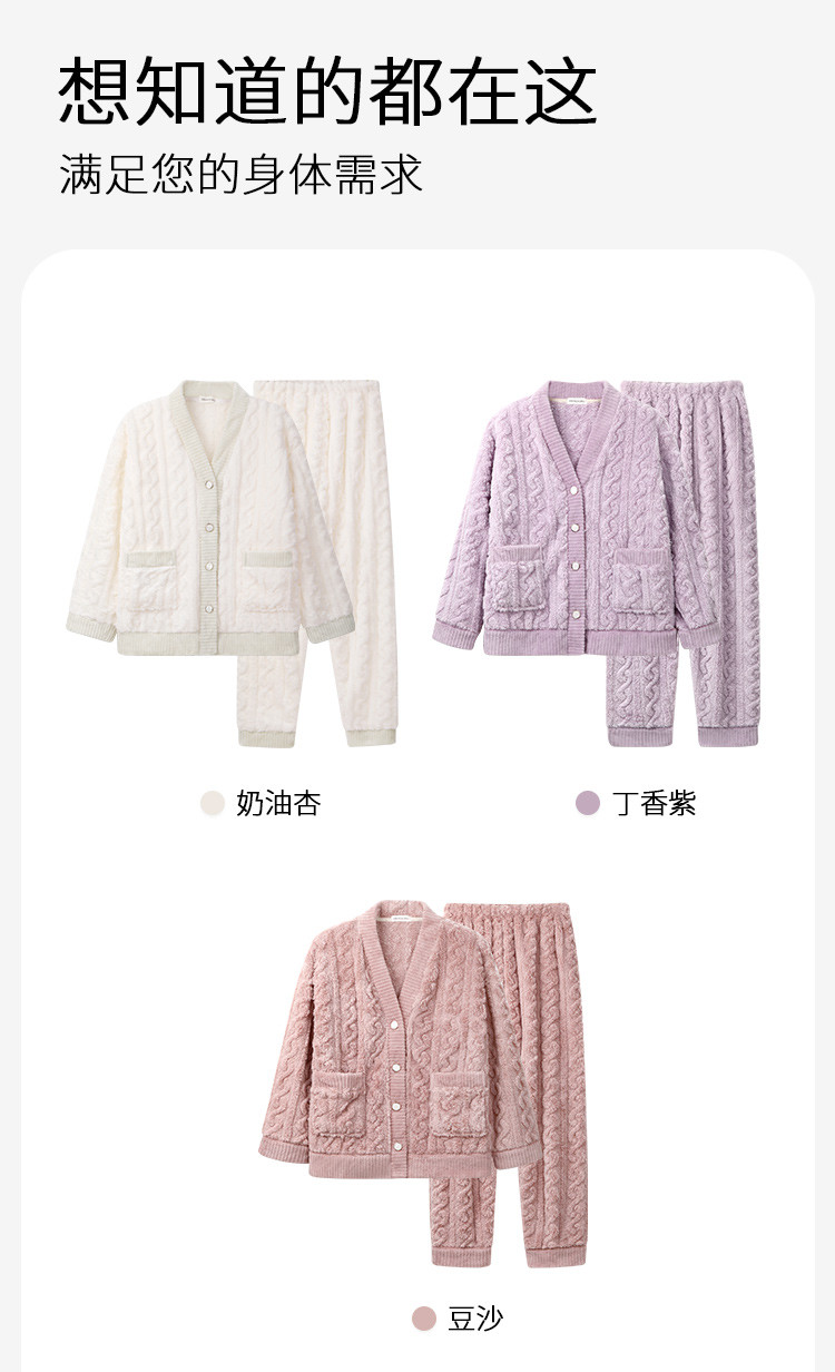 温婉大气 家居服(VIP)秋冬季加绒加厚V领法兰绒舒适保暖家居服套装女