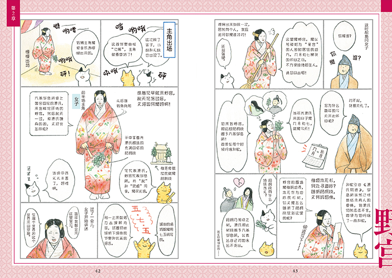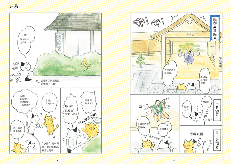 书中设定两只“领路猫”小爱和小胁,以猫咪拟人的轻松漫画形式,带领读者进入能乐的世界。可爱治愈的画风,还原原作剧情又不忘加入诙谐改编的漫画呈现方式,二人漫画组合“空间办公室”将现代与传统完美结合,以新鲜、有趣的新形式诠释古典艺术。