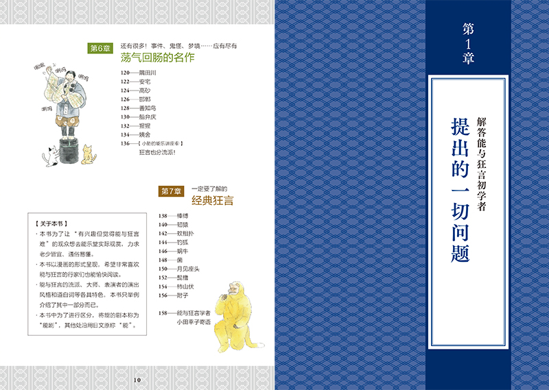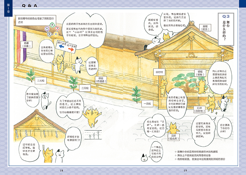 能乐发展至今,形成了不同的流派。能分为观世流、金春流、喜多流、宝生流、金刚流五大流派,狂言分为大藏流、和泉流两大流派。每个流派都传承着自己的历史和经典,演绎着幽深、玄妙的艺术。《图解日本能与狂言》以领路猫们为向导,带领读者体验正宗能乐流派开设的能乐课堂,感受能乐的三大要素谣曲、舞蹈和伴奏,揭开能乐神秘的面纱。