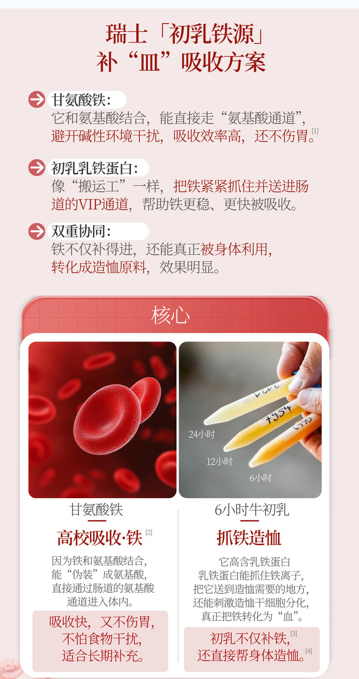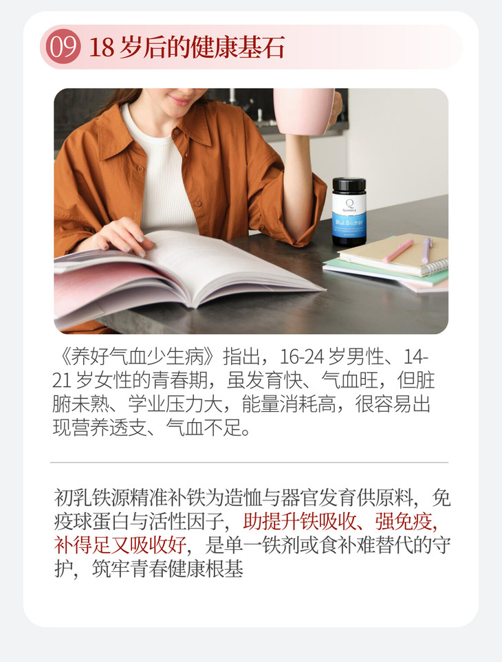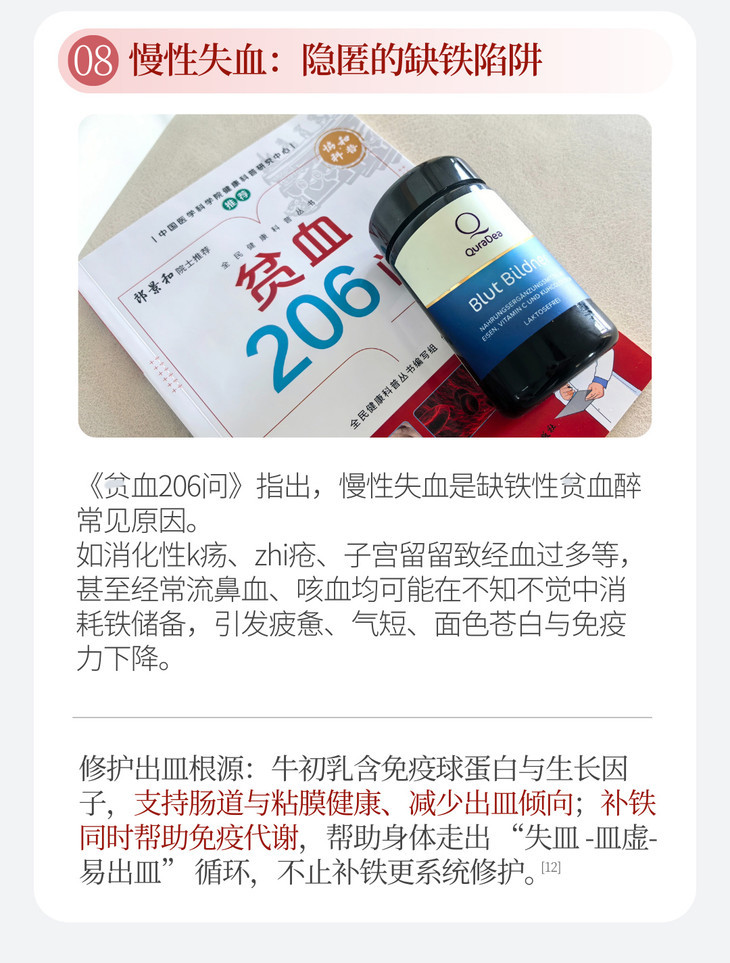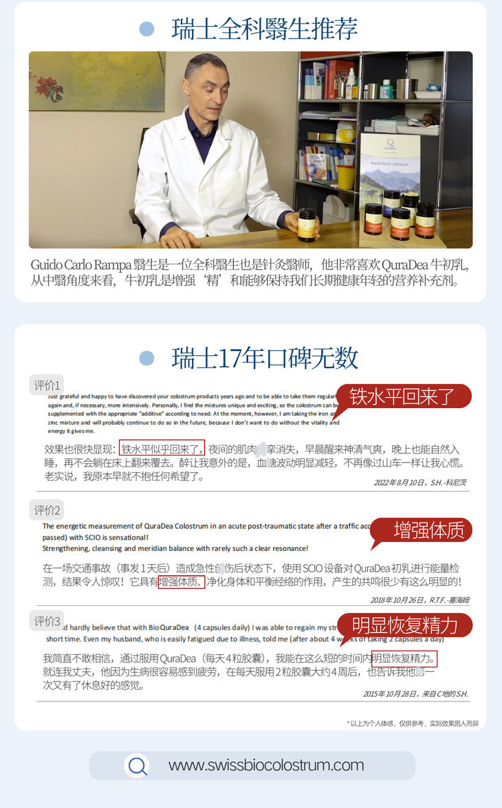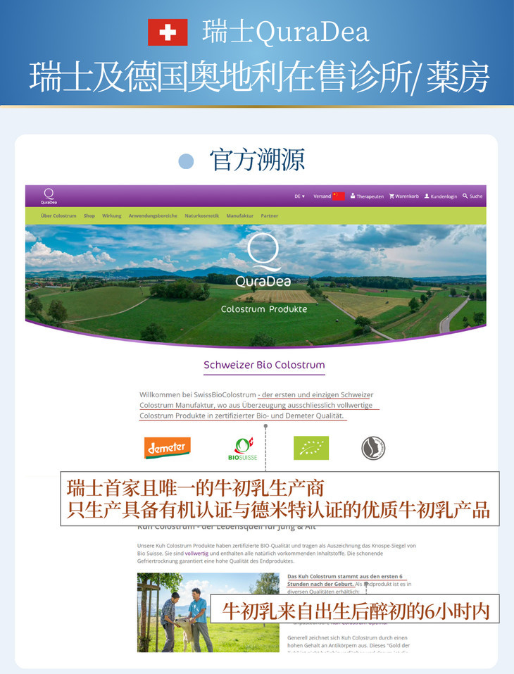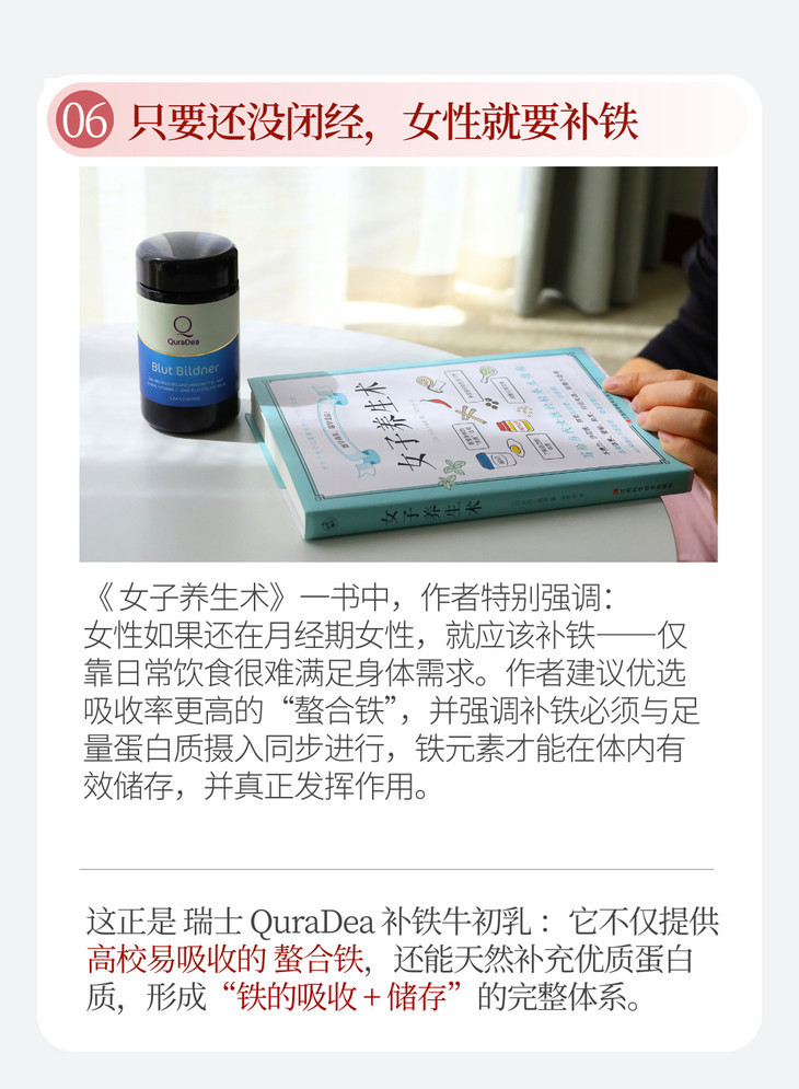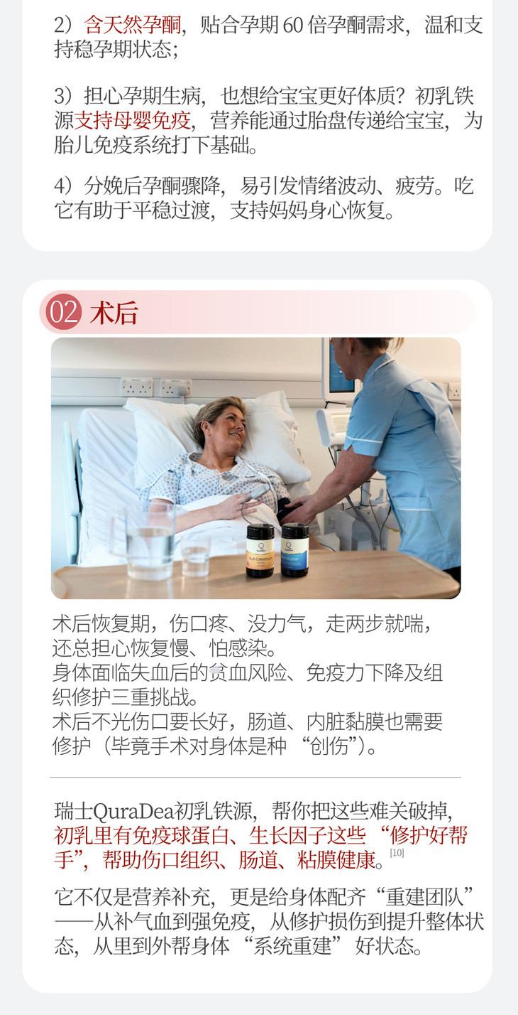 瑞士QuraDea牛初乳/铁源胶囊120粒 含多种维生素/氨基酸/矿物质!提免yi、促进铁吸收、守护肠道和皿液健康!全链路补铁造桖 日期27年8月