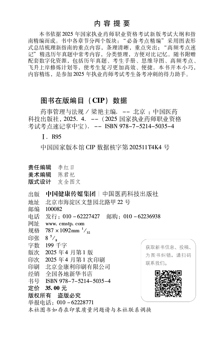 书名:药事管理与法规(2025国家执业药师职业资格考试考点速记掌中宝)
