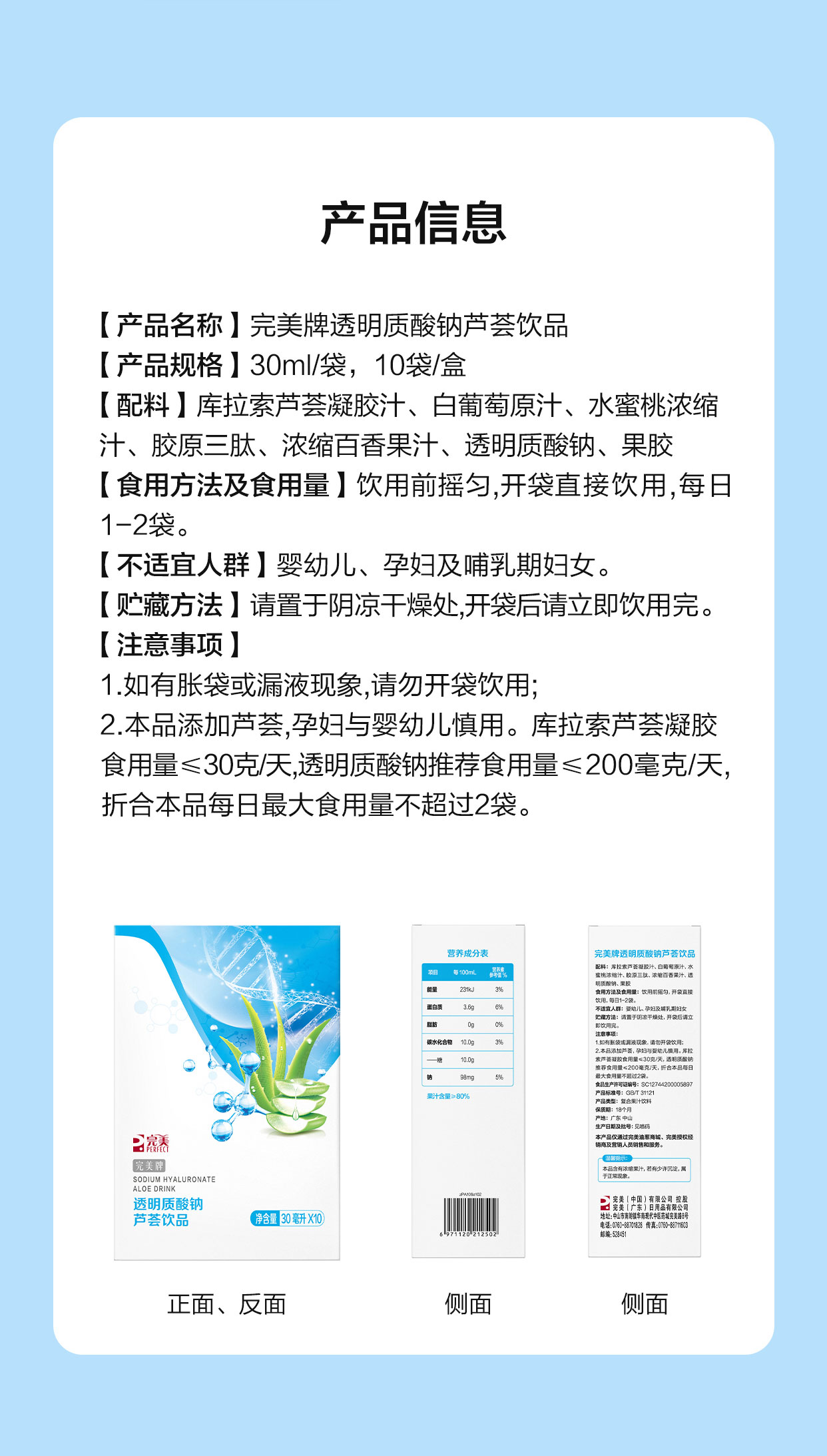 【预售 急单慎拍】完美牌透明质酸钠芦荟饮品 30mL/袋,10 袋/盒 原价218元