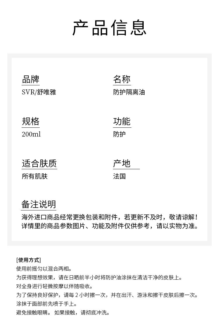 【预售 急单慎拍】SVR舒唯雅 清爽隔离油200ml spf50+ 水油分离无酒精