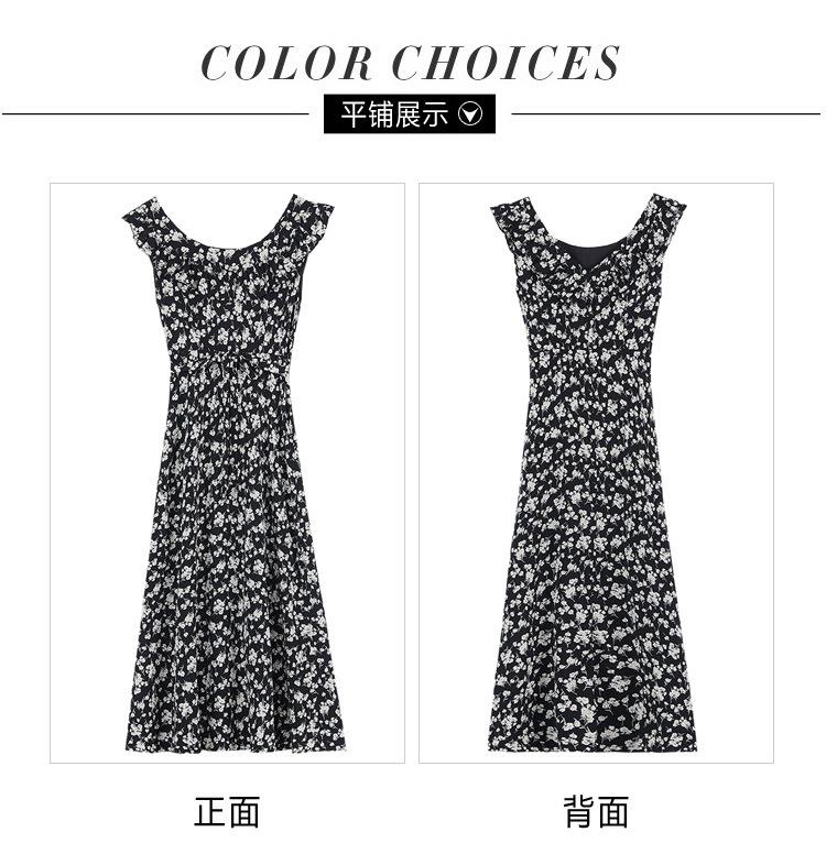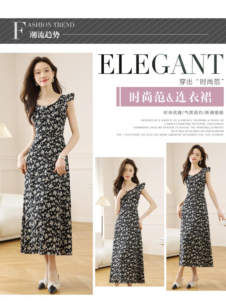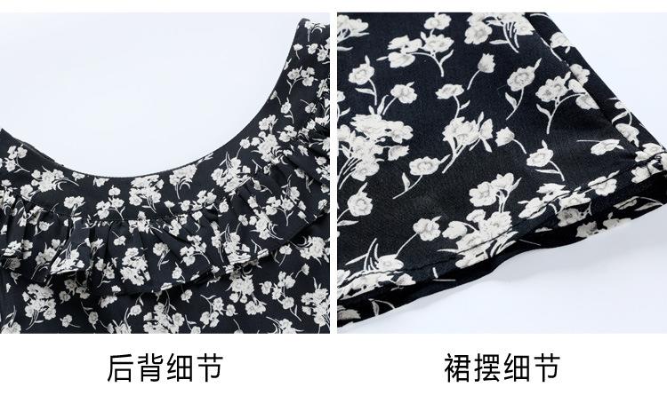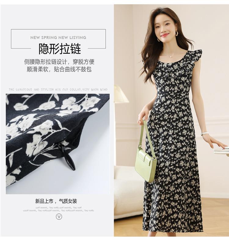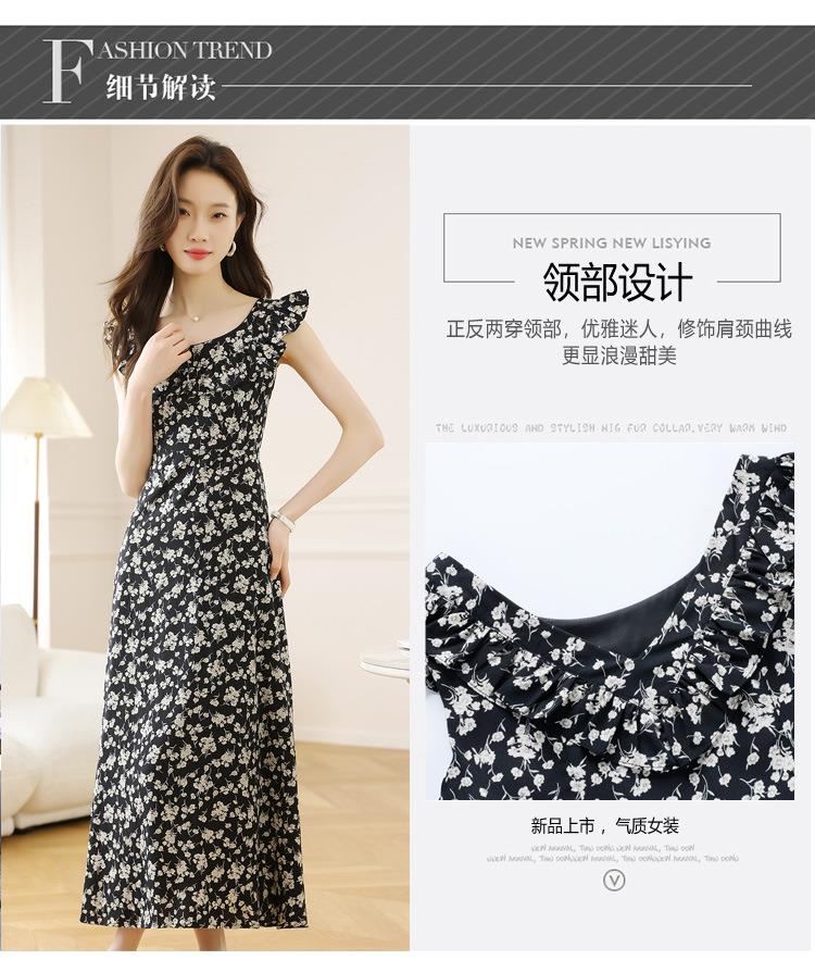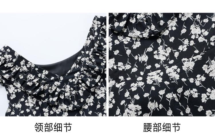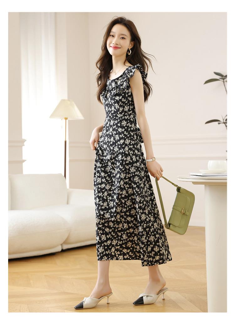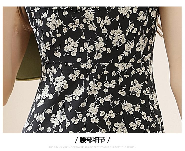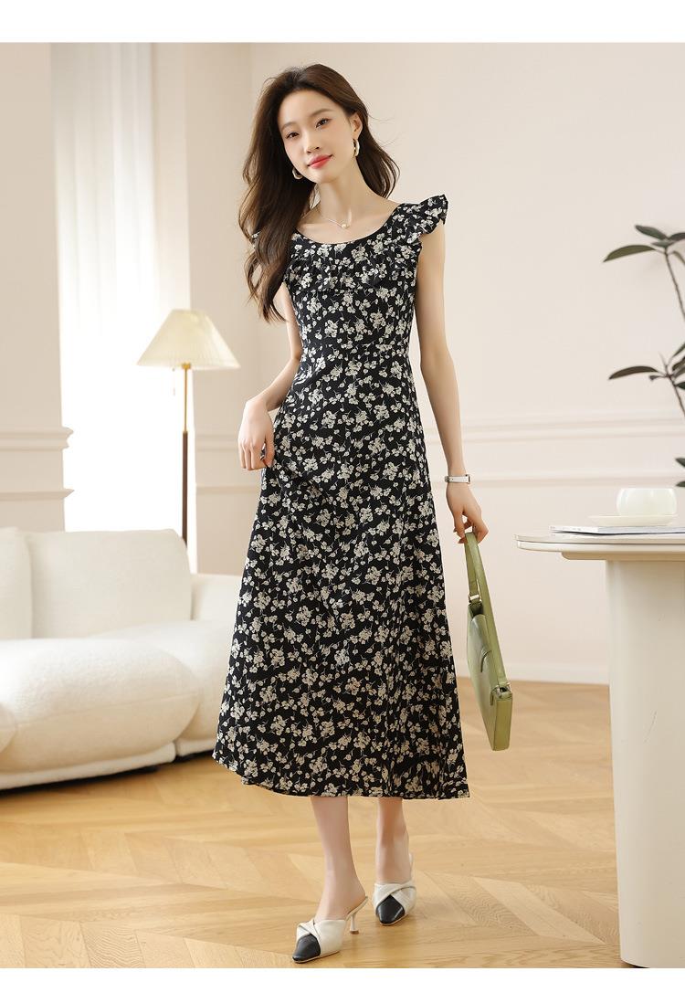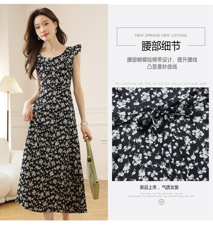 法式黑色碎花吊带小飞袖连衣裙子女夏季2024新款海边度假气质长裙