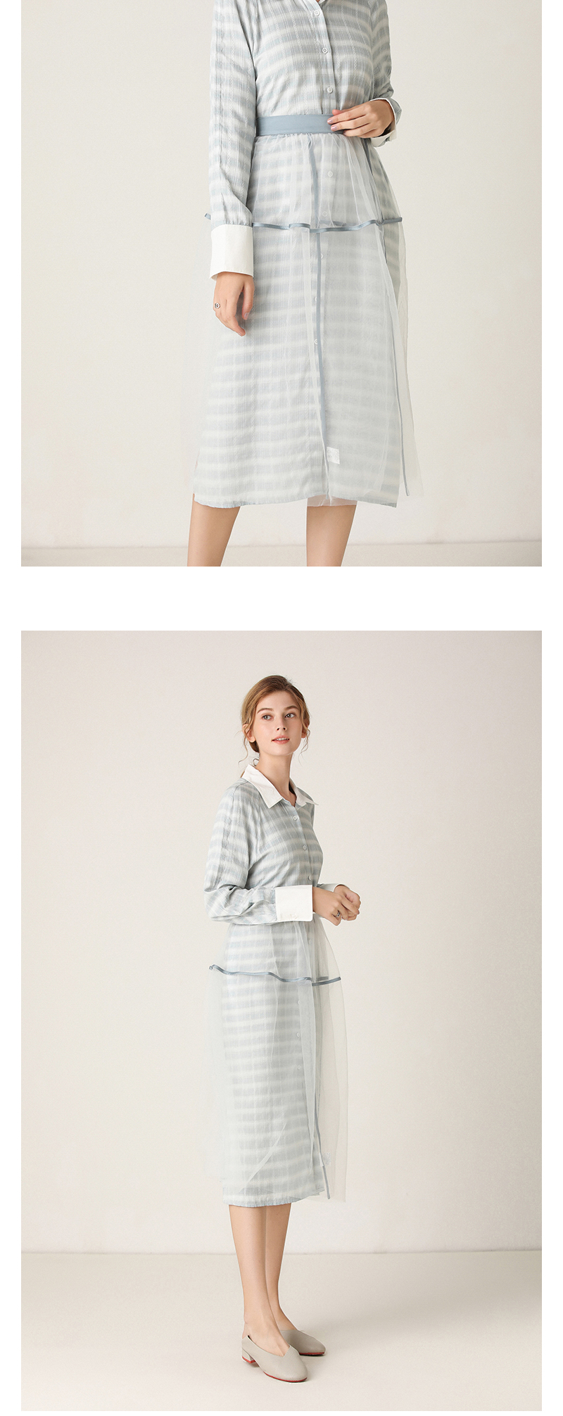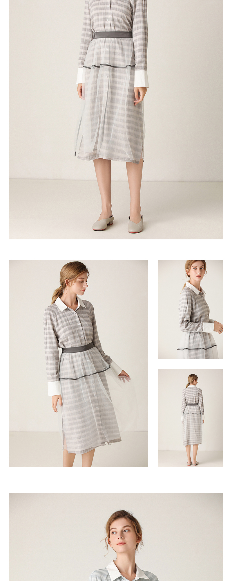 Famecoco范可儿连衣裙女格纹衬衫裙两件套F201EA006