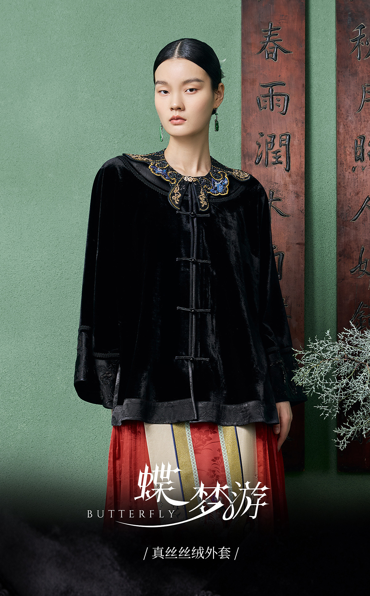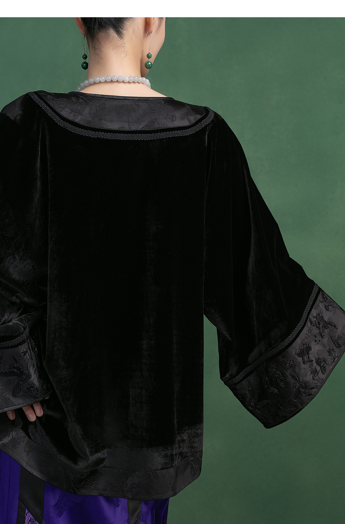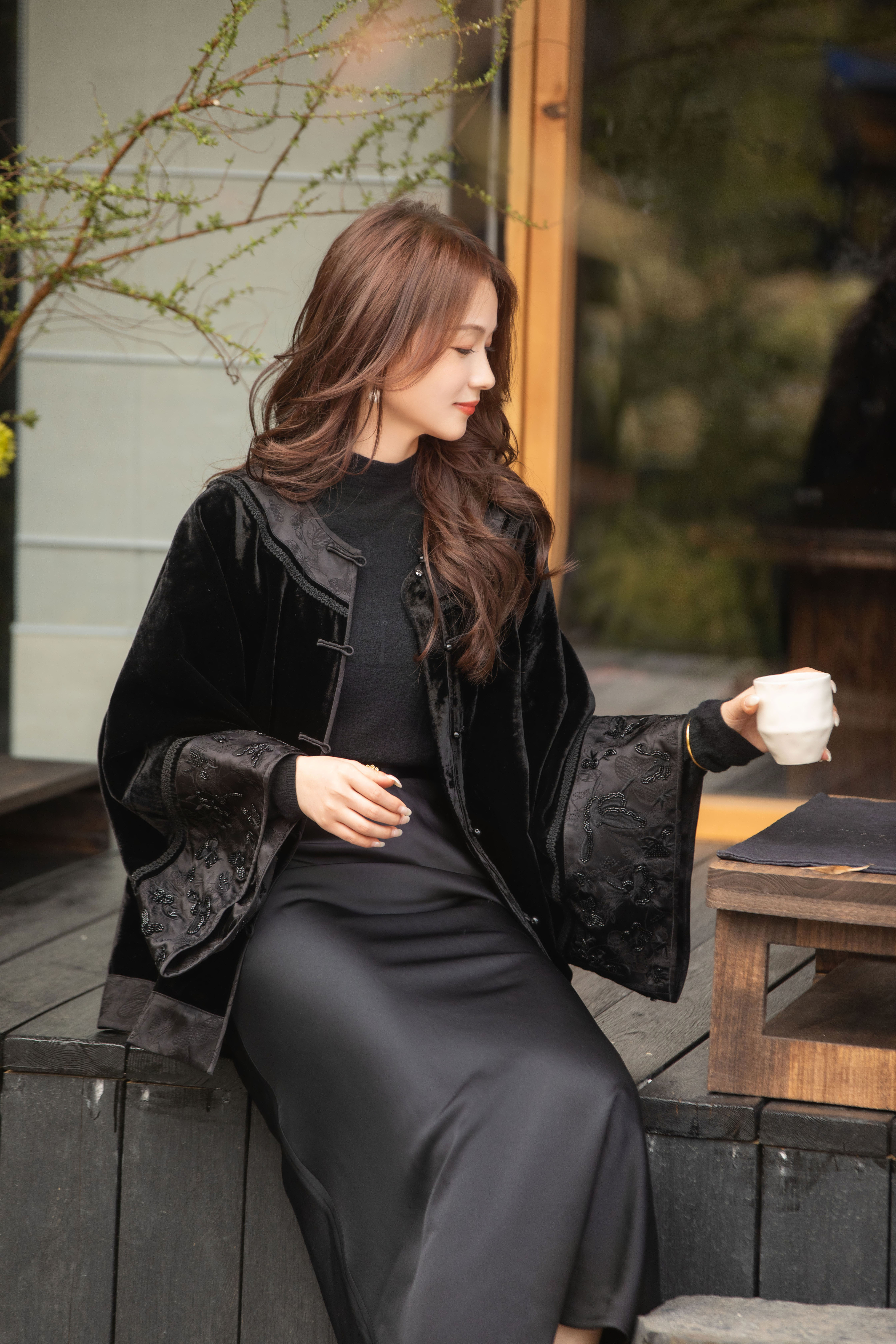 【林栖设计小店】真丝丝绒外套手工钉珠绣花新中式氅衣2025春季新品外套年服女1951148