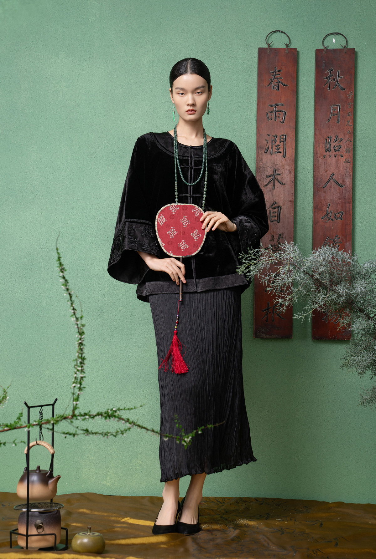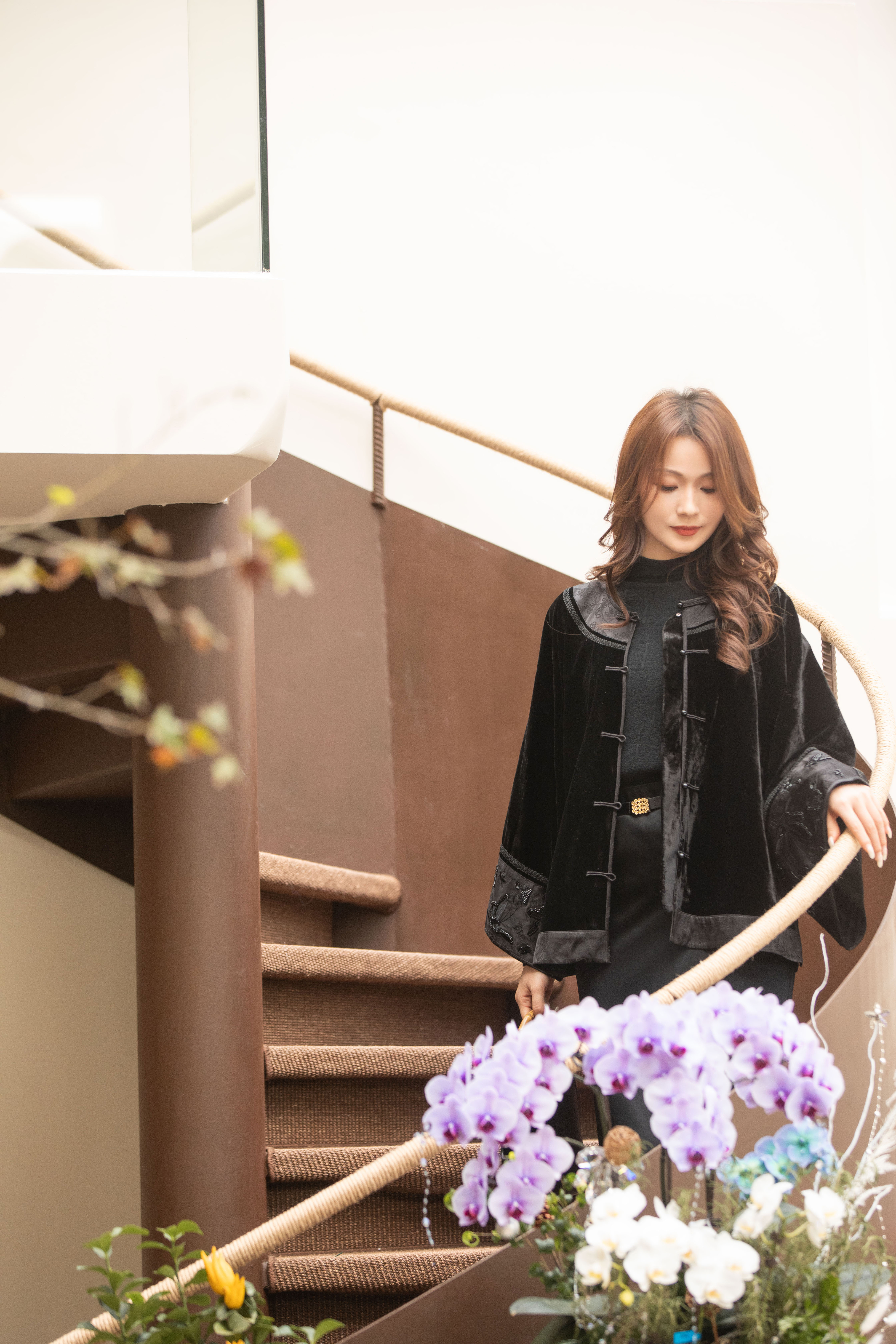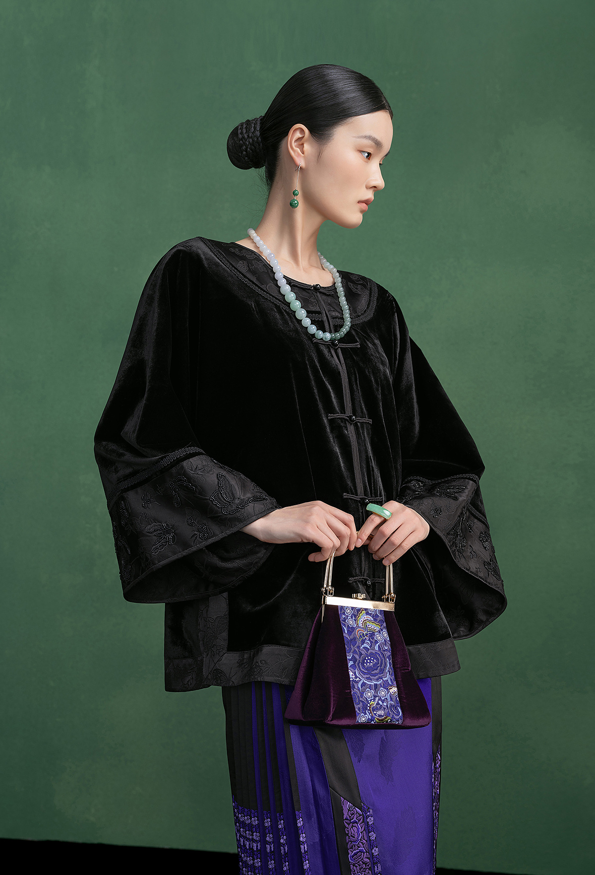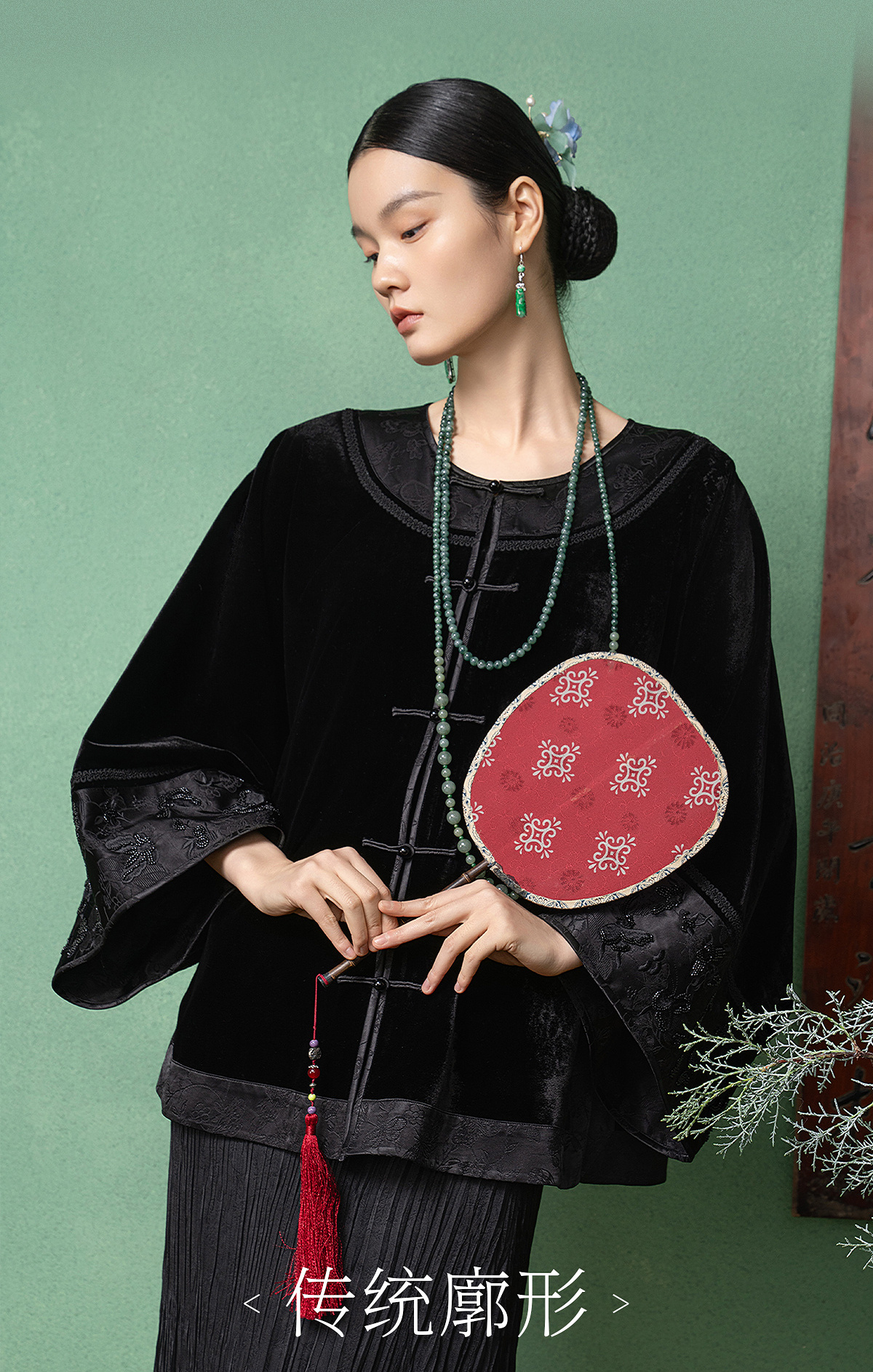 【林栖设计小店】真丝丝绒外套手工钉珠绣花新中式氅衣2025春季新品外套年服女1951148