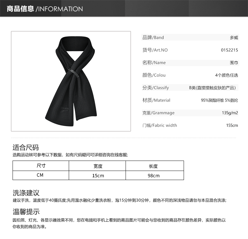多威秋冬亲肤保暖男女透气摇粒绒运动户外跑步围巾0152215