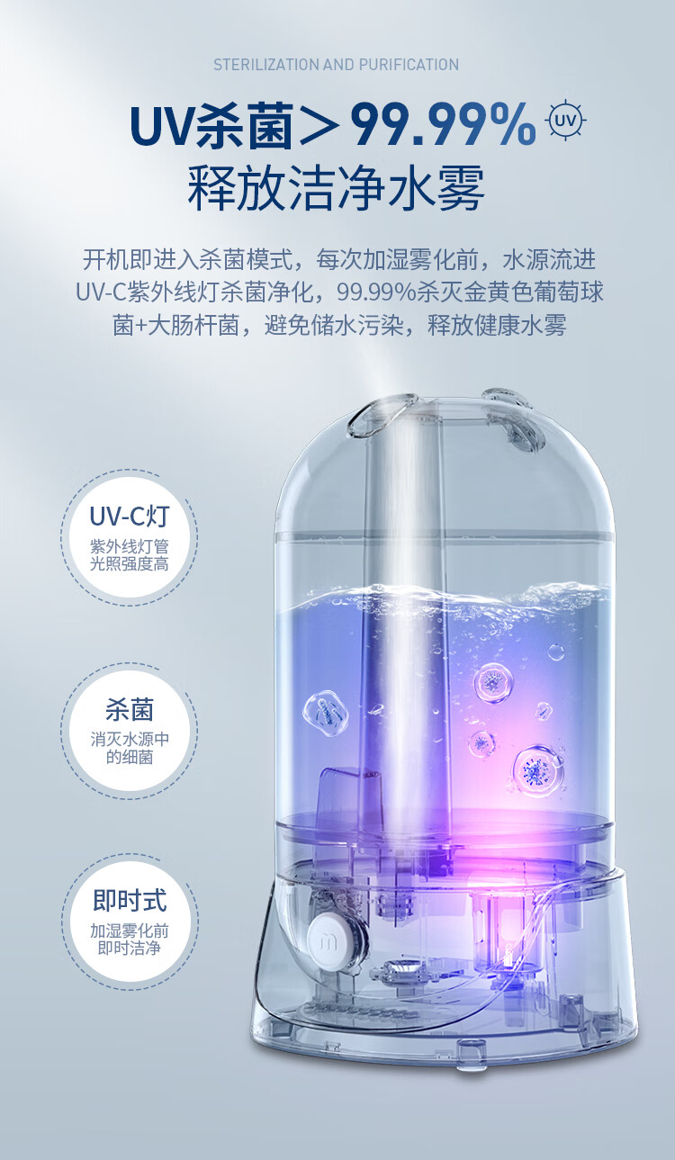 摩飞电器(Morphyrichards)除菌加湿器卧室家用办公室桌面 孕妇婴儿低噪大喷雾大容量空气加湿器MR2803