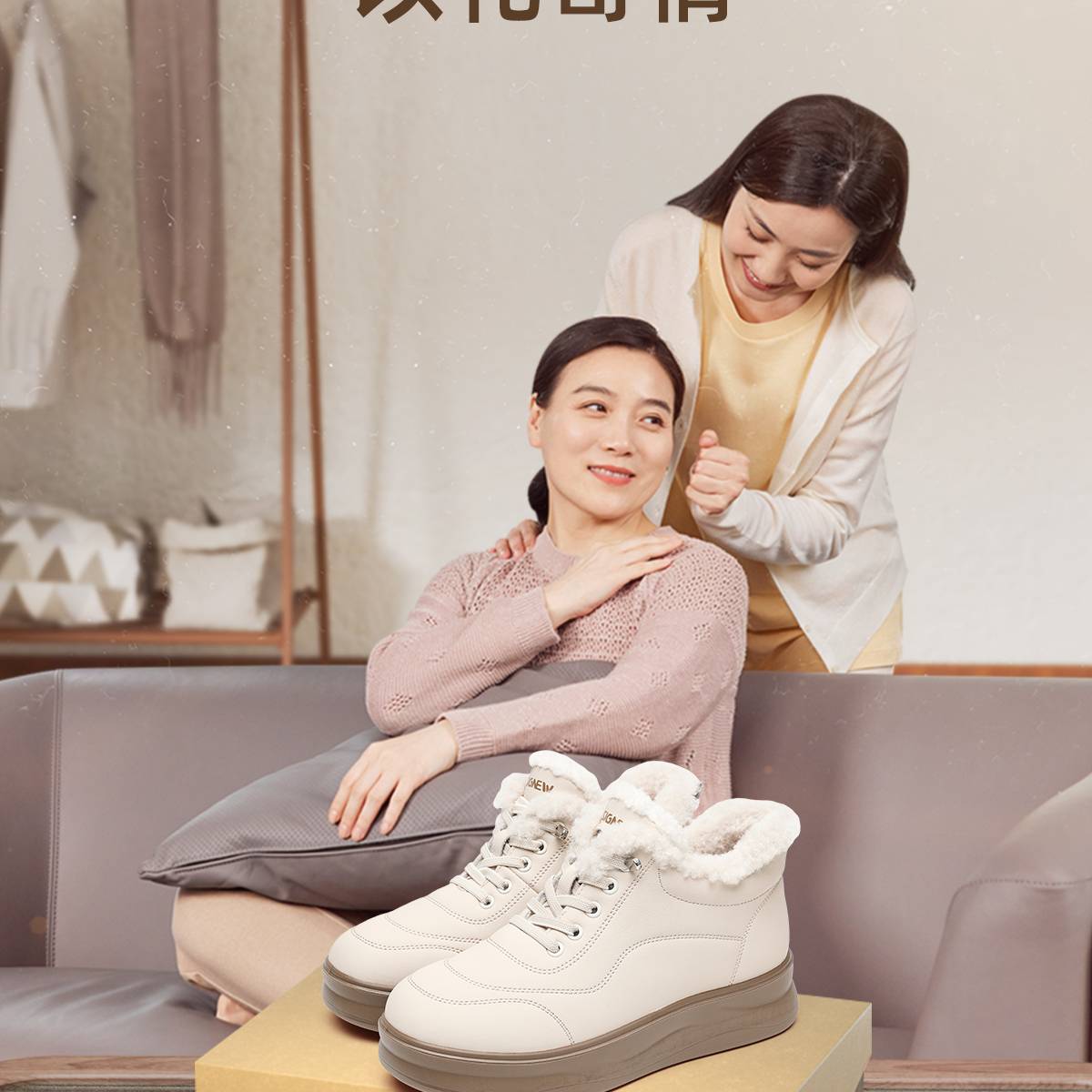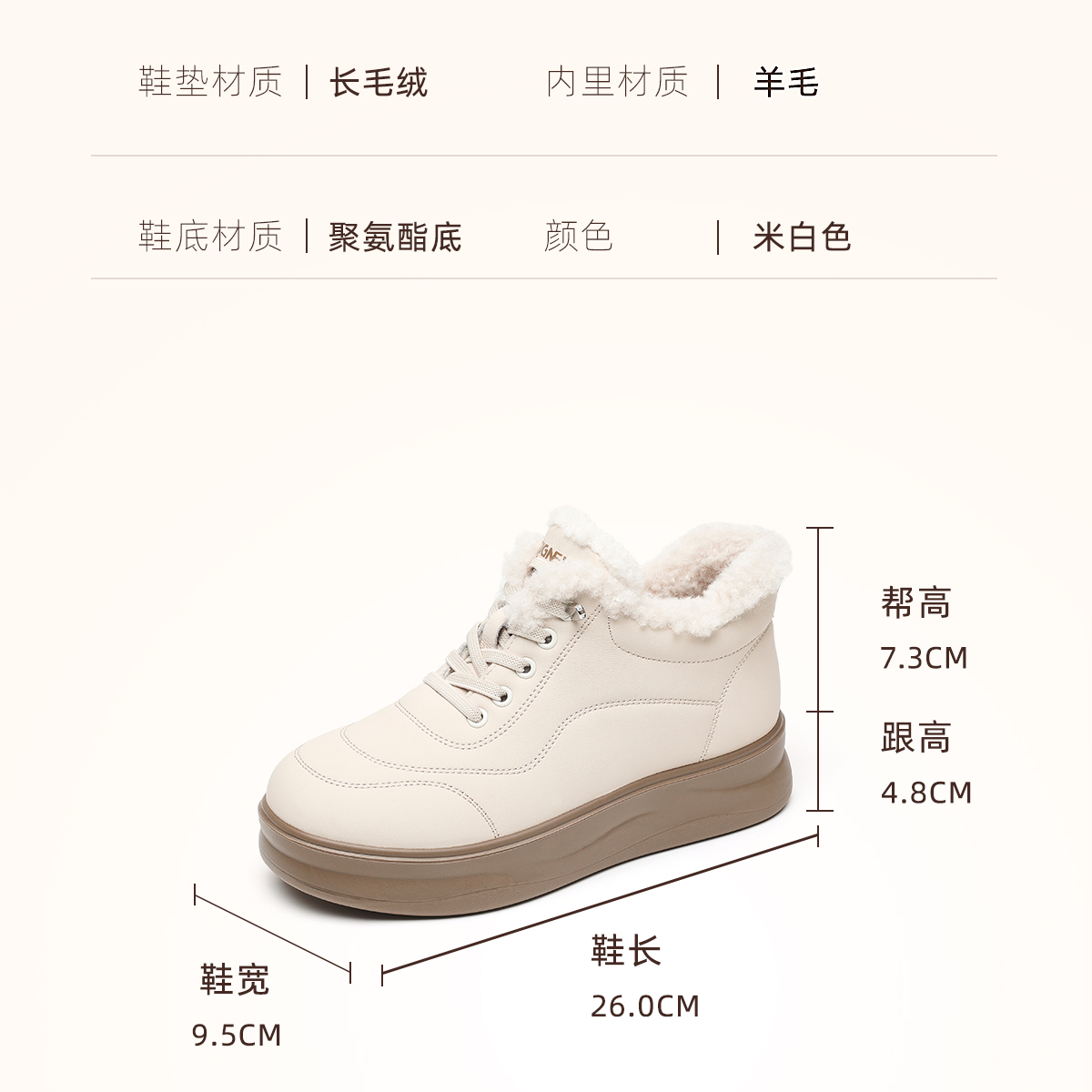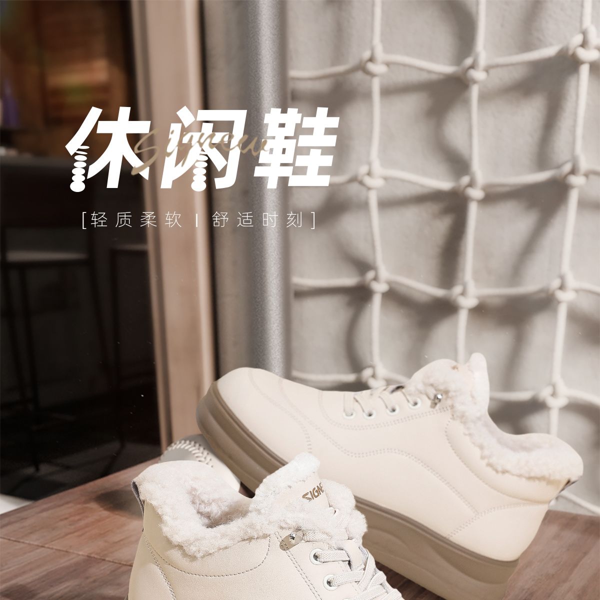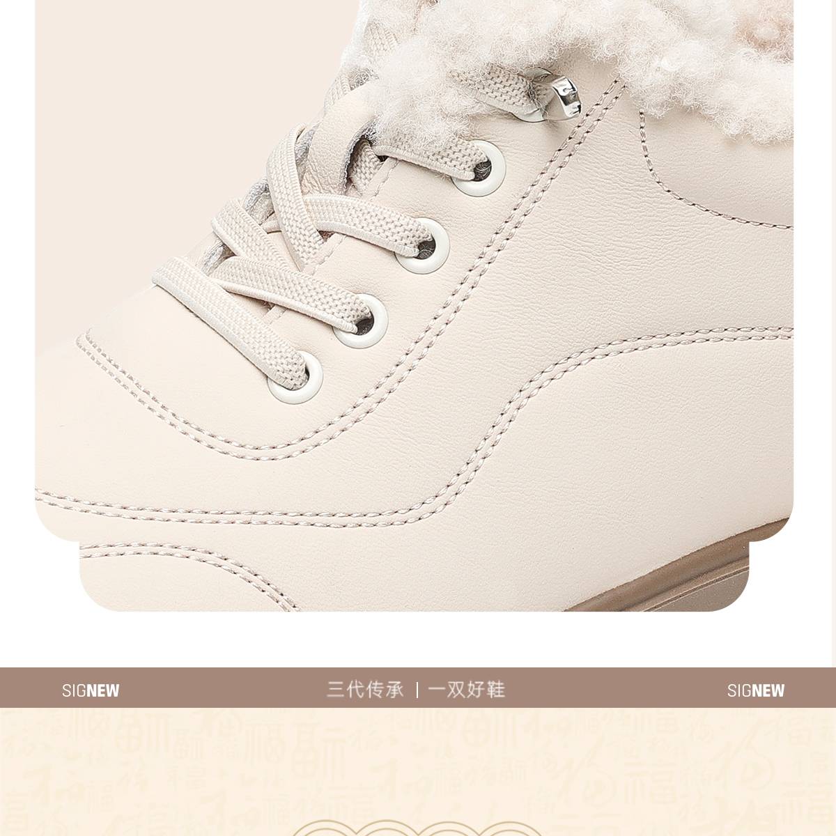 信诺加绒高帮鞋女厚底系带休闲鞋软底舒适棉鞋冬季保暖5M653-18TD