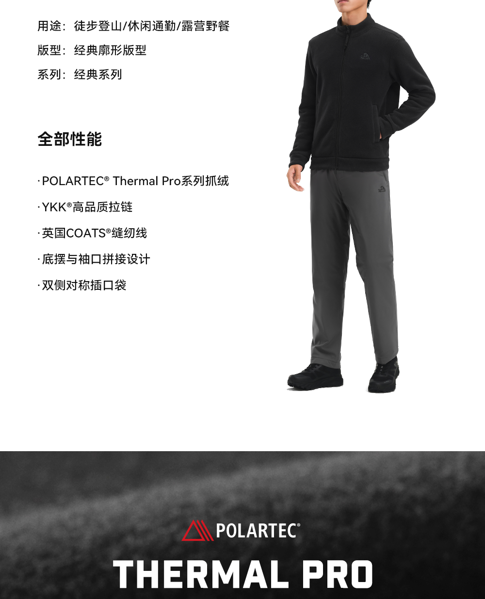 伯希和户外Polartec抓绒衣男新款轻盈保暖运动外套立领防风休闲衣