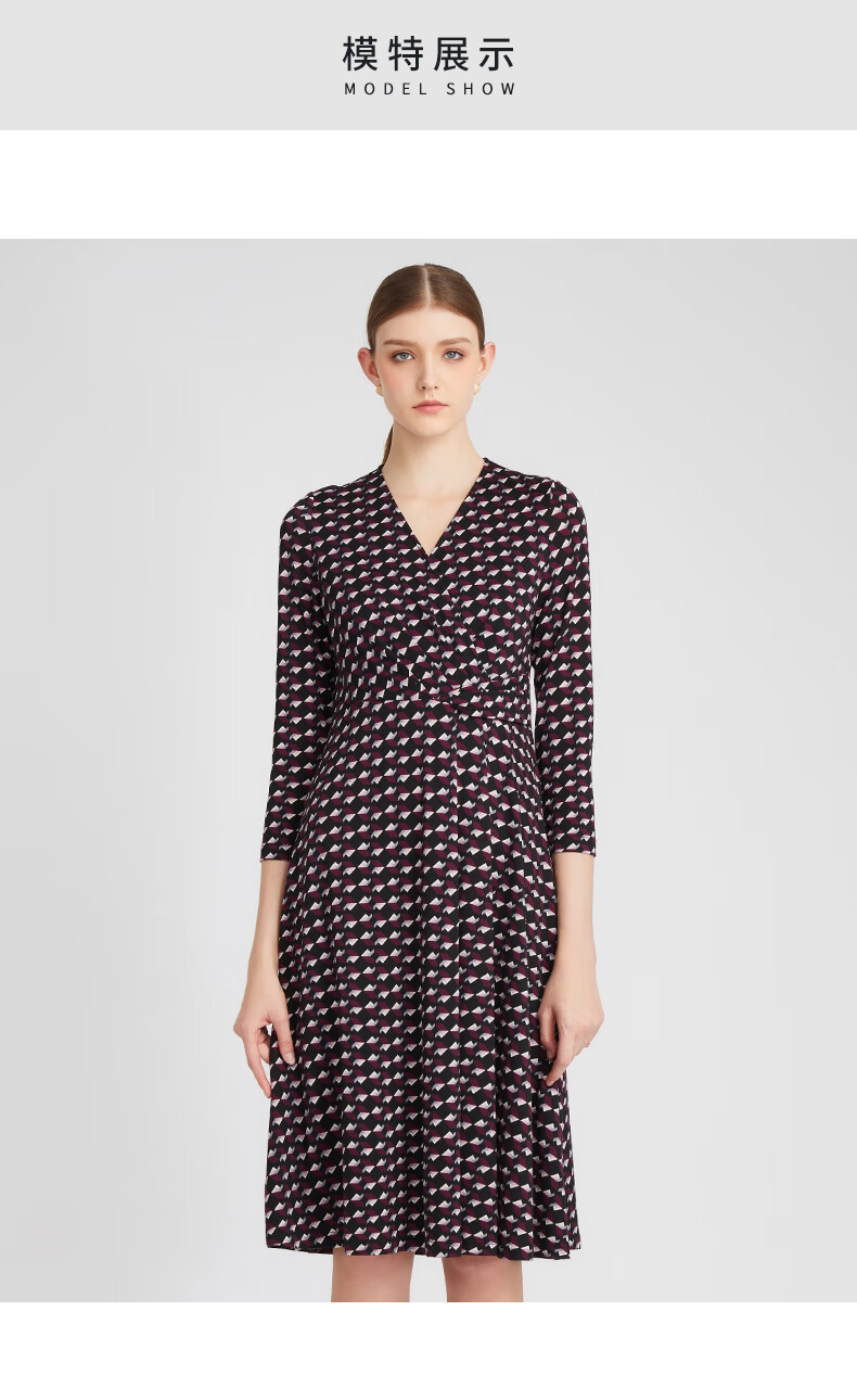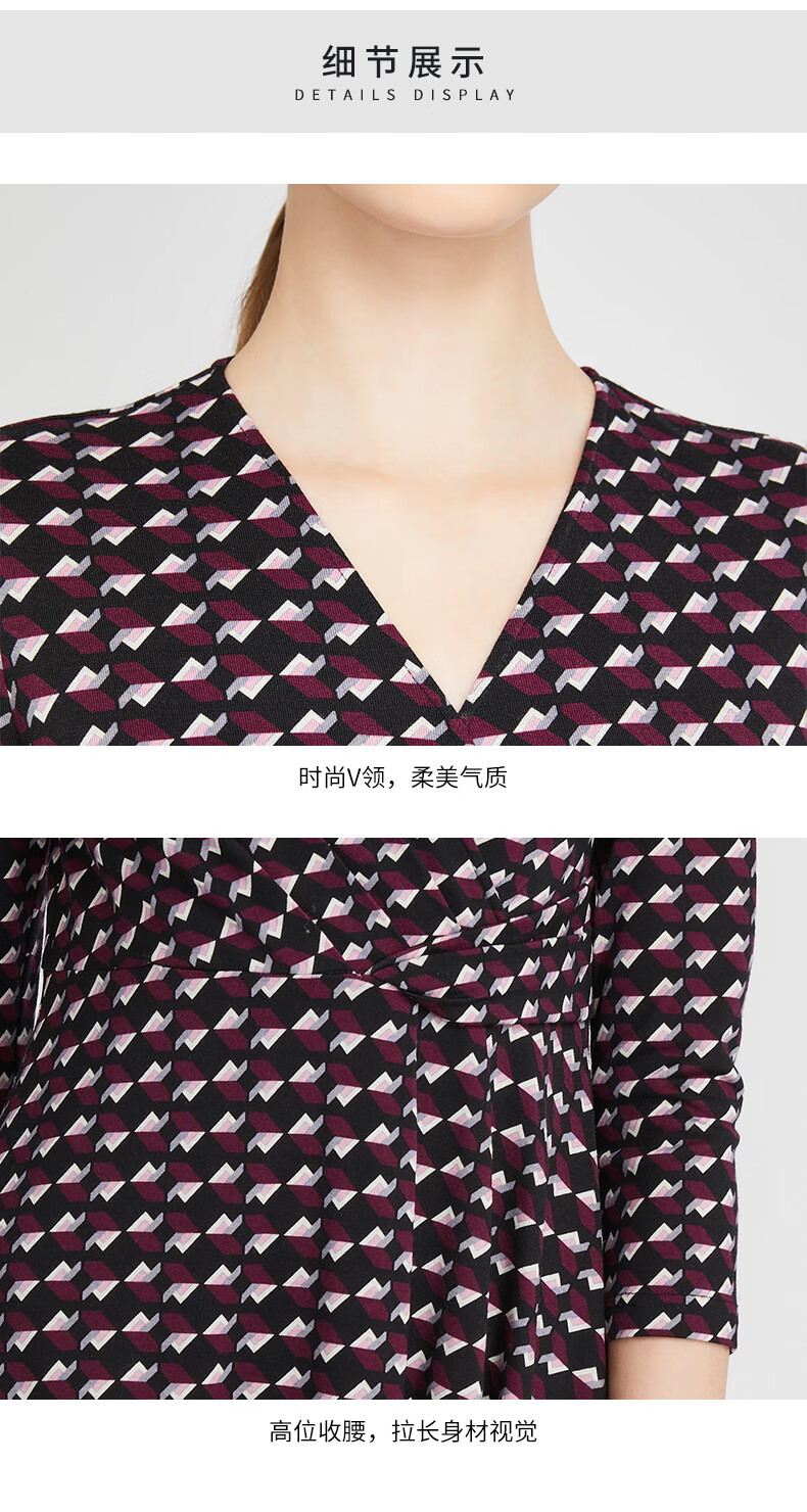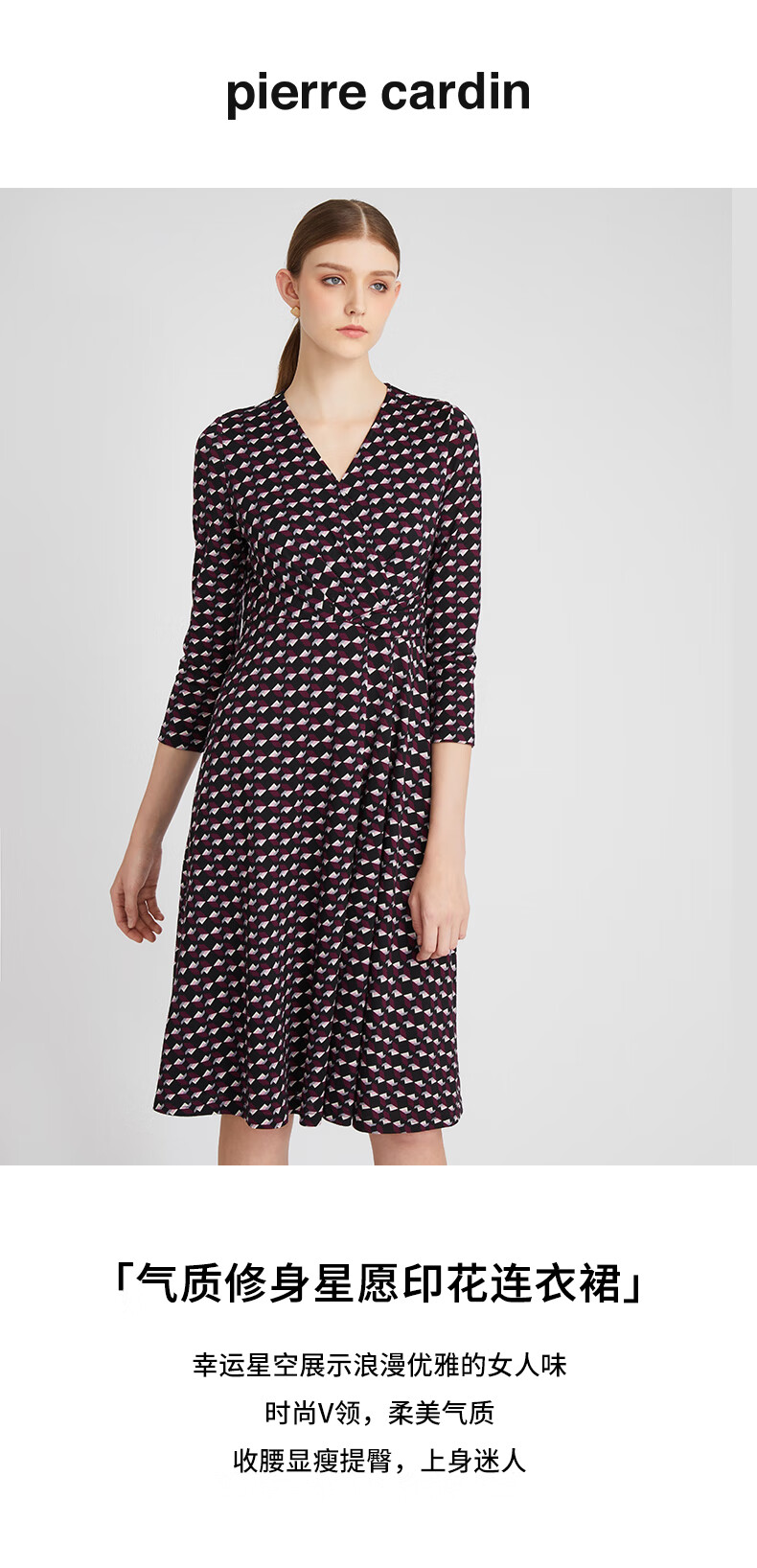 皮尔卡丹女装连衣裙时尚波点修身通勤收腰淑女连衣裙P2429E2841T3