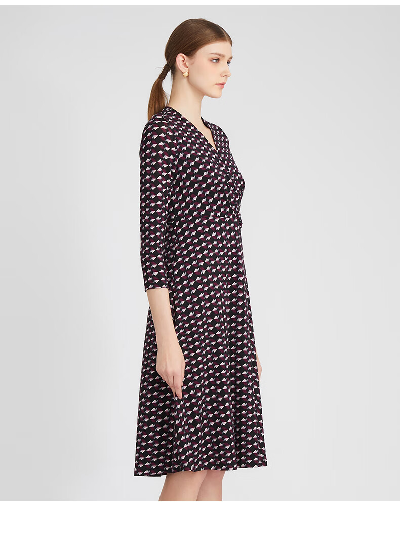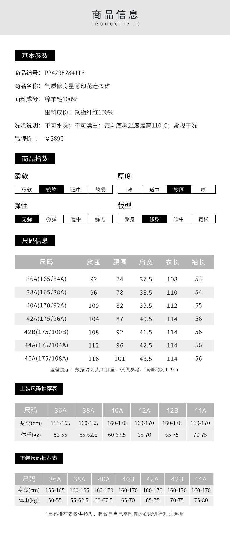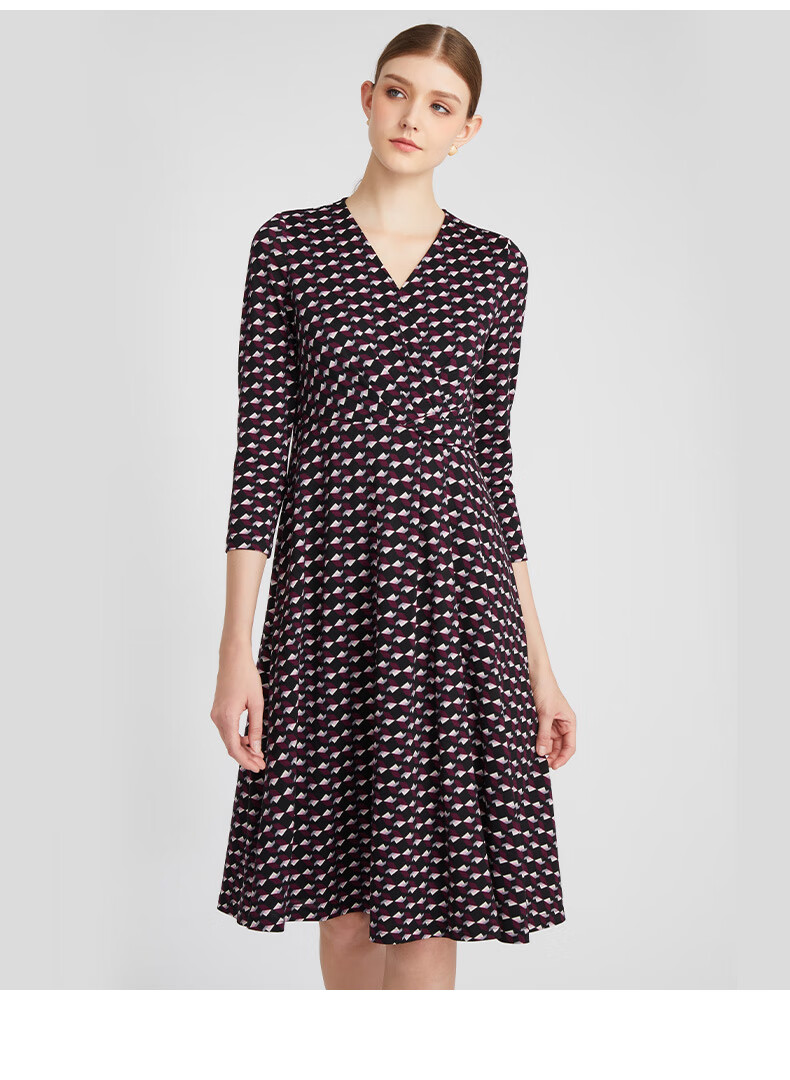 皮尔卡丹女装连衣裙时尚波点修身通勤收腰淑女连衣裙P2429E2841T3
