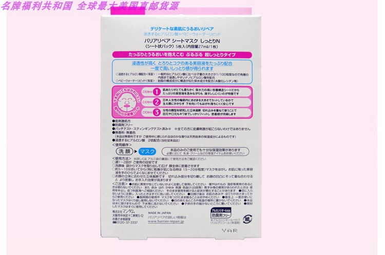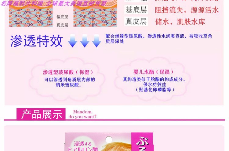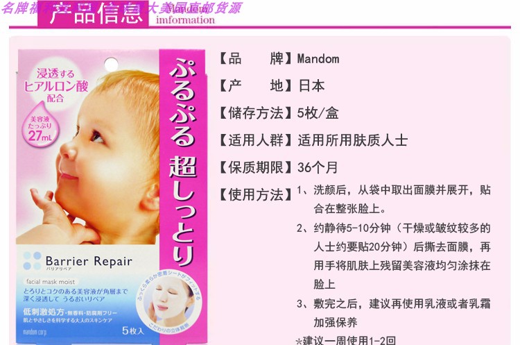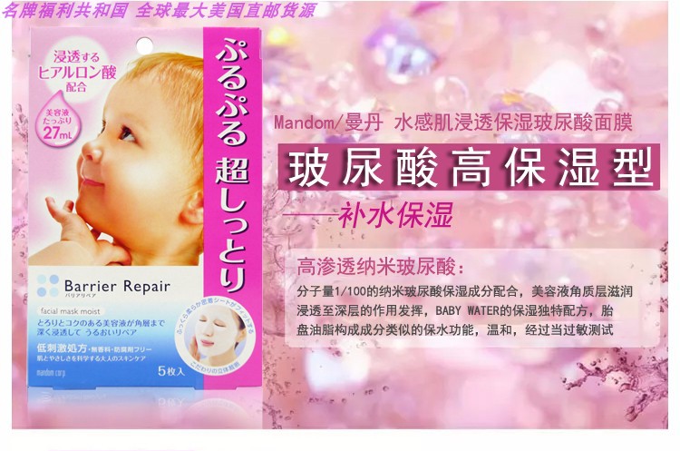 MANDOM/曼丹 16版超滋润玻尿酸面膜 5片 粉色JPY带授权招加盟代理
