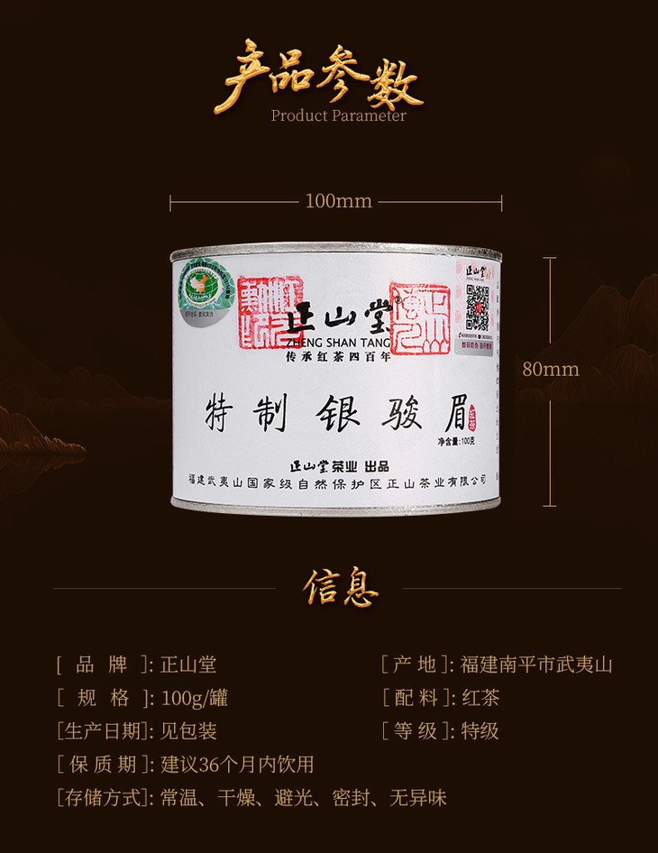 正山堂 银骏眉 正山小种红茶 罐装100g