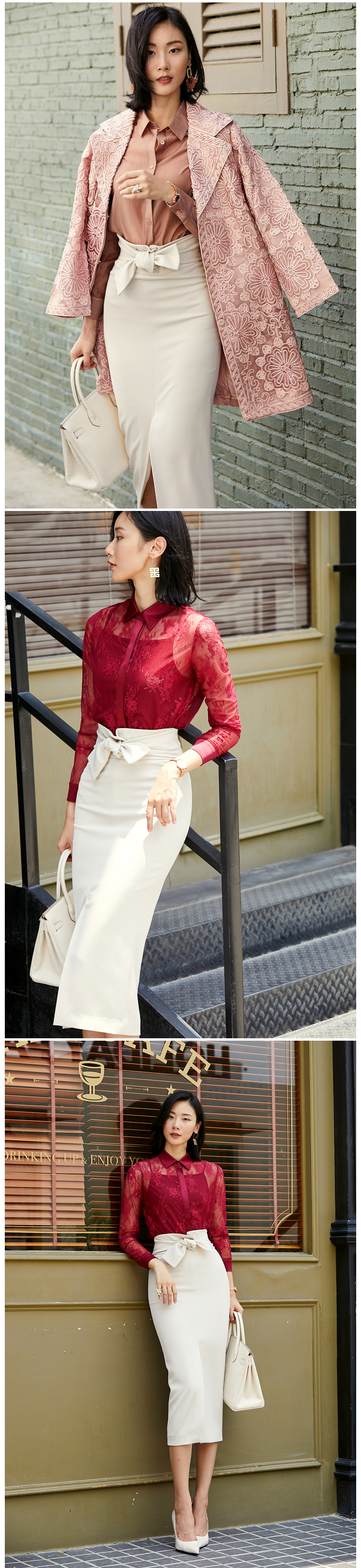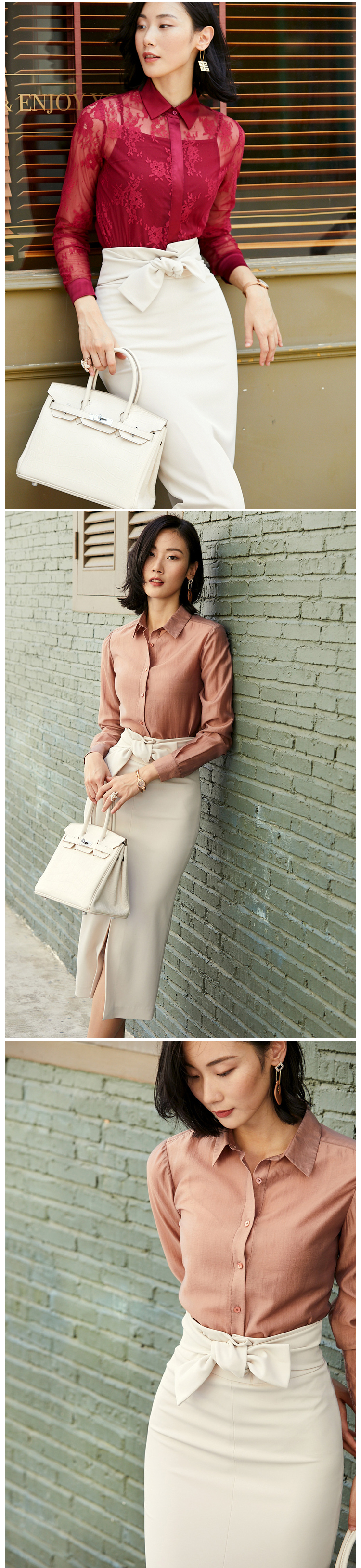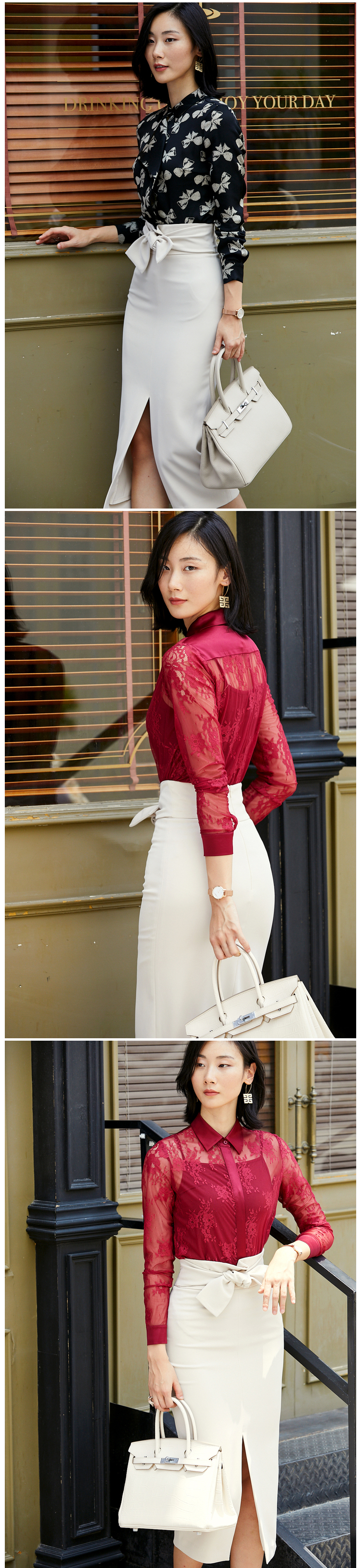 我们的产品:全网最具“质价比”的精英女装,只为有场合的“三高”女性打造,高知,高姿,高资。