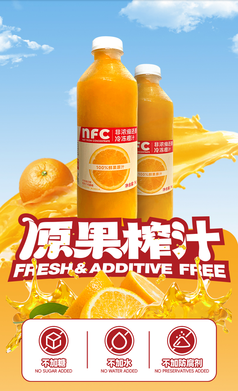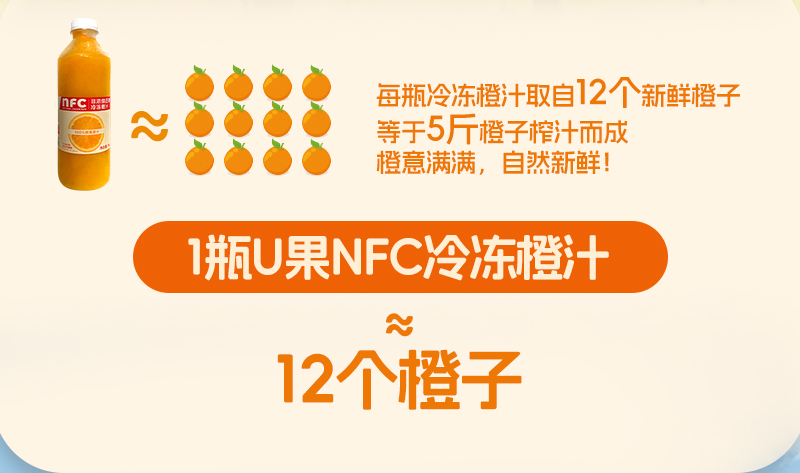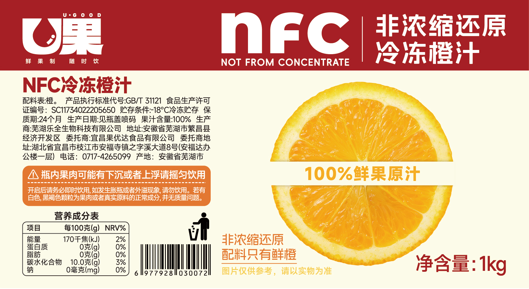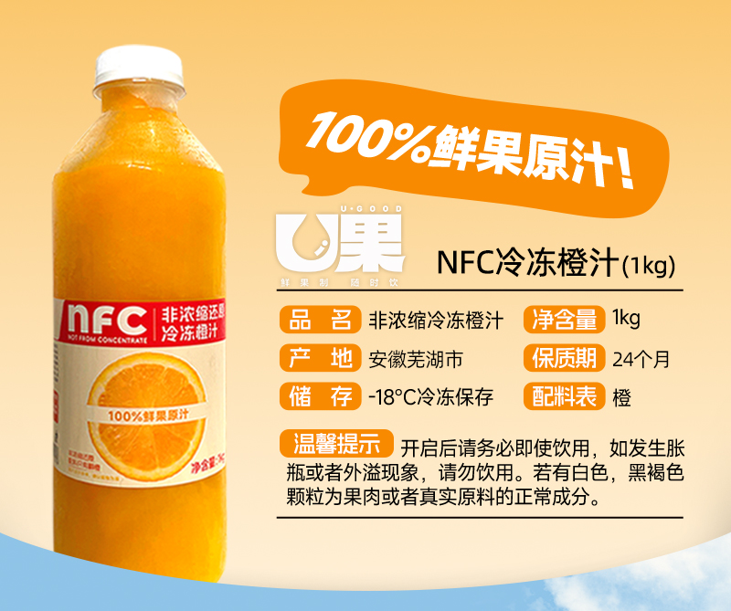 U果NFC冷冻橙汁1kg 橙C美式咖啡商用鲜榨橙汁原浆奶茶店专用原料美名氏