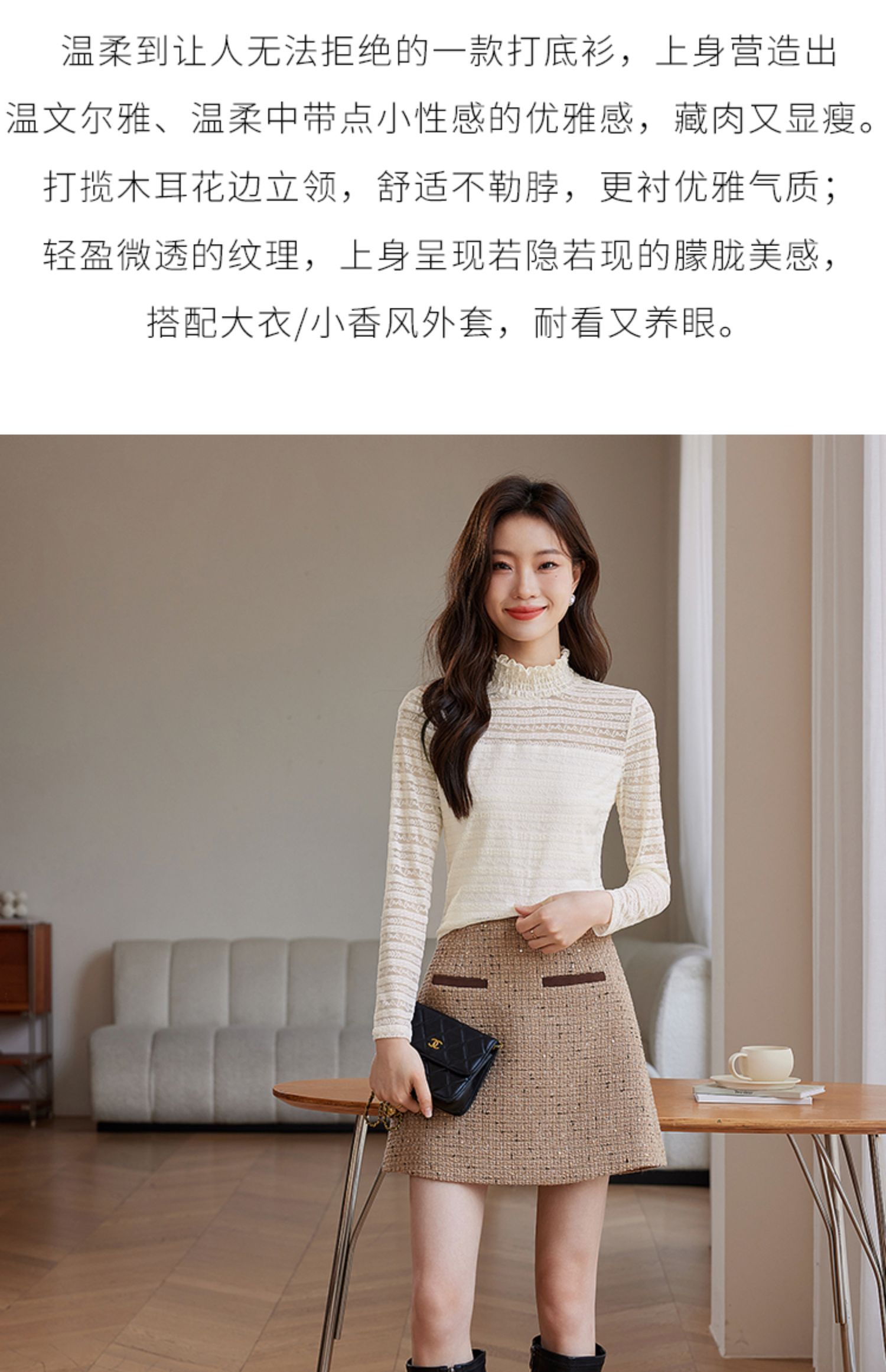 【49元福袋不支持退换】熙世界镂空立领蕾丝衫秋冬内搭2025新款设计感洋气打底上衣小衫