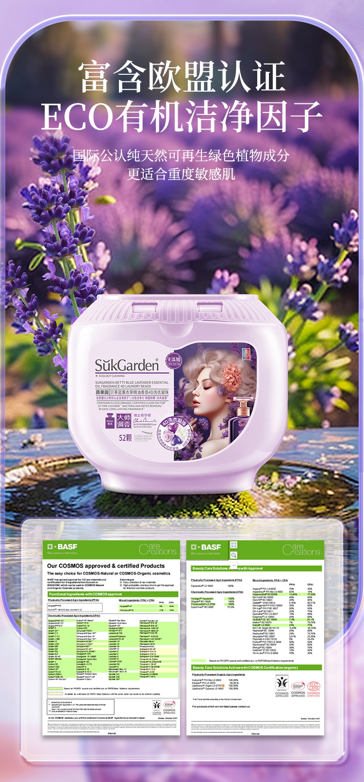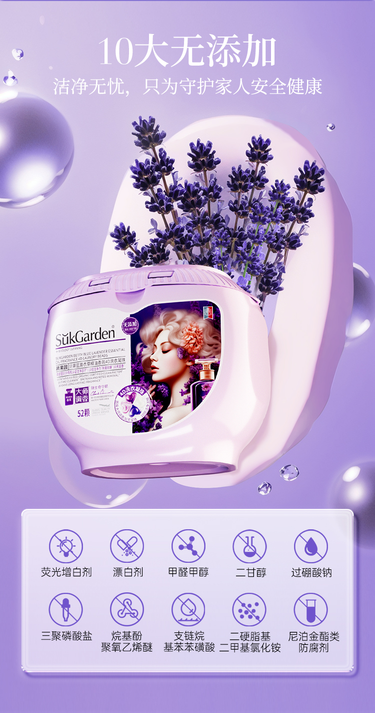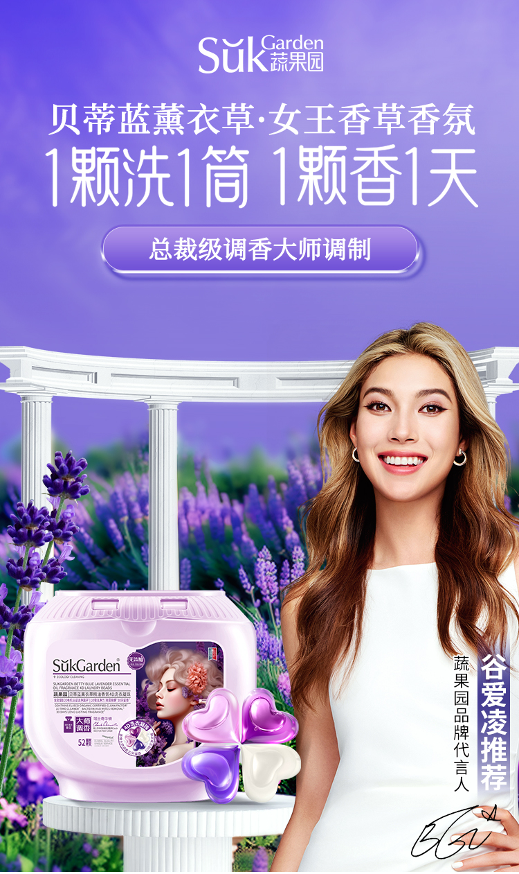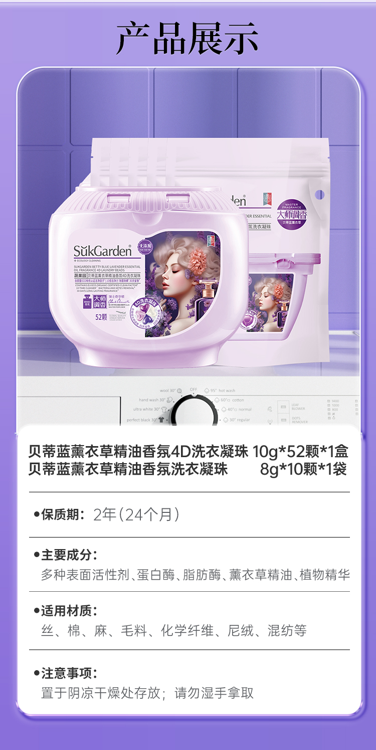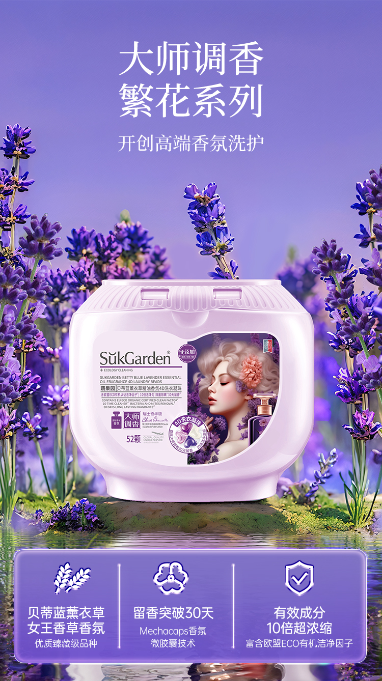 蔬果园贝蒂蓝薰衣草香氛4D洗衣凝珠(浓缩强效型)-10g*52颗*1盒+蔬果园贝蒂蓝薰衣草香水洗衣凝珠-8g*10颗(袋装)*5袋