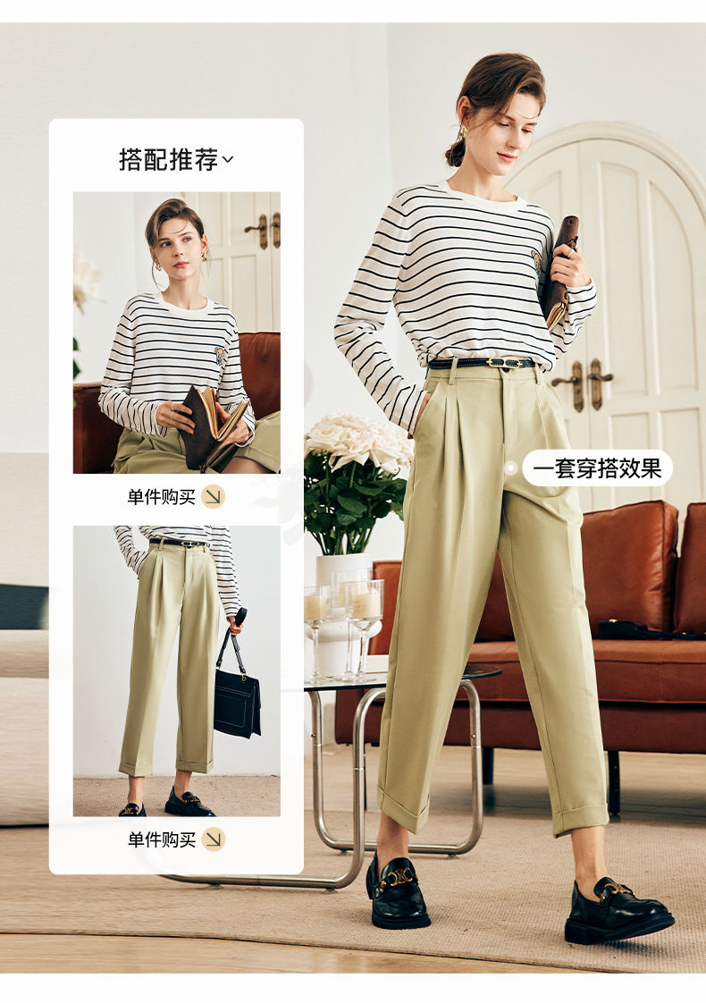 欧芮儿2025年新款春季圆领上衣撞色条纹口袋刺绣休闲简约长袖T恤