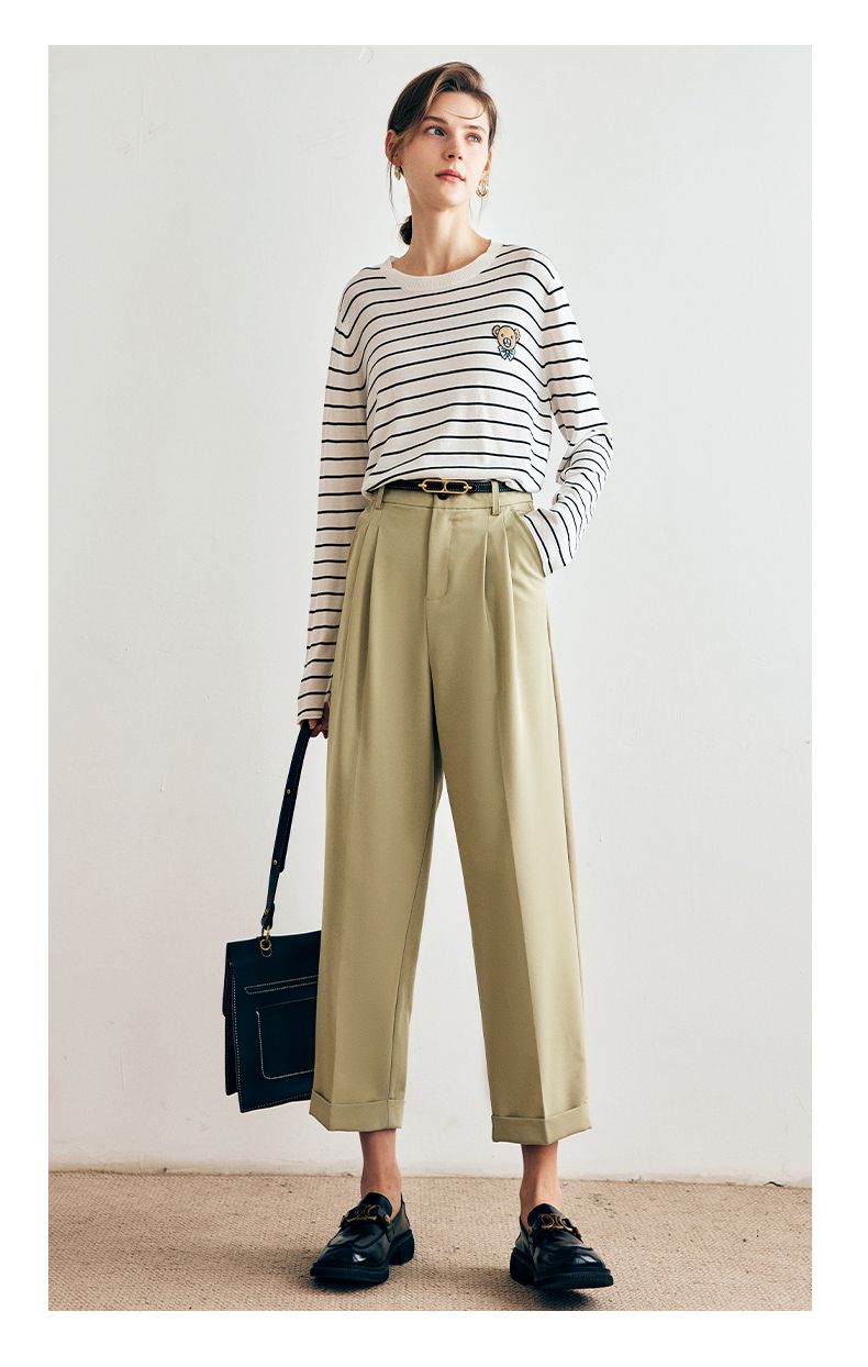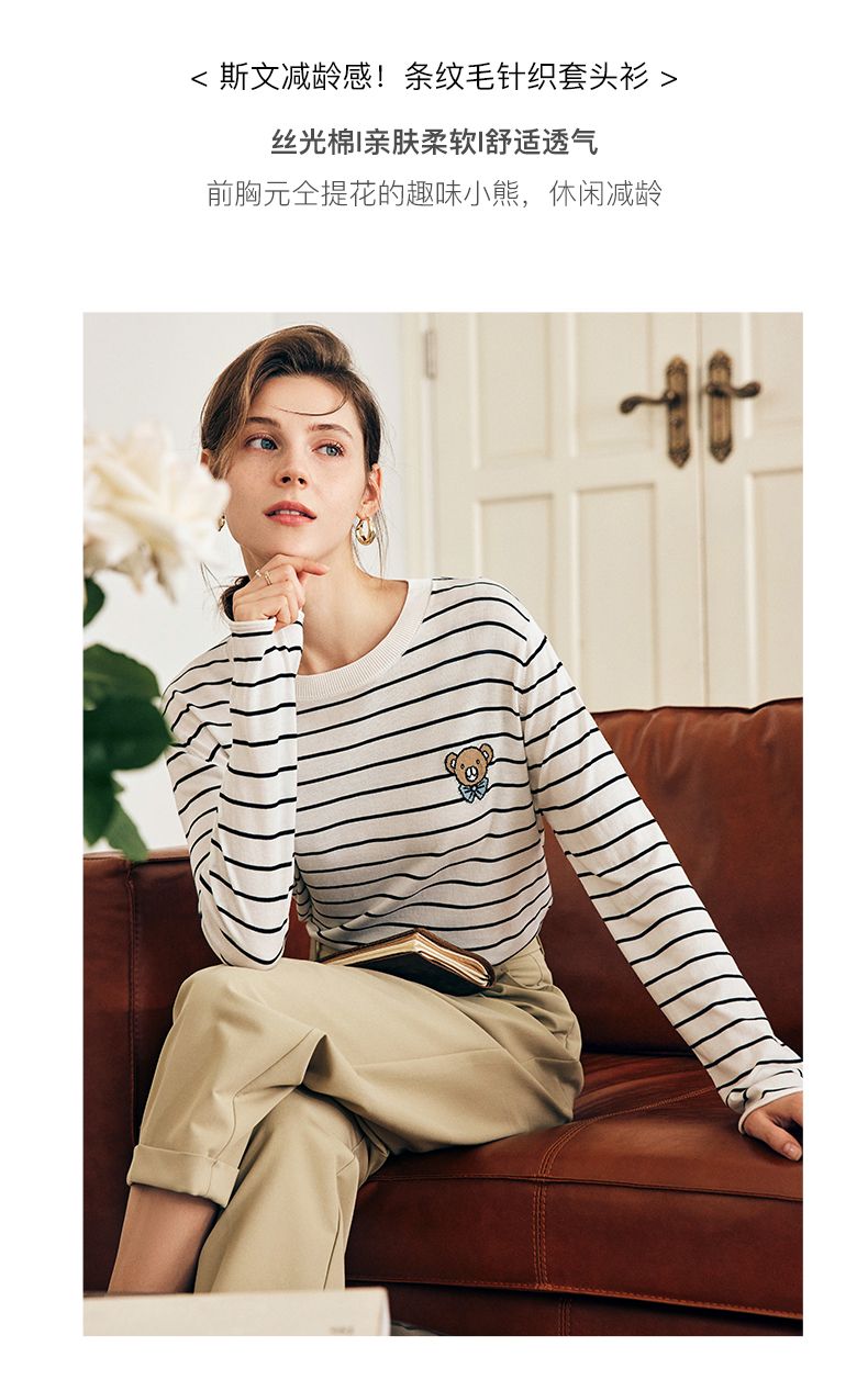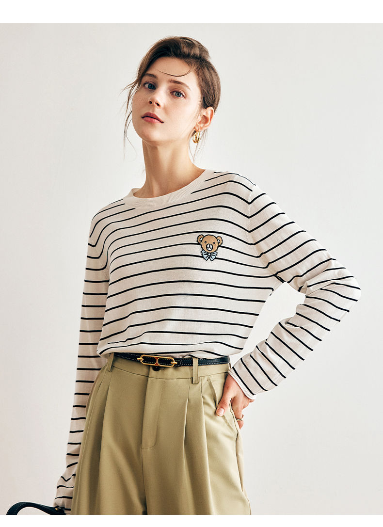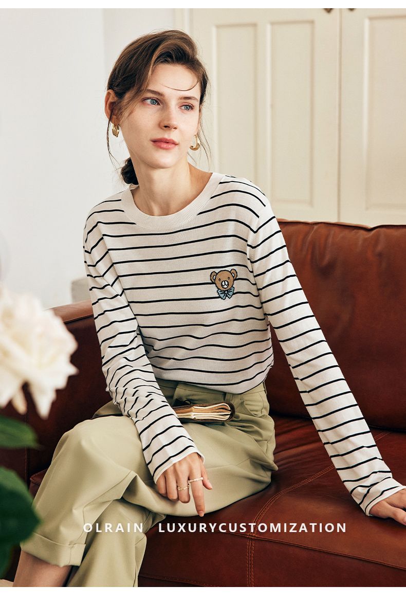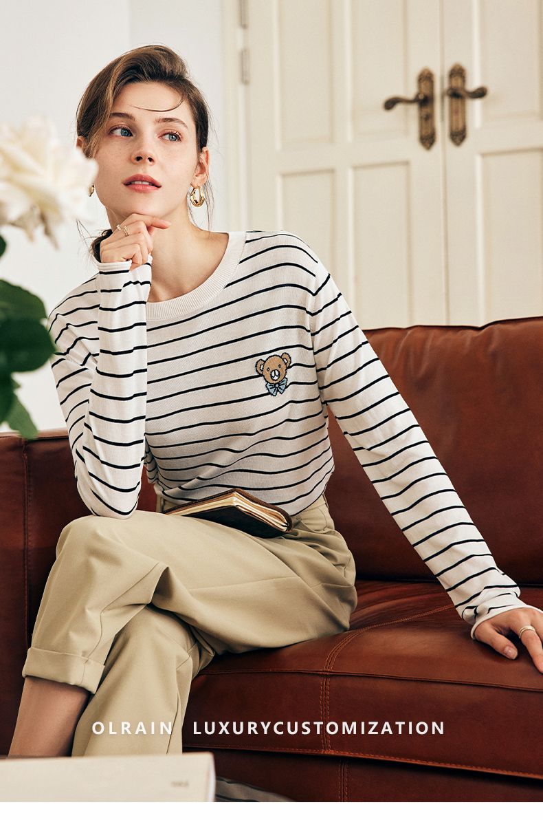 OLrain欧芮儿法式条纹针织衫女早春2023年新款宽松打底上衣