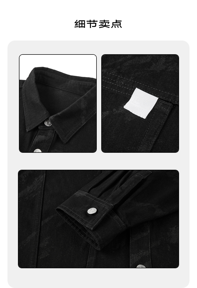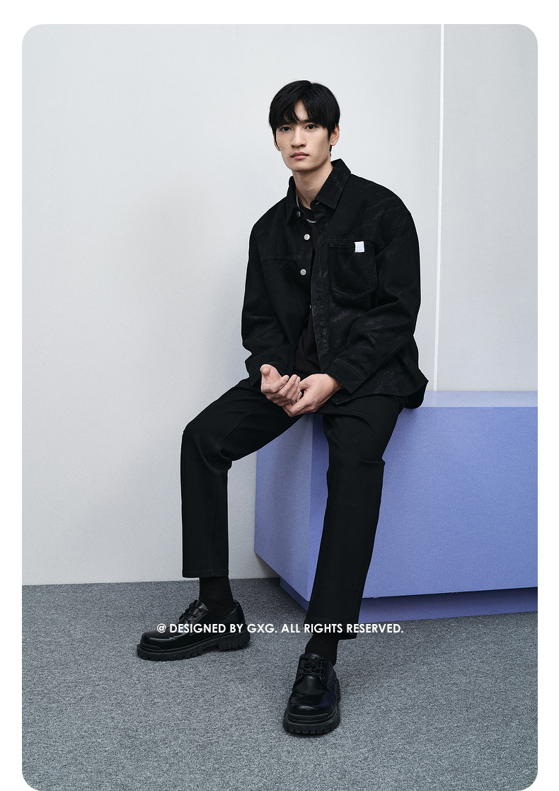 GXG男装 黑色激光烧花牛仔衬衫 热卖GFX1E900571