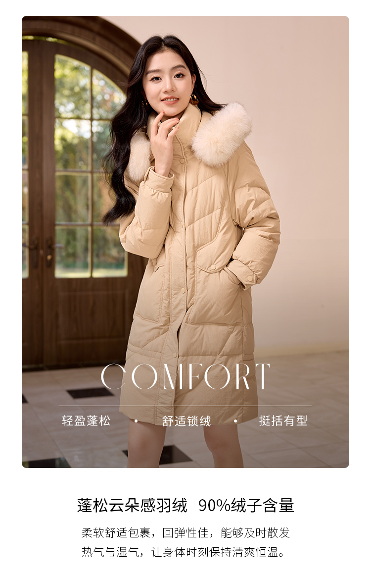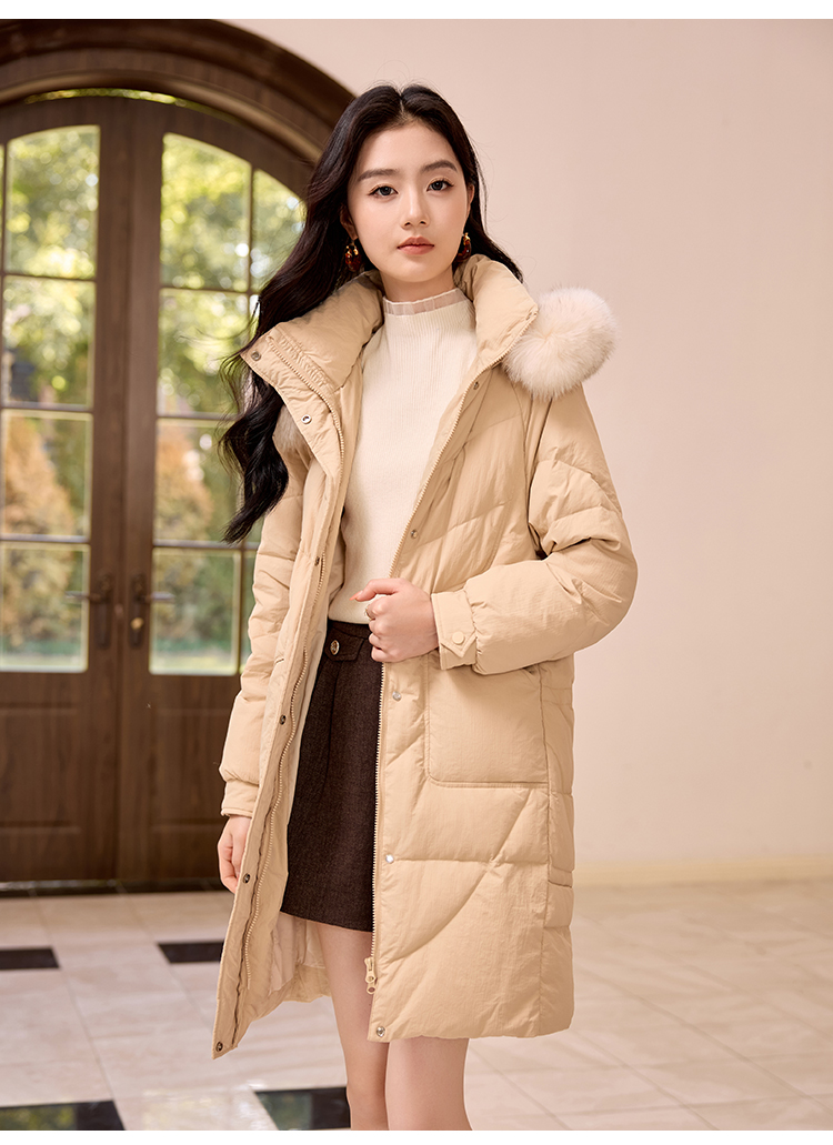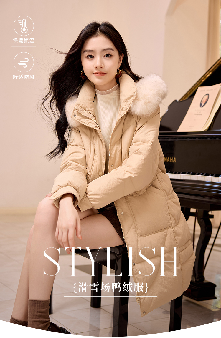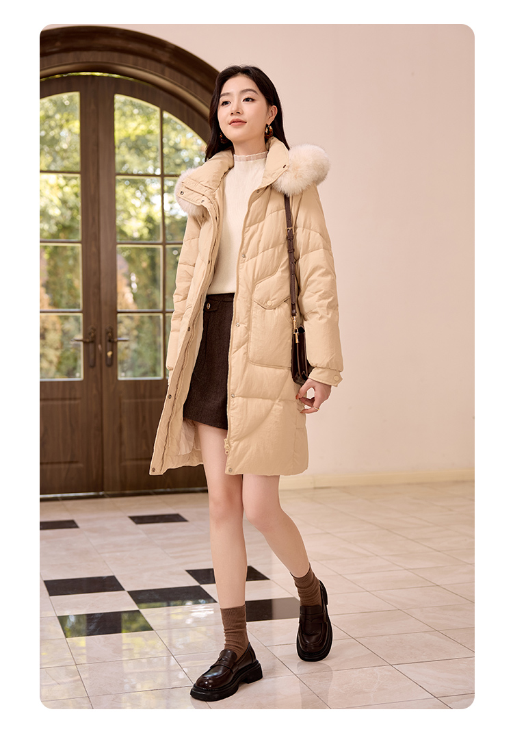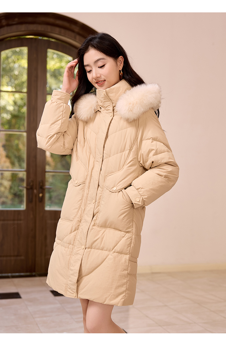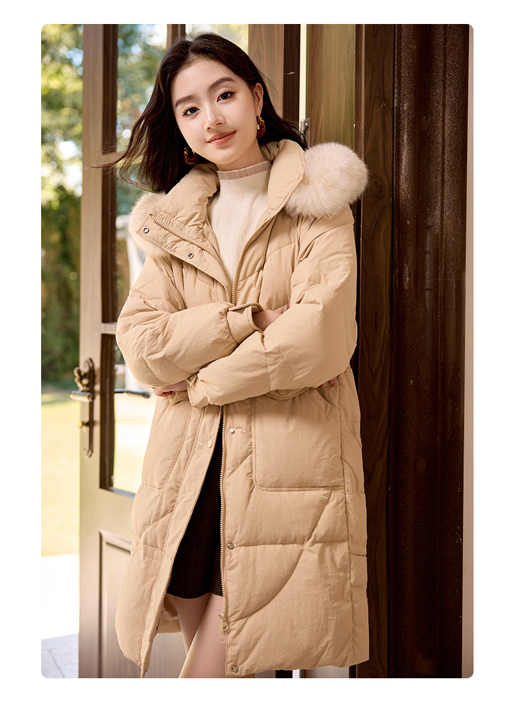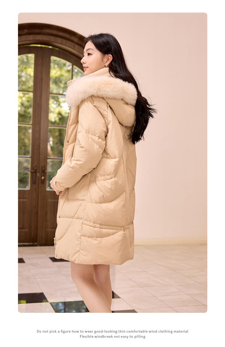 【年终特卖】熙世界狐狸大毛领羽绒服中长款高级感保暖连帽冬季外套2025新款