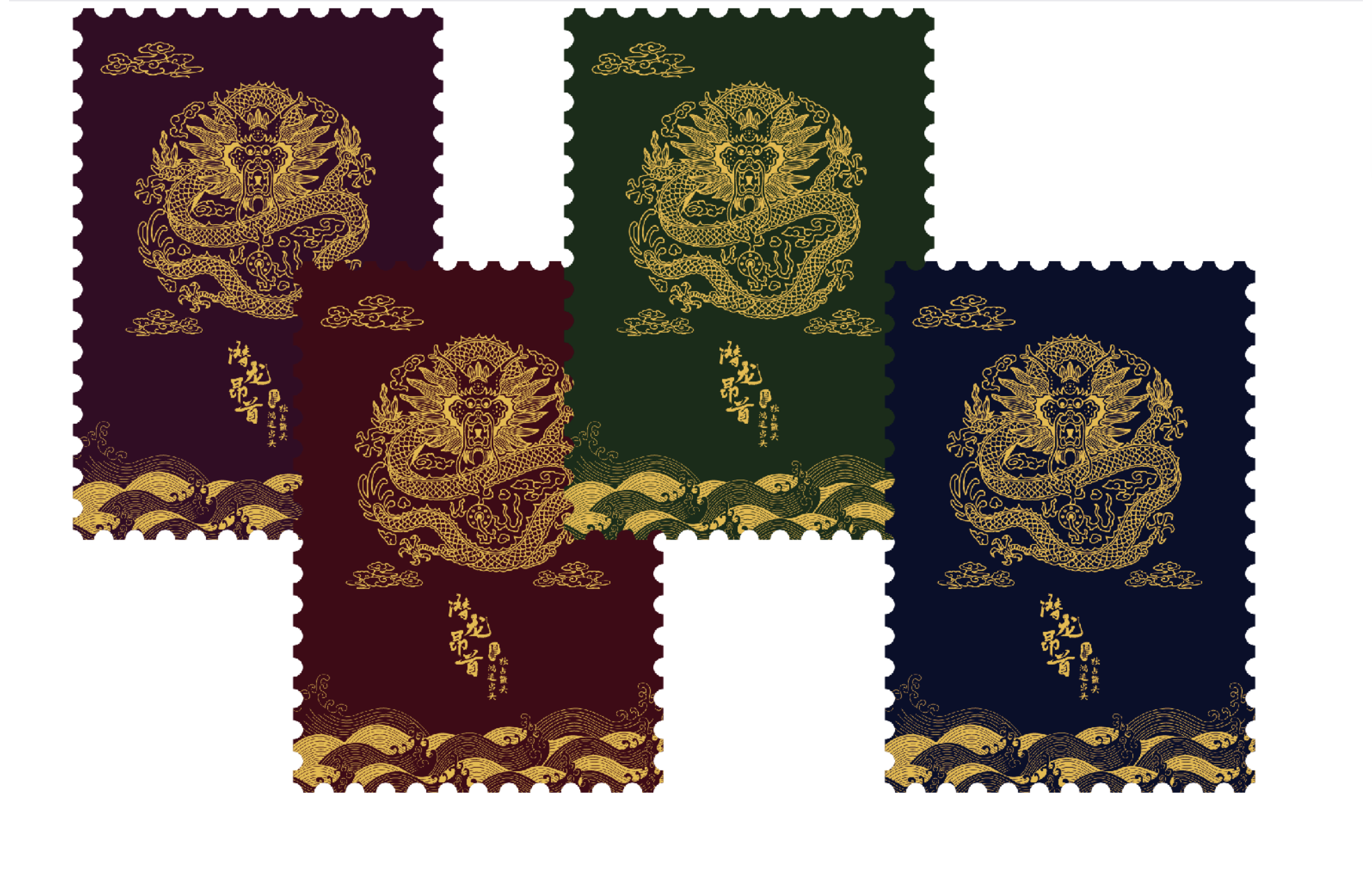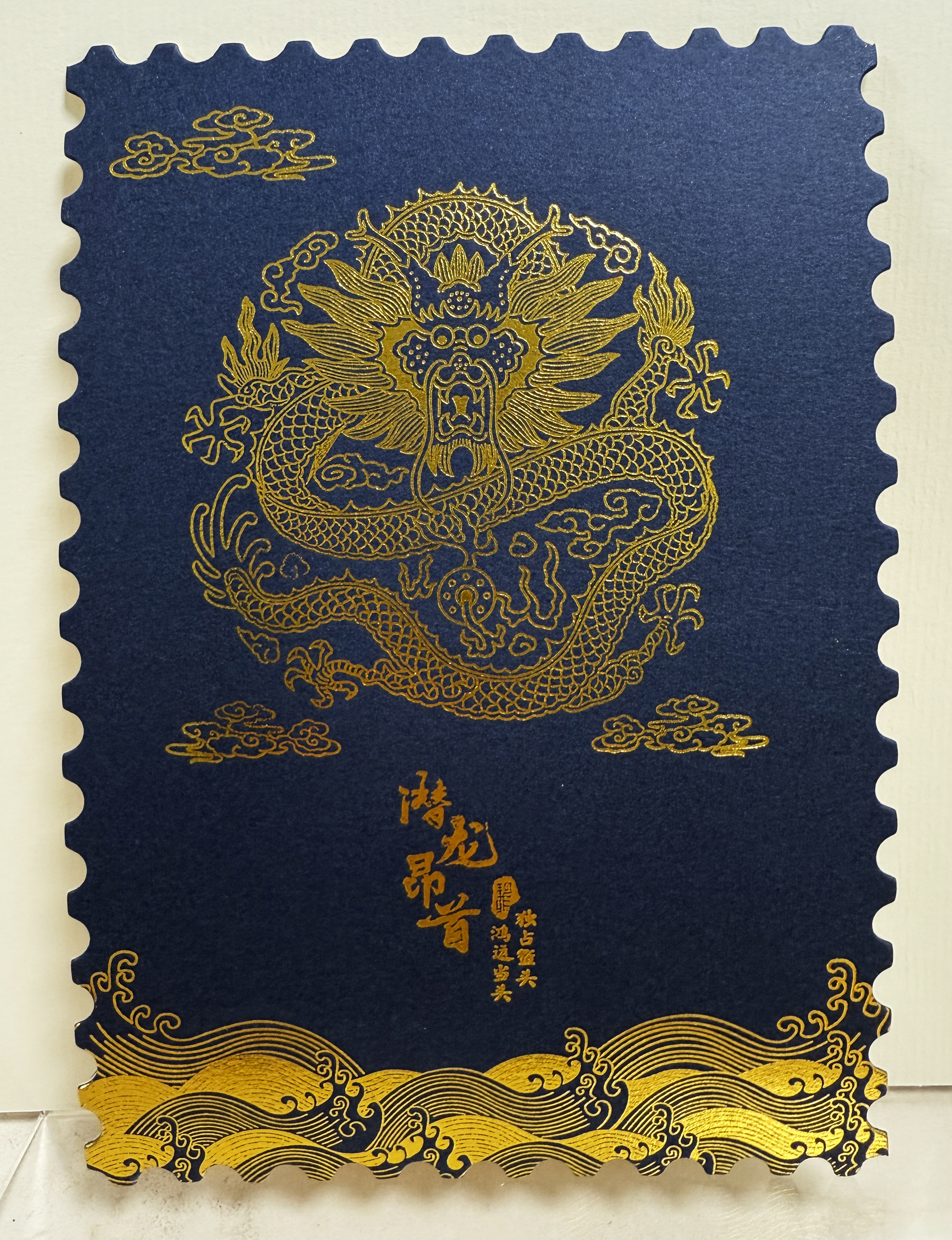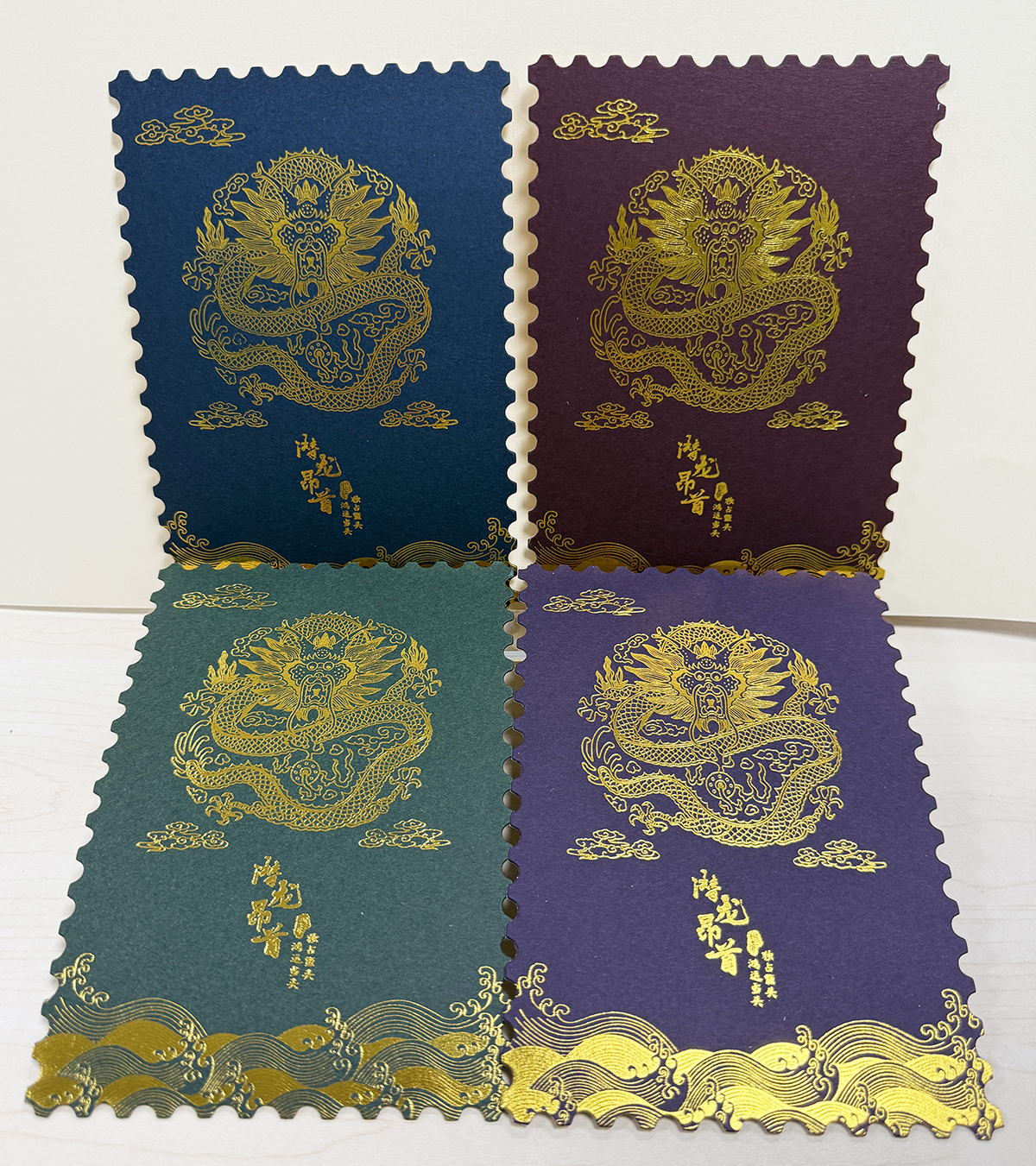 《潜龙昂首》烫金明信片(红、紫、绿、蓝四色)一套4枚