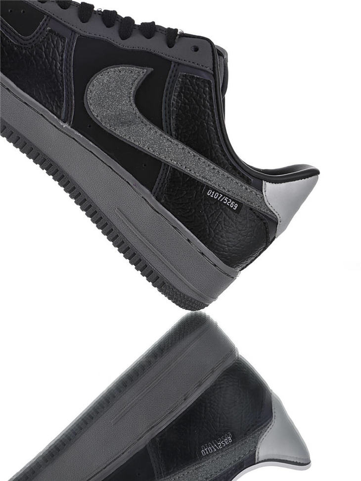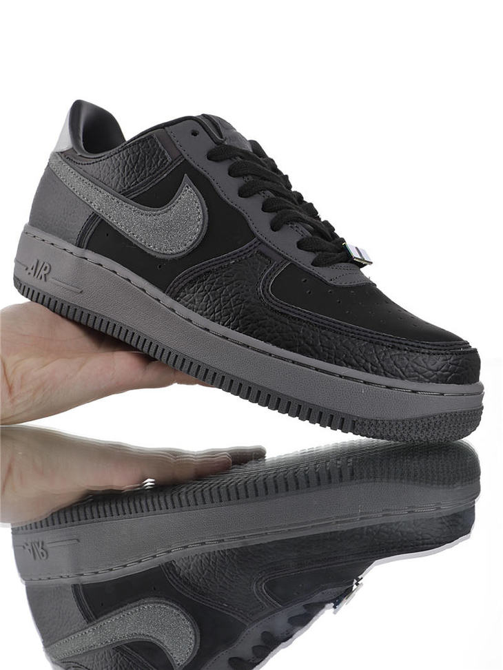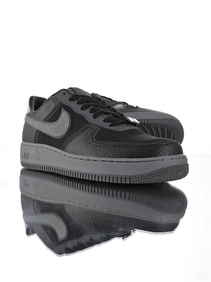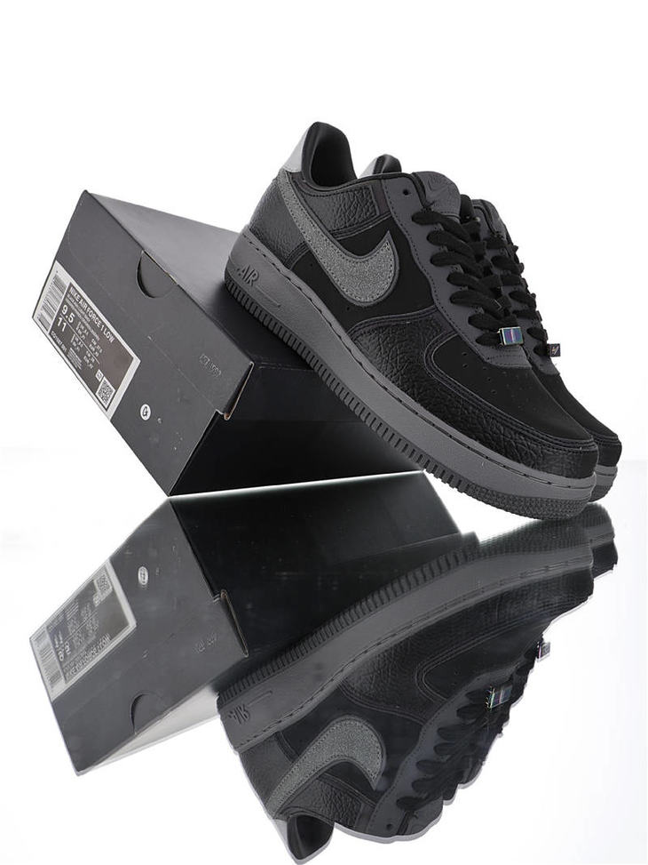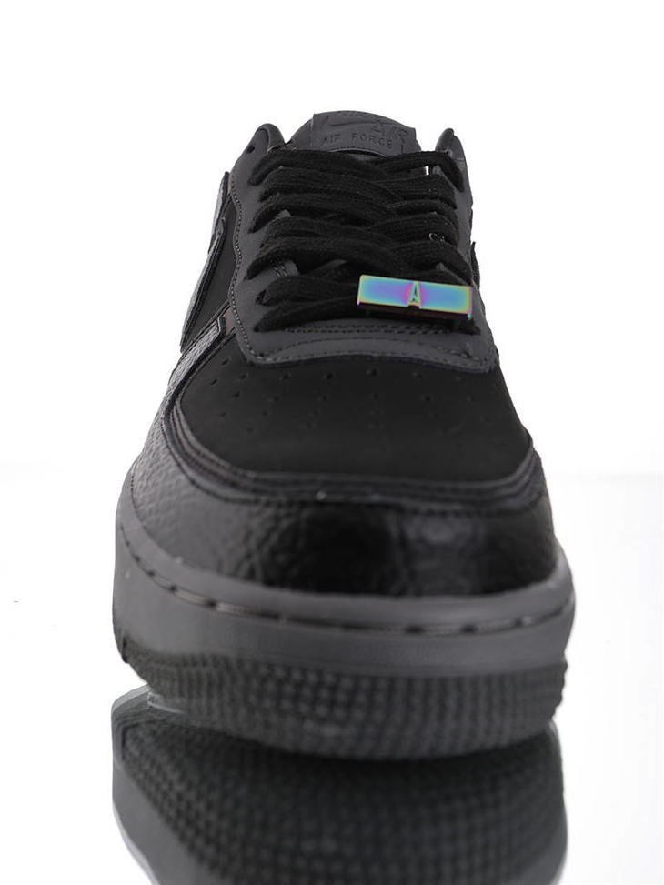 耐克A Ma Maniére x Nike Air Force 1 亚特兰大知名店铺 采用荔枝纹牛培革 牛巴磨砂皮材质鞋面 幻彩全息炫酷反光 空军一号运动板鞋 炭黑镭射反光
