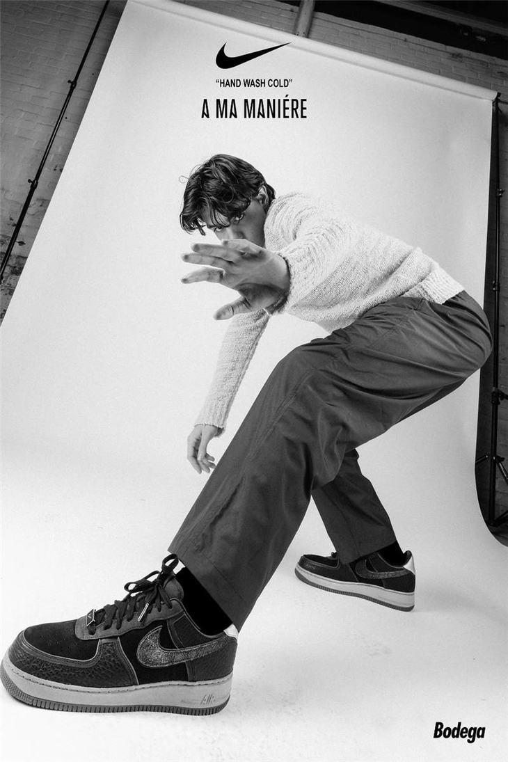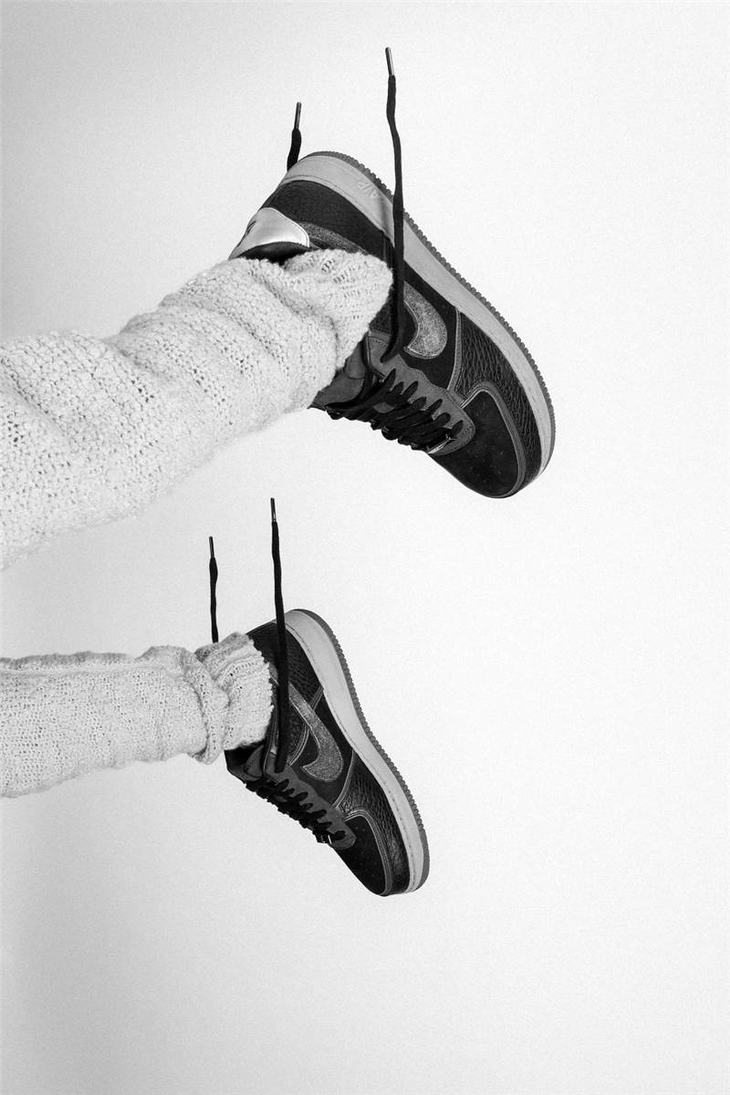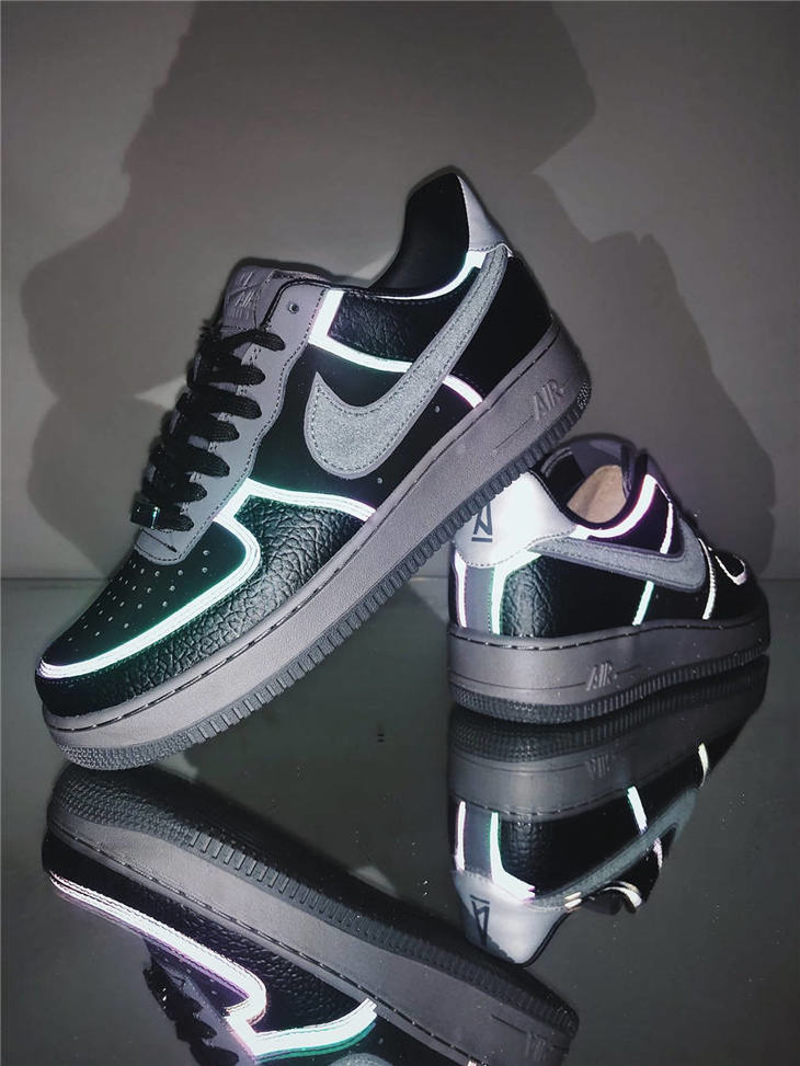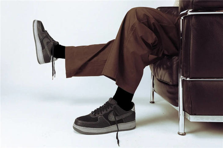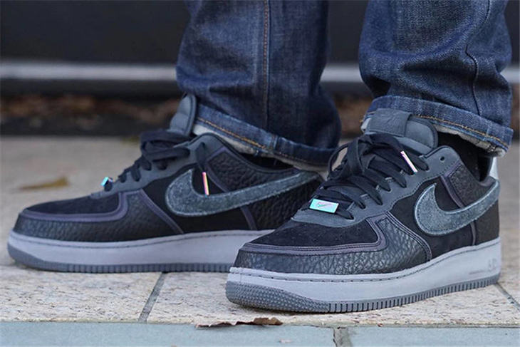 耐克A Ma Maniére x Nike Air Force 1 亚特兰大知名店铺 采用荔枝纹牛培革 牛巴磨砂皮材质鞋面 幻彩全息炫酷反光 空军一号运动板鞋 炭黑镭射反光