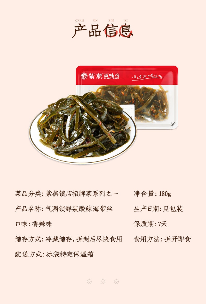 【气调锁鲜】紫燕百味鸡 酸辣海带丝 180g/盒